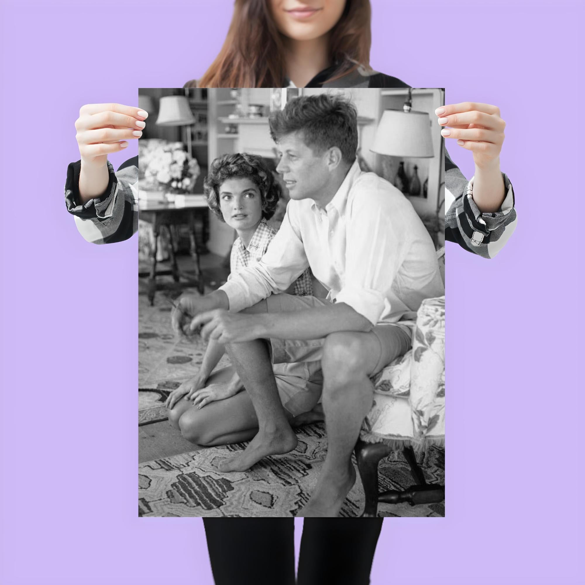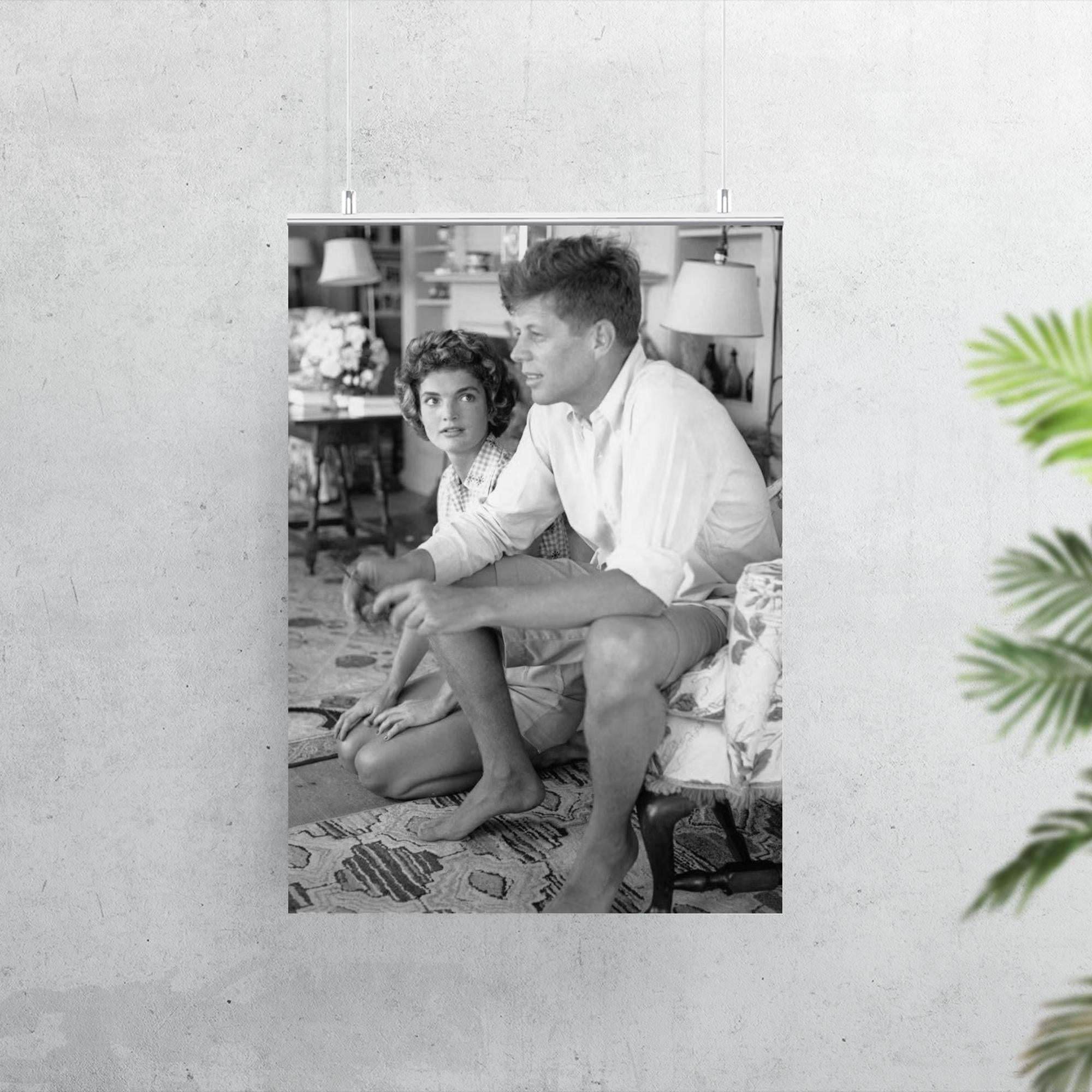 Iconic John F Kennedy & Jackie Bouvier Vintage Poster Print – Classic Historical Wall Art for Elegant Home Décor