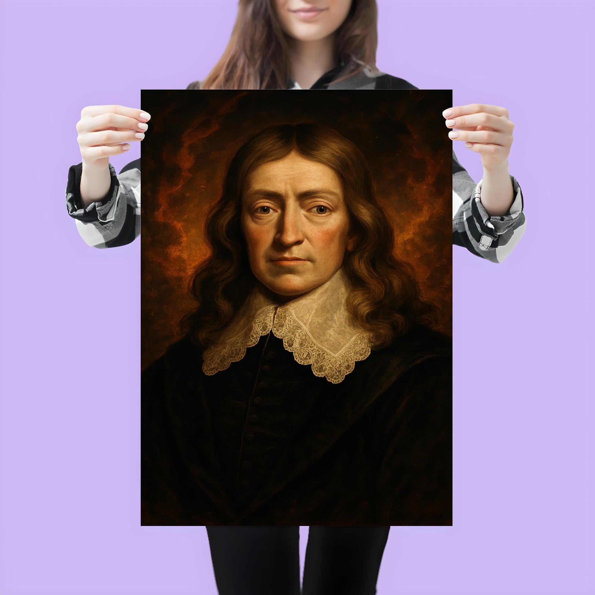 Celebrate the timeless genius of John Milton with this striking poster, perfect for inspiring literary minds and lovers of classic poetry. Whether displayed in your study, library, or living space, it pays homage to one of history’s greatest poets and thinkers. Elevate your walls with a piece that captures the spirit of intellectual passion and artistic mastery.