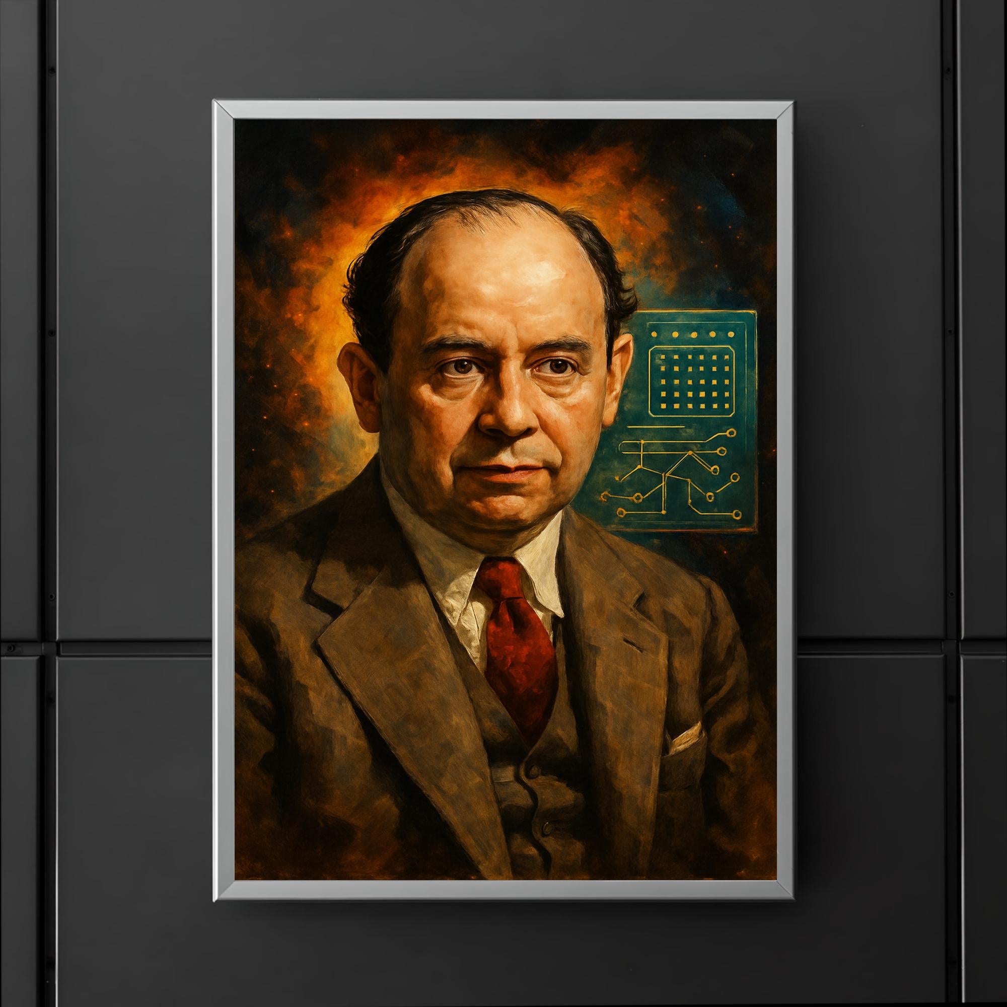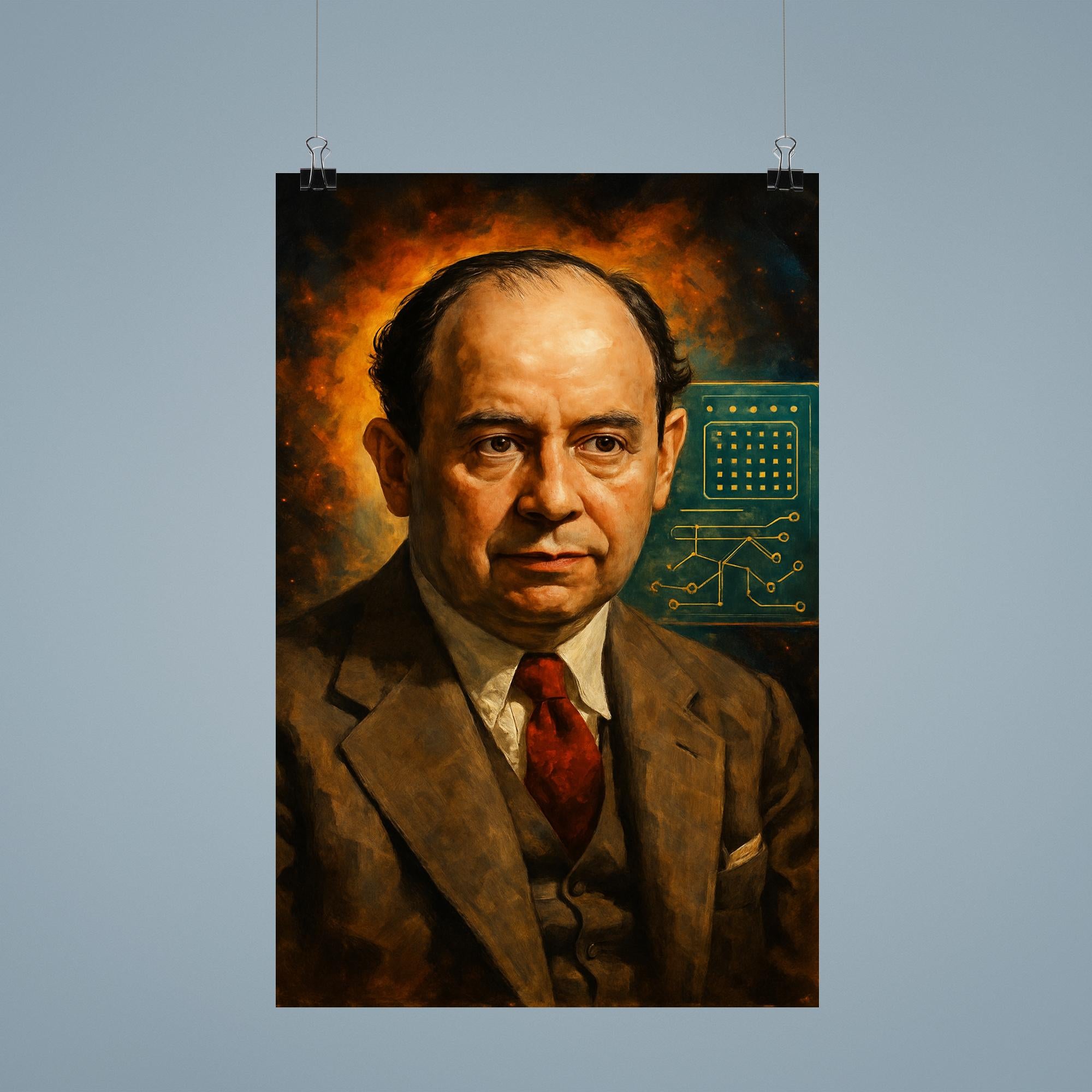 Celebrate the brilliance of John von Neumann, one of history’s greatest mathematicians and pioneers of computer science, with this stunning poster. Perfect for inspiring minds in offices, classrooms, or personal spaces, it pays tribute to the legacy of a true visionary whose ideas shaped the modern world. A must-have for enthusiasts of science, mathematics, and innovation alike.