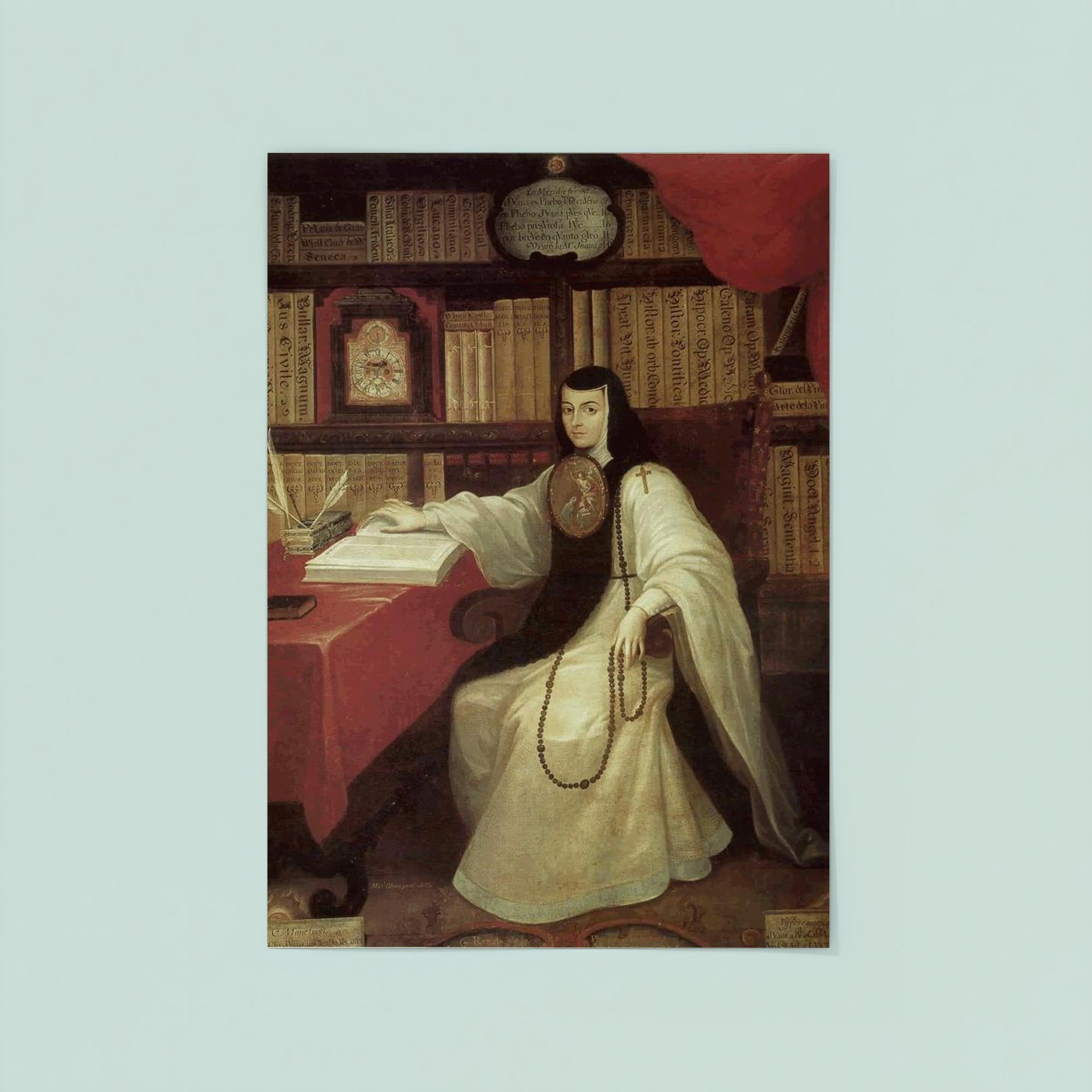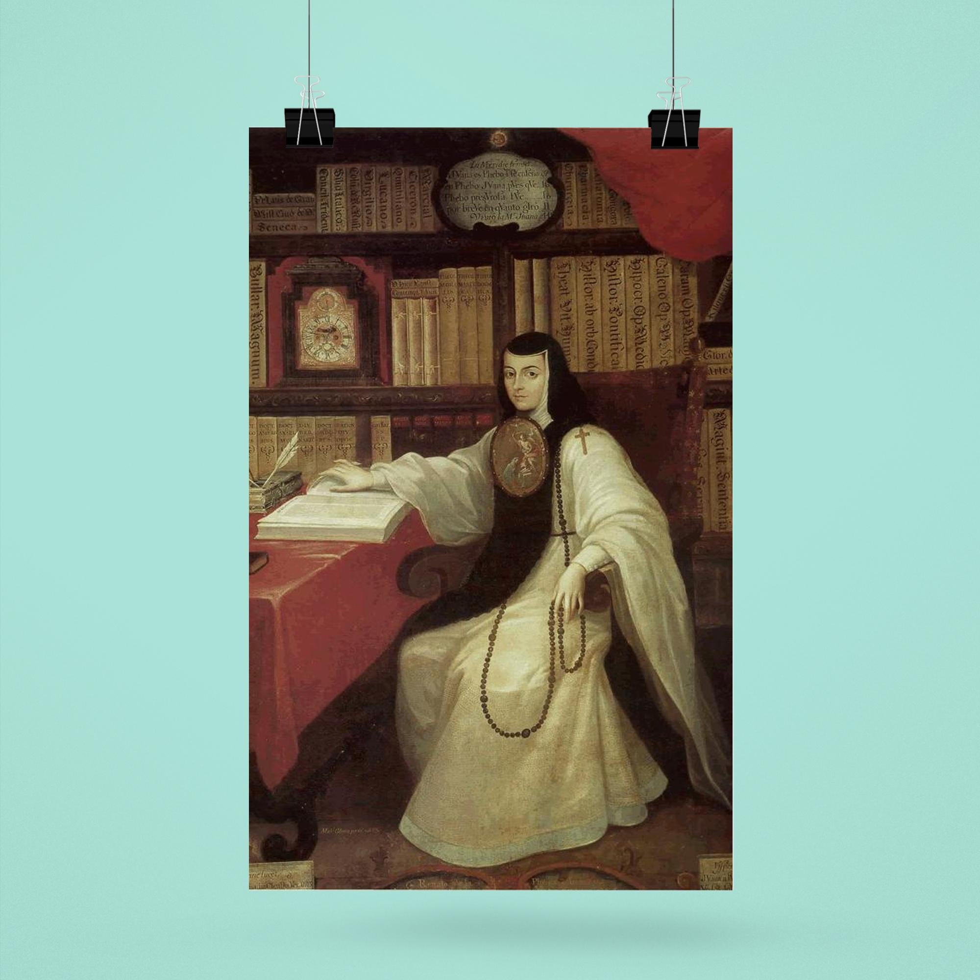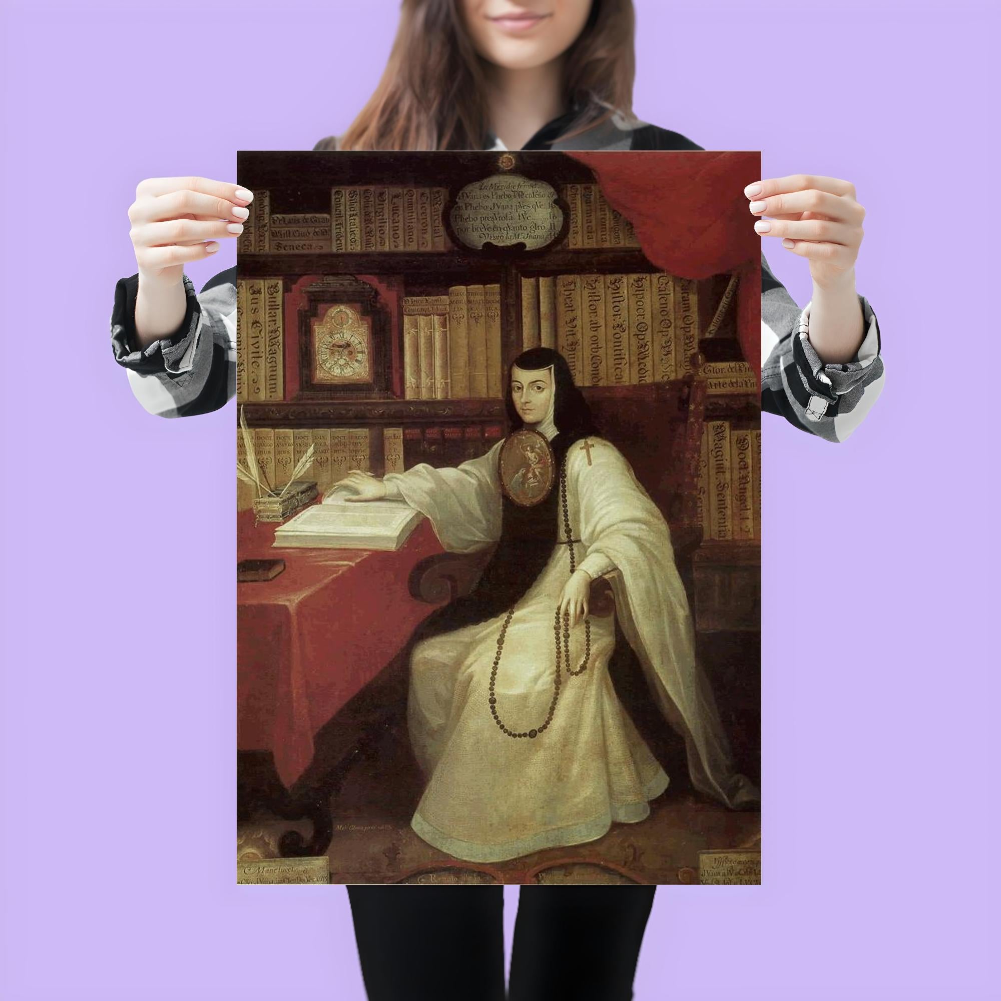 Celebrate the brilliance and spirit of Juana Inés de la Cruz with this striking poster, honoring one of history’s most remarkable intellectuals and poets. Perfect for inspiring any space, this elegant piece pays tribute to her enduring legacy as a fearless advocate for knowledge and equality. A timeless reminder of courage and wisdom, ideal for lovers of literature and history alike.