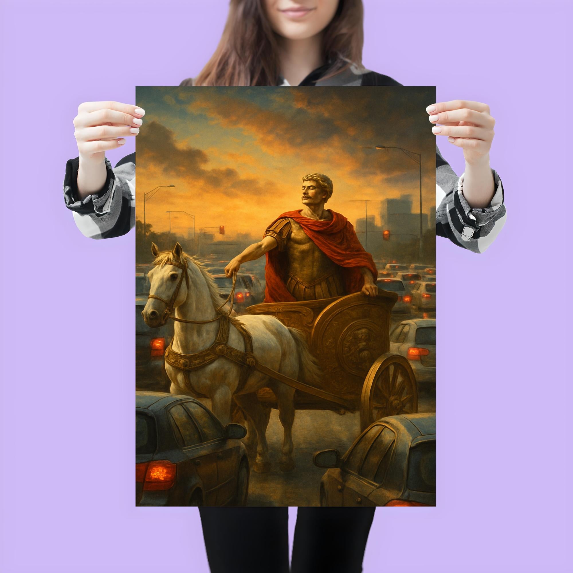 Julius Caesar in Chariot Traffic Jam Poster Print – Unique Modern History Wall Art for Home & Office Decor