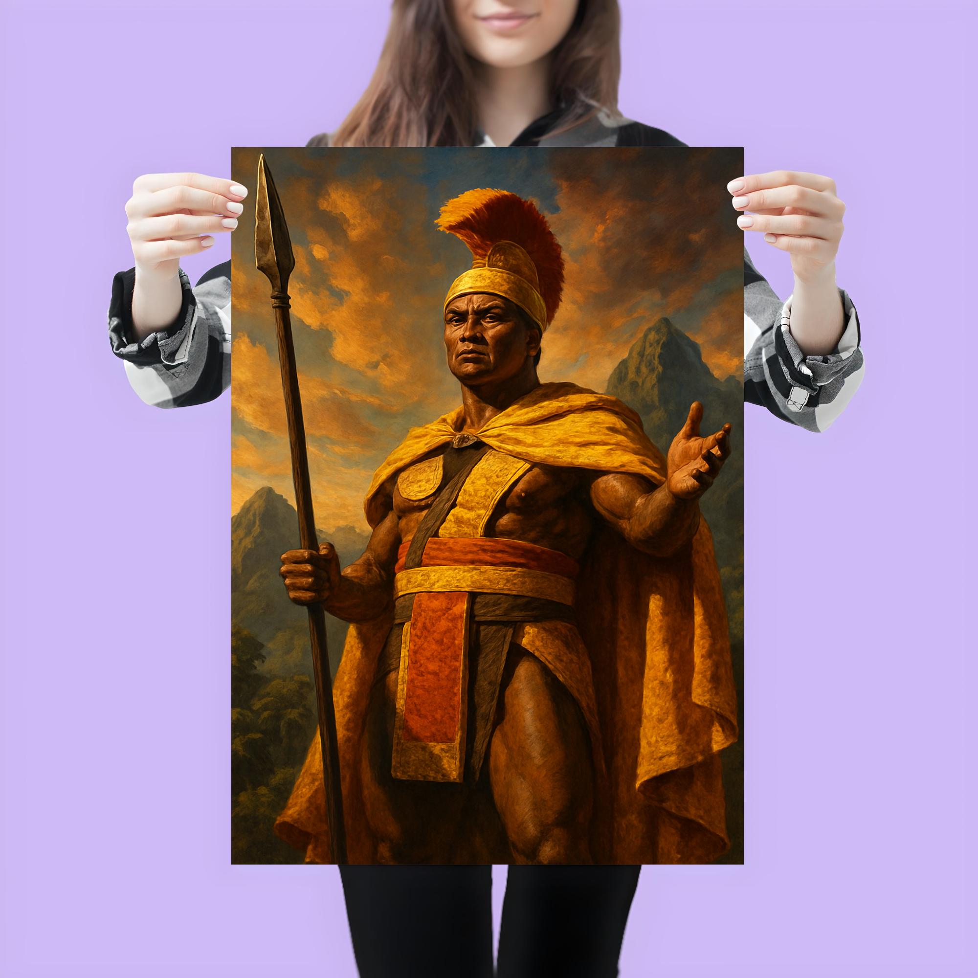 Kamehameha I Hawaiian Warrior Poster Print – Vibrant Historic Wall Art for Home & Office Décor, Authentic Polynesian Legend Illustration