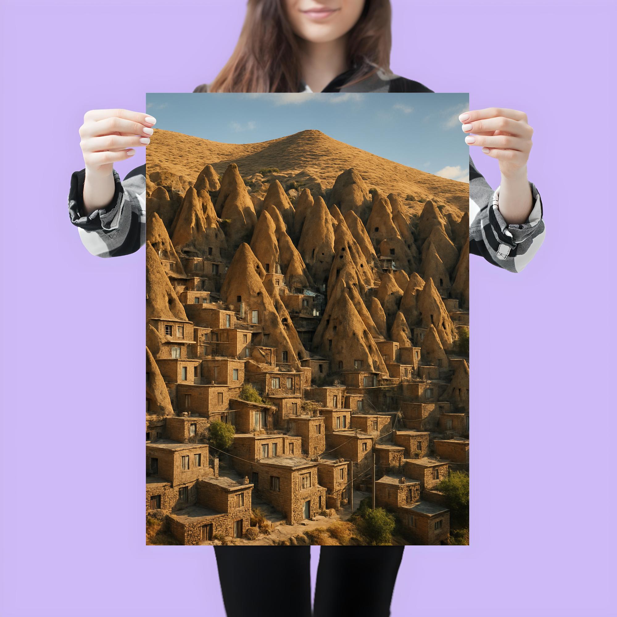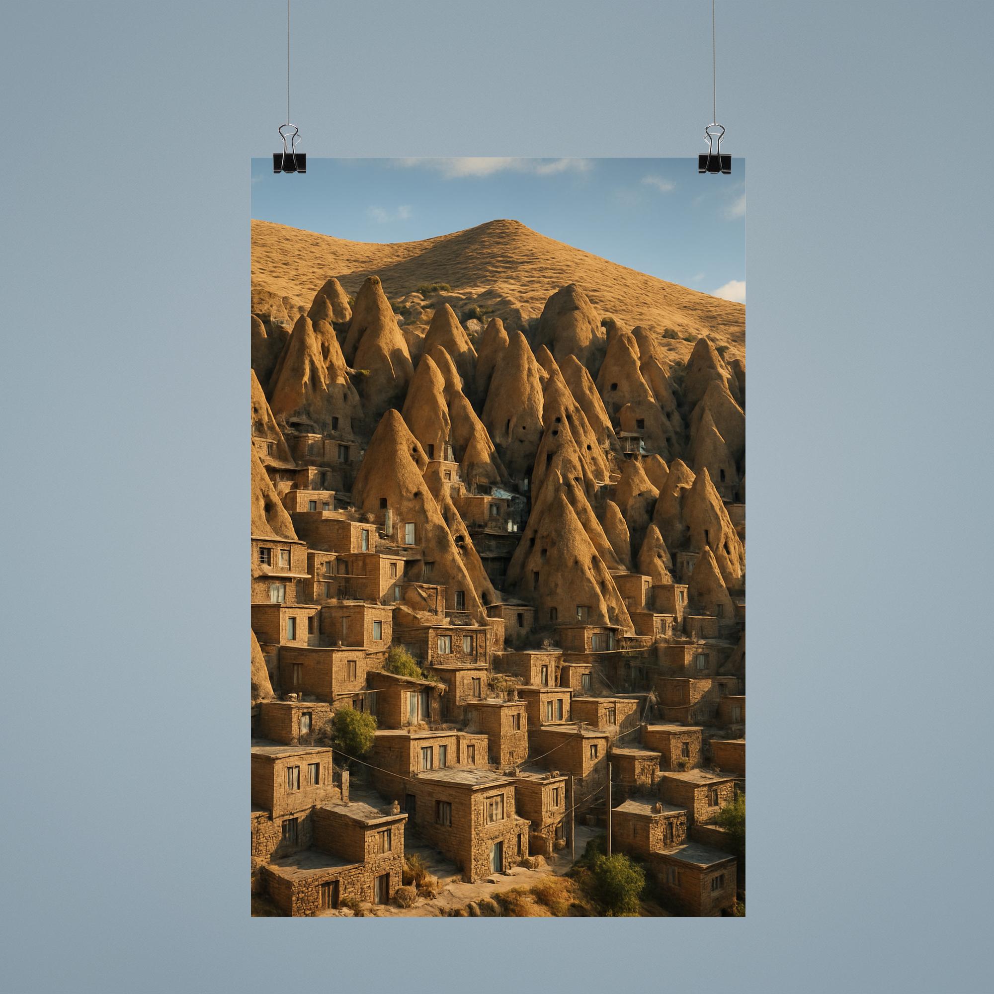 Transform your space with this stunning poster of Kandovan Rock Village, Iran—a remarkable testament to human ingenuity nestled in nature’s embrace. Celebrating the village’s iconic cave dwellings carved into volcanic rock, this artwork brings a unique blend of history and rugged beauty to your walls. Perfect for travelers and culture enthusiasts alike, it invites you to explore a timeless world where tradition meets the extraordinary.