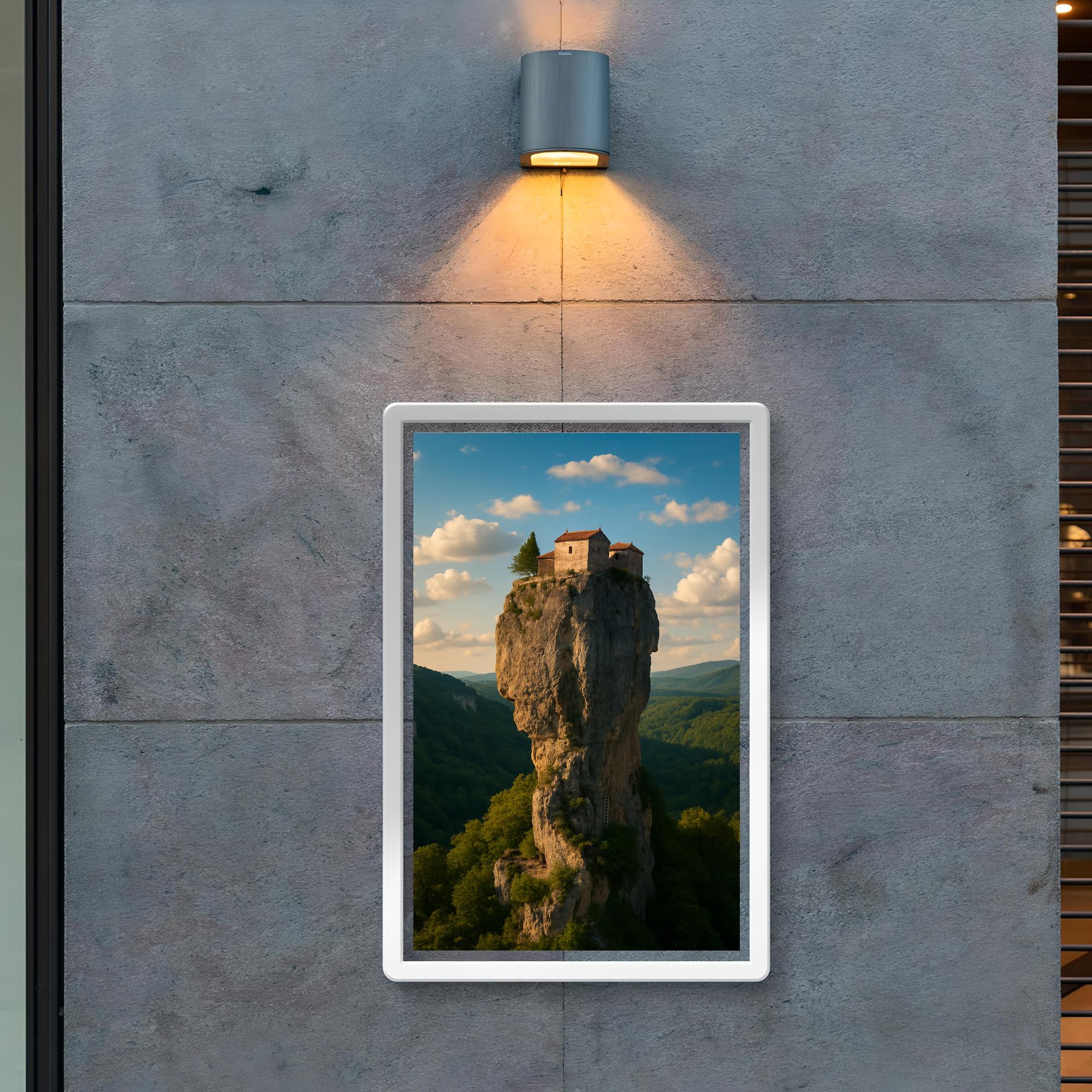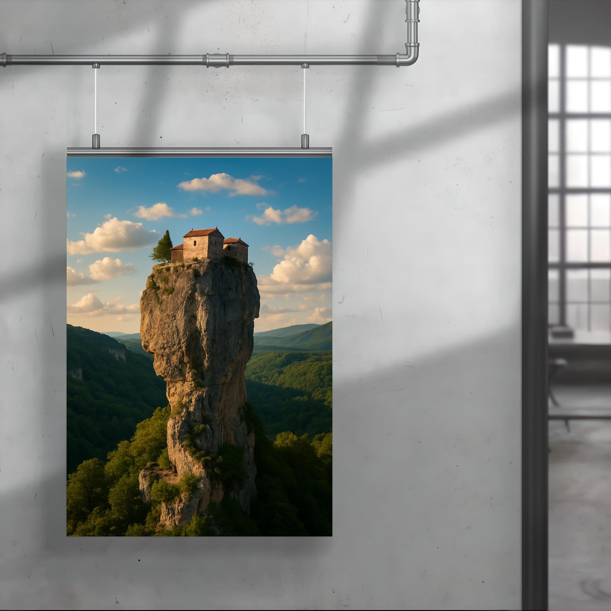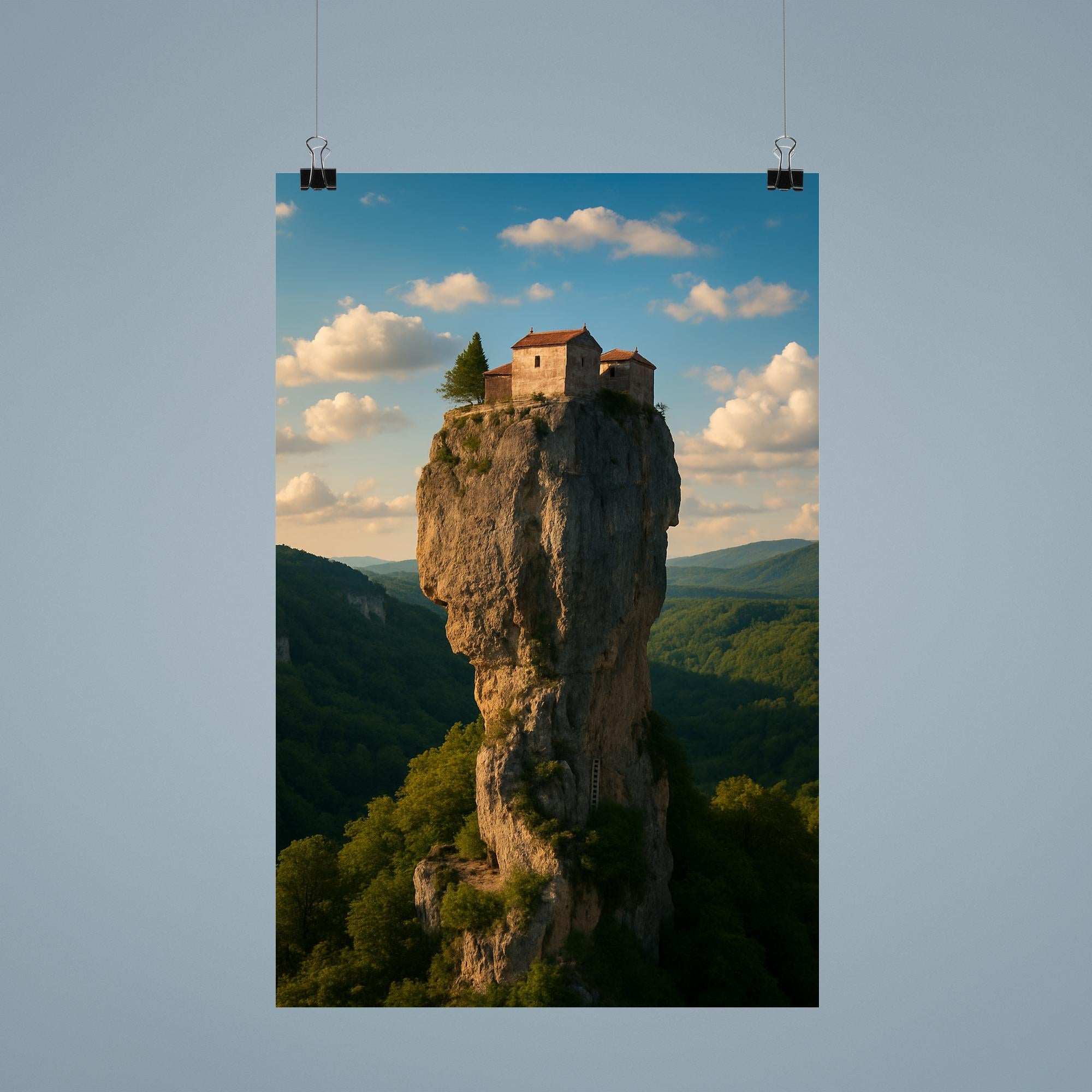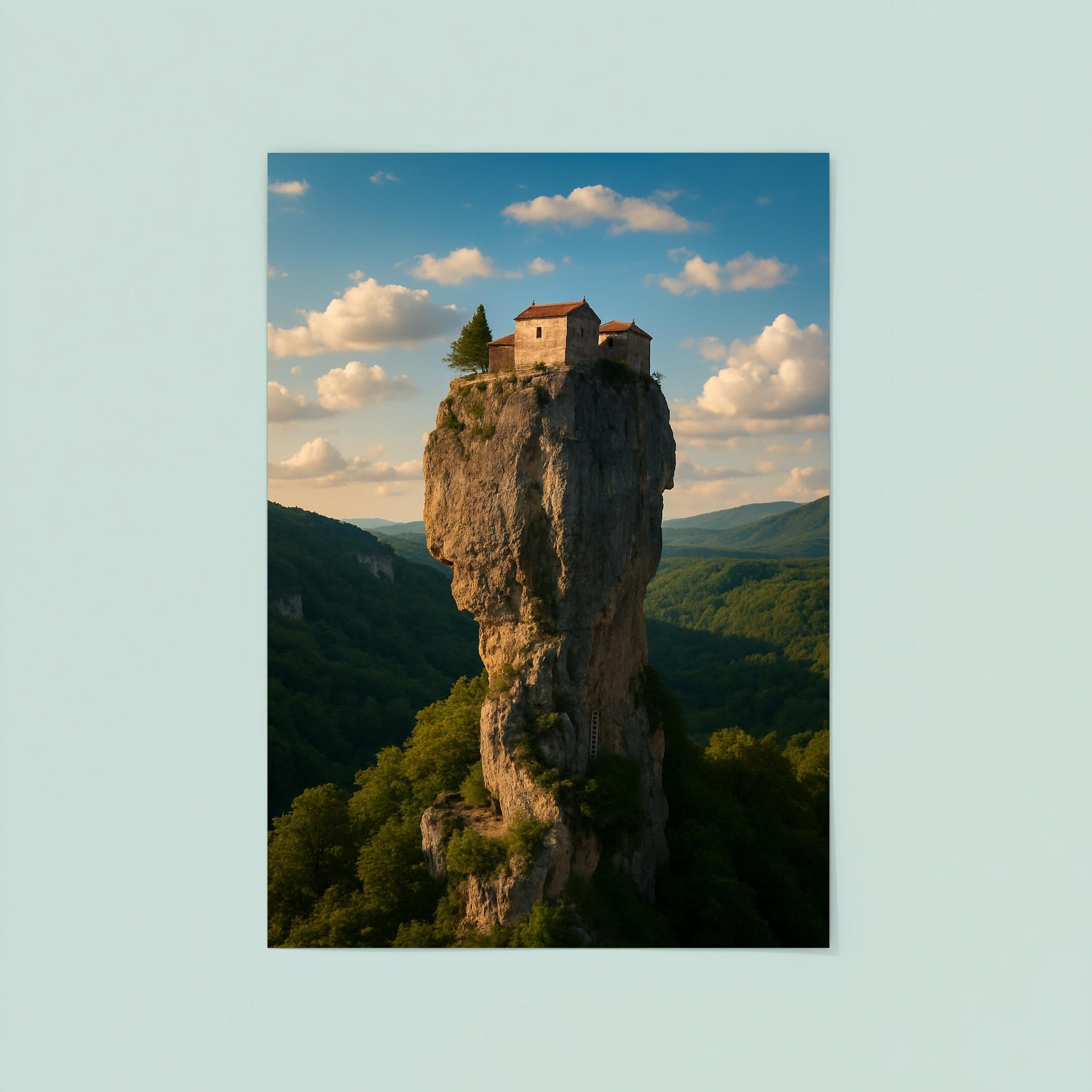 Elevate your space with the striking image of Katskhi Pillar Monolith in Georgia—a natural marvel that defies gravity and time. This poster captures the awe-inspiring isolation and timeless serenity of the towering limestone column, inviting you to bring a piece of the world's most extraordinary landscapes into your everyday surroundings. Perfect for those who seek inspiration from nature’s boldest statements.