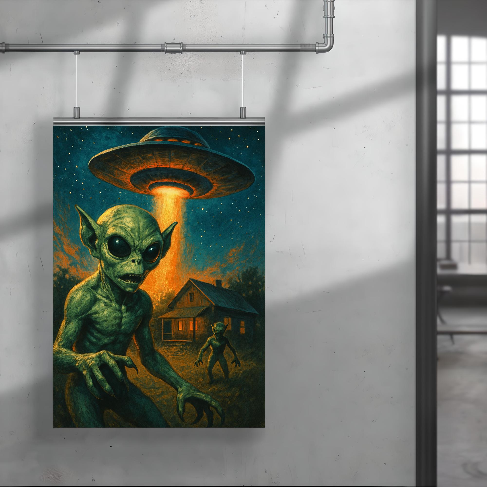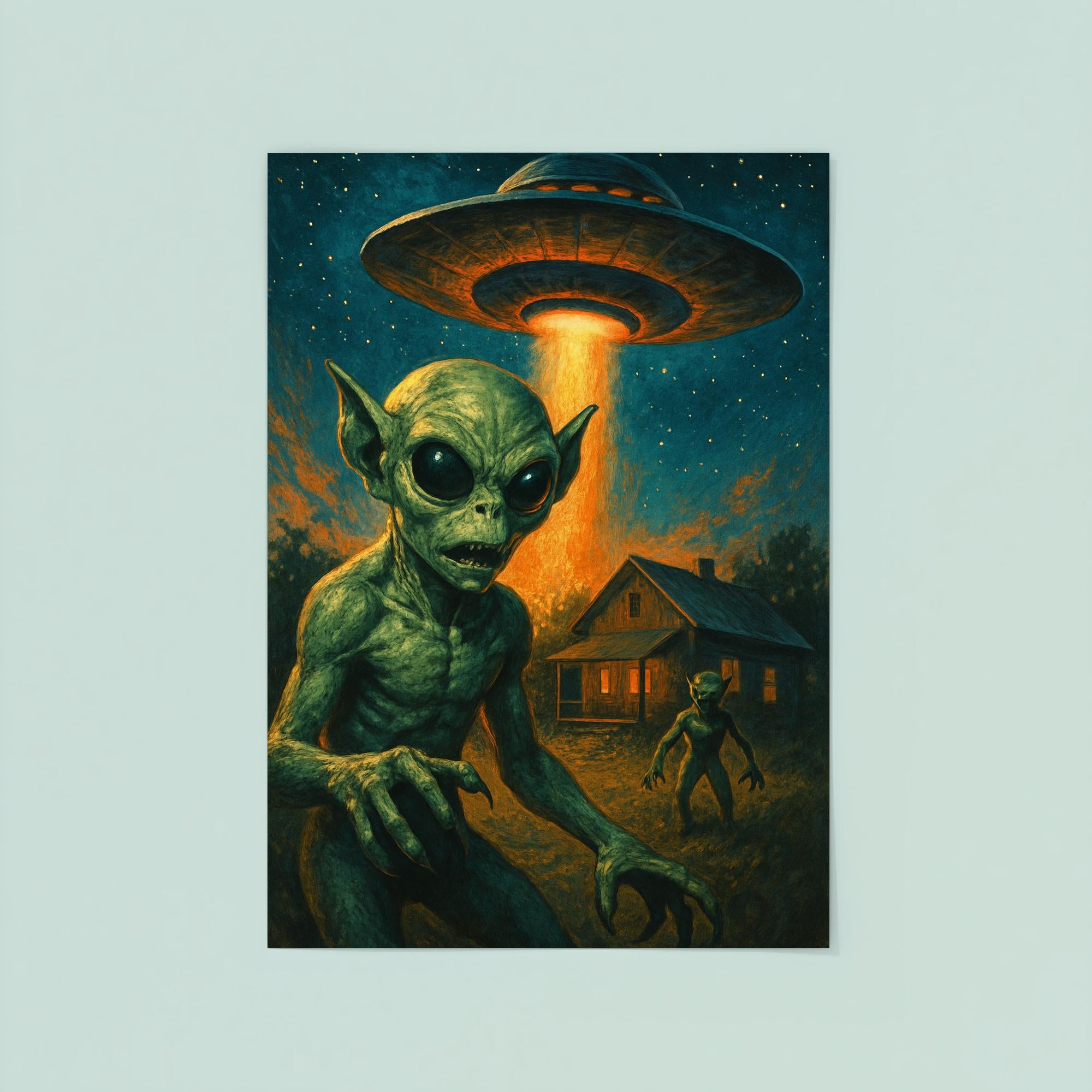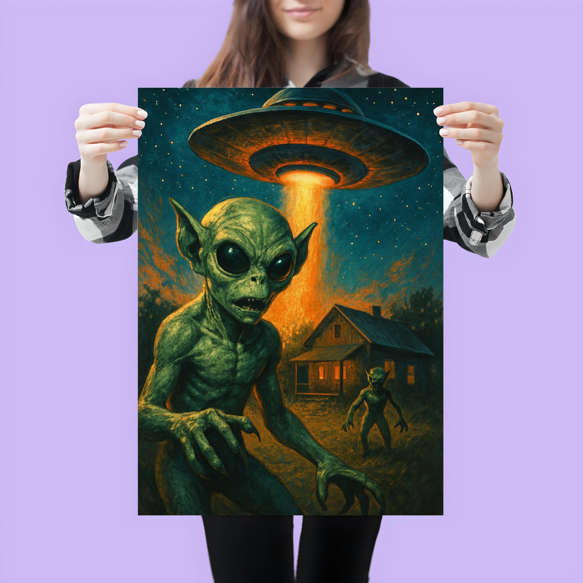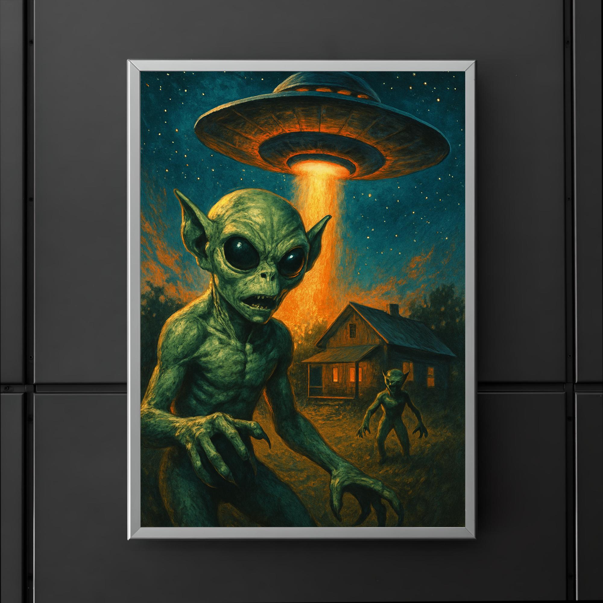 Kelly Hopkinsville Goblins Kentucky Poster Print – Vintage UFO Wall Art, Cryptid Alien Sci-Fi Decor for Paranormal Enthusiasts