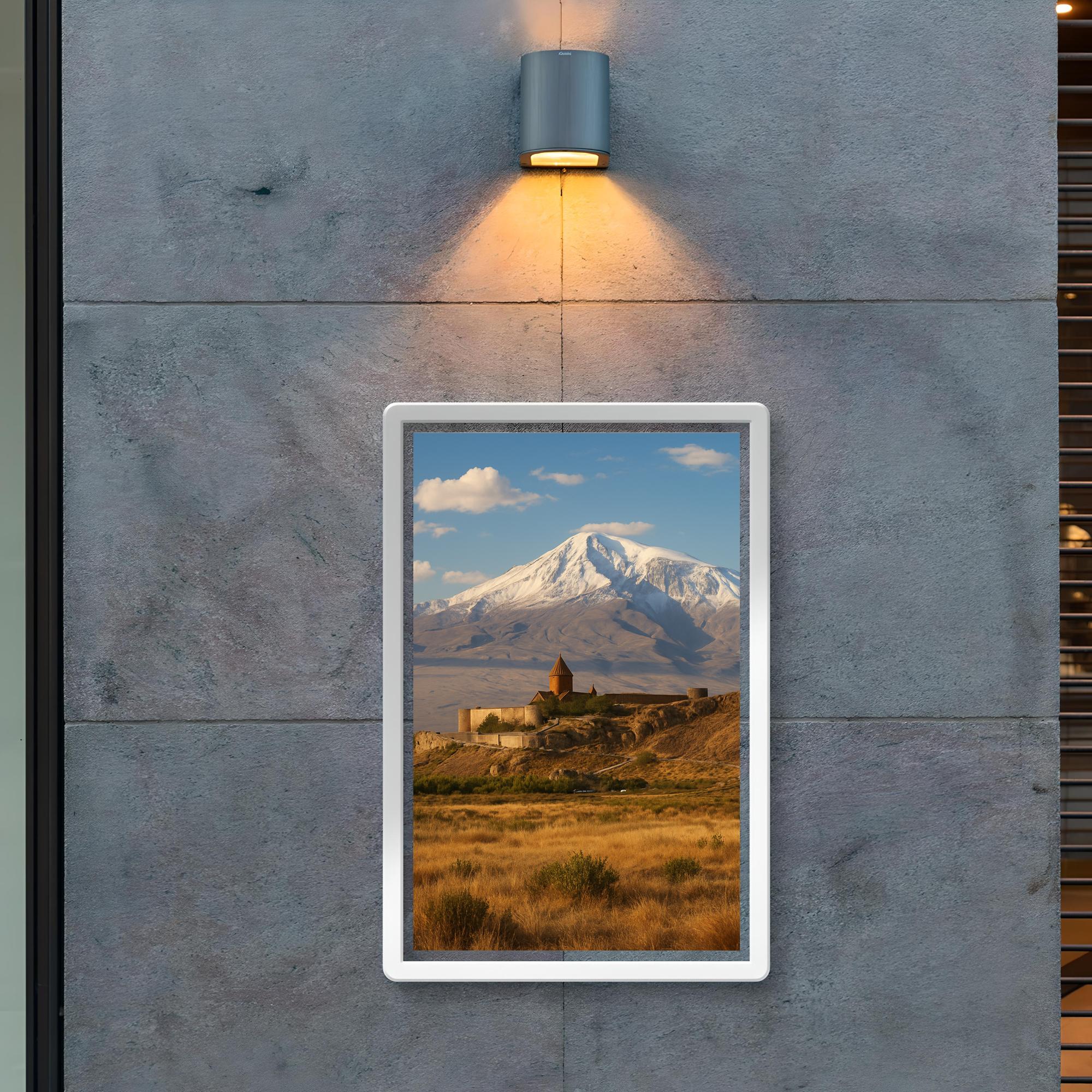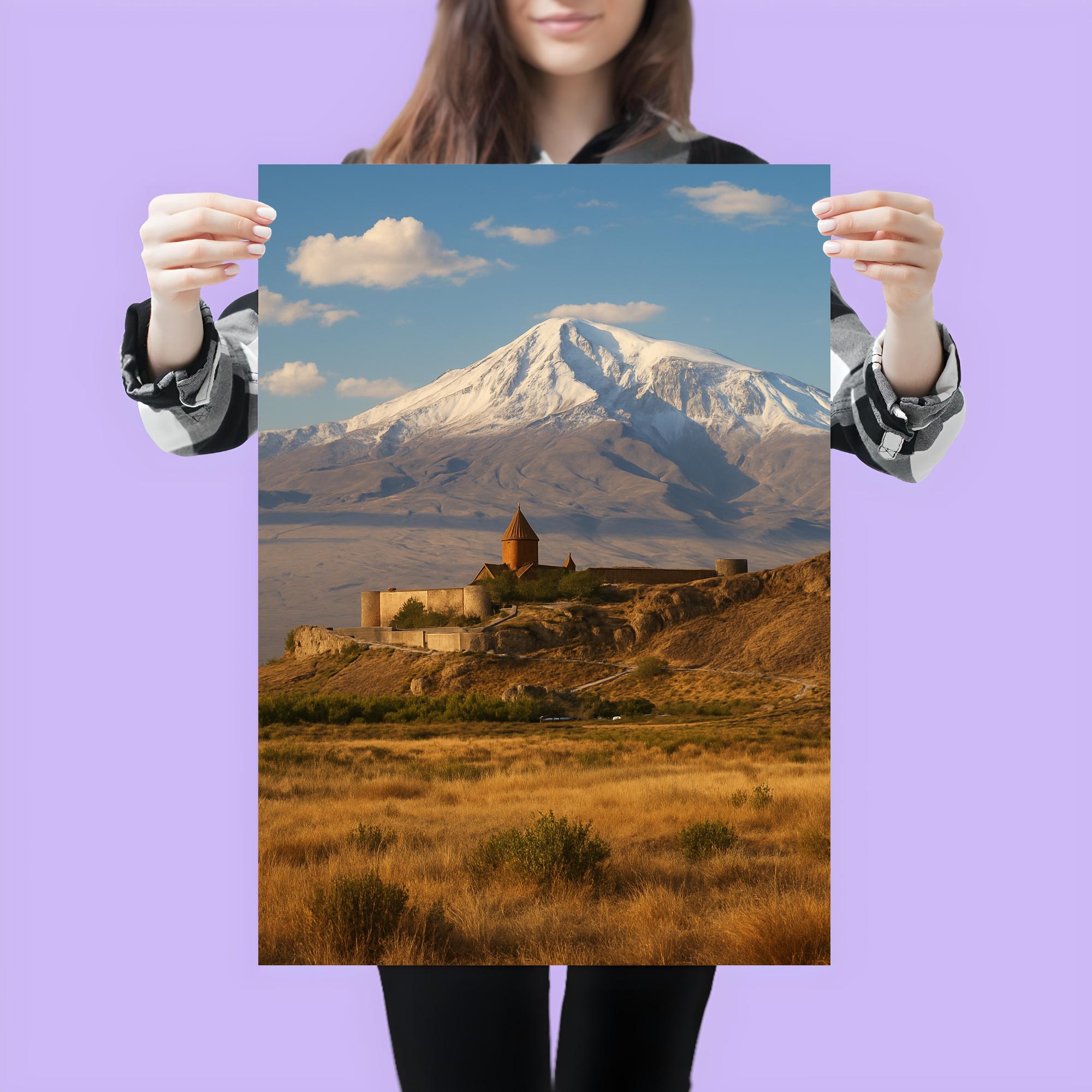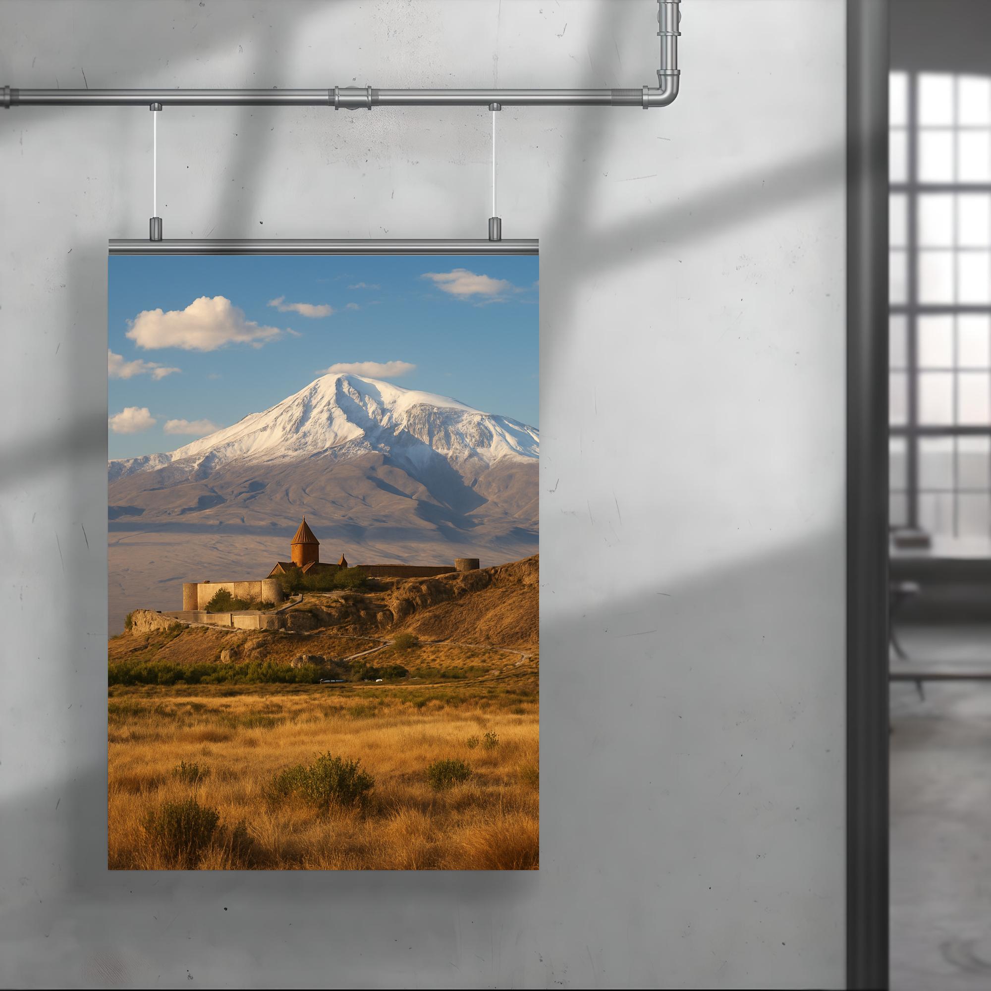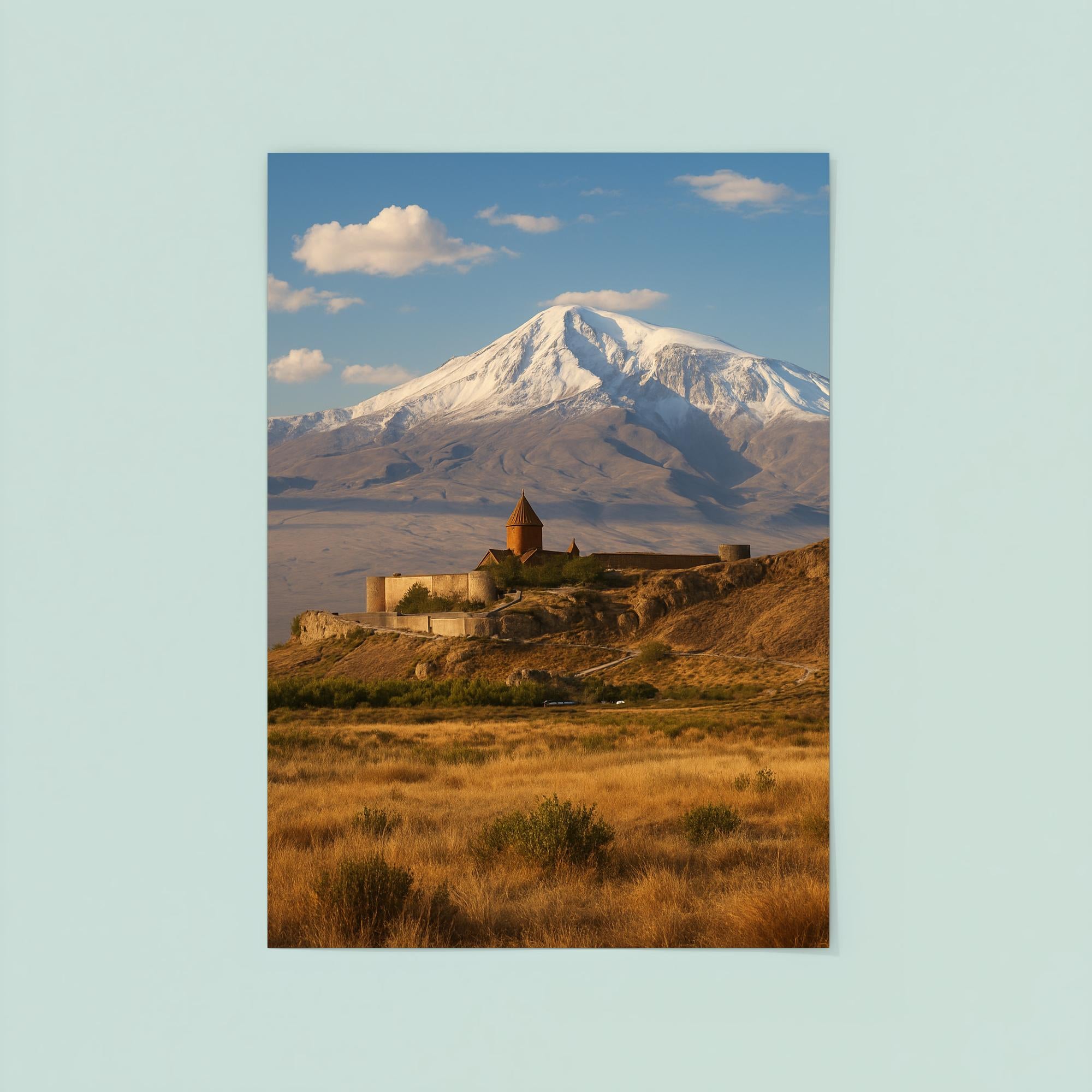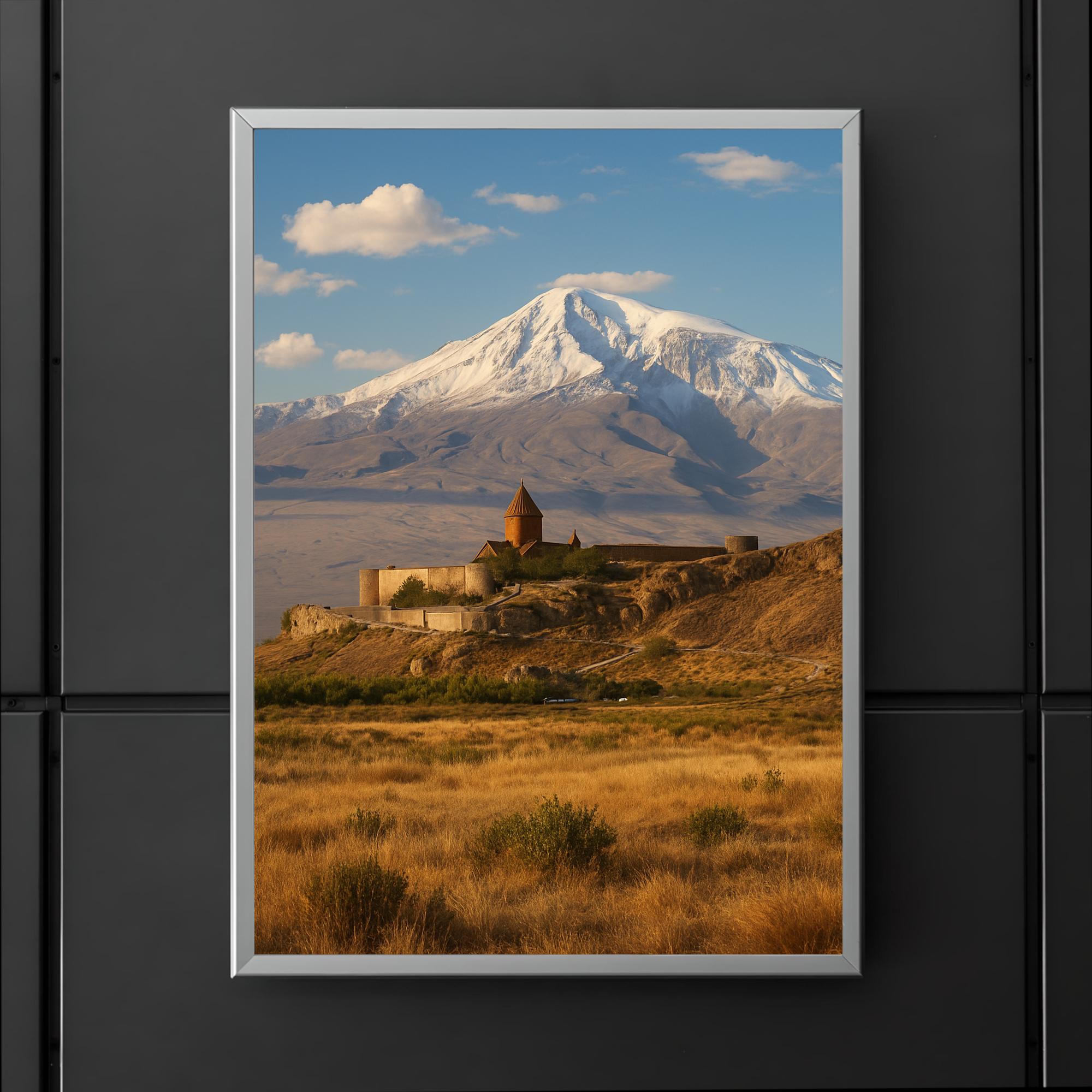 Capture the timeless beauty of Armenia with this stunning poster showcasing the iconic Khor Virap Monastery framed by the majestic Mount Ararat. Perfect for adding a touch of history and awe-inspiring natural grandeur to any space, this piece invites you to experience a captivating view that blends spirituality and nature in perfect harmony. Elevate your décor with a glimpse into one of Armenia’s most treasured landscapes.