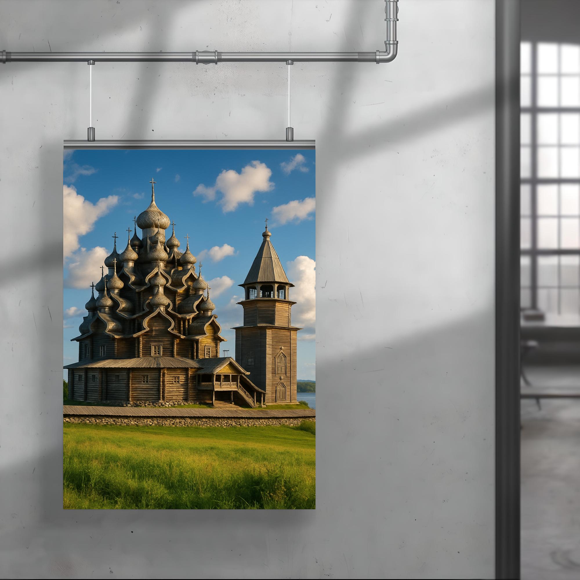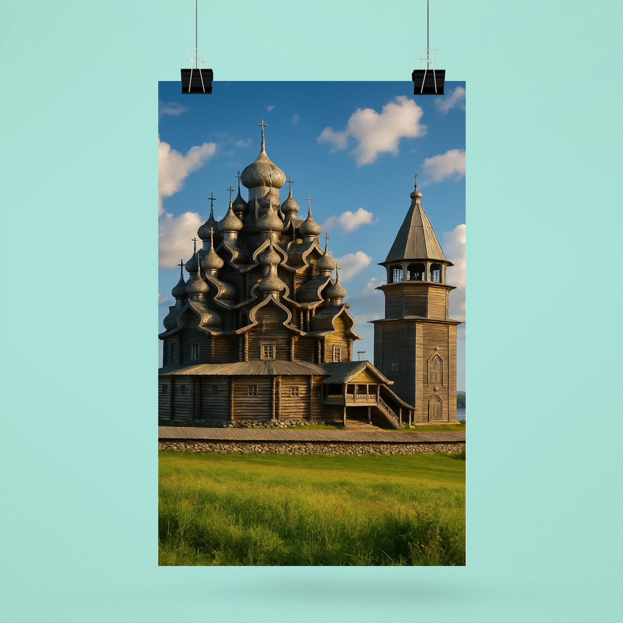 Immerse yourself in the timeless beauty of Russian heritage with this stunning poster of the Kizhi Pogost Wooden Churches. Showcasing the intricate craftsmanship and serene charm of these iconic wooden structures, this artwork brings a piece of history and artistry to your space. Perfect for those who appreciate architectural wonder and cultural depth, it transforms any room into a tribute to tradition and elegance.