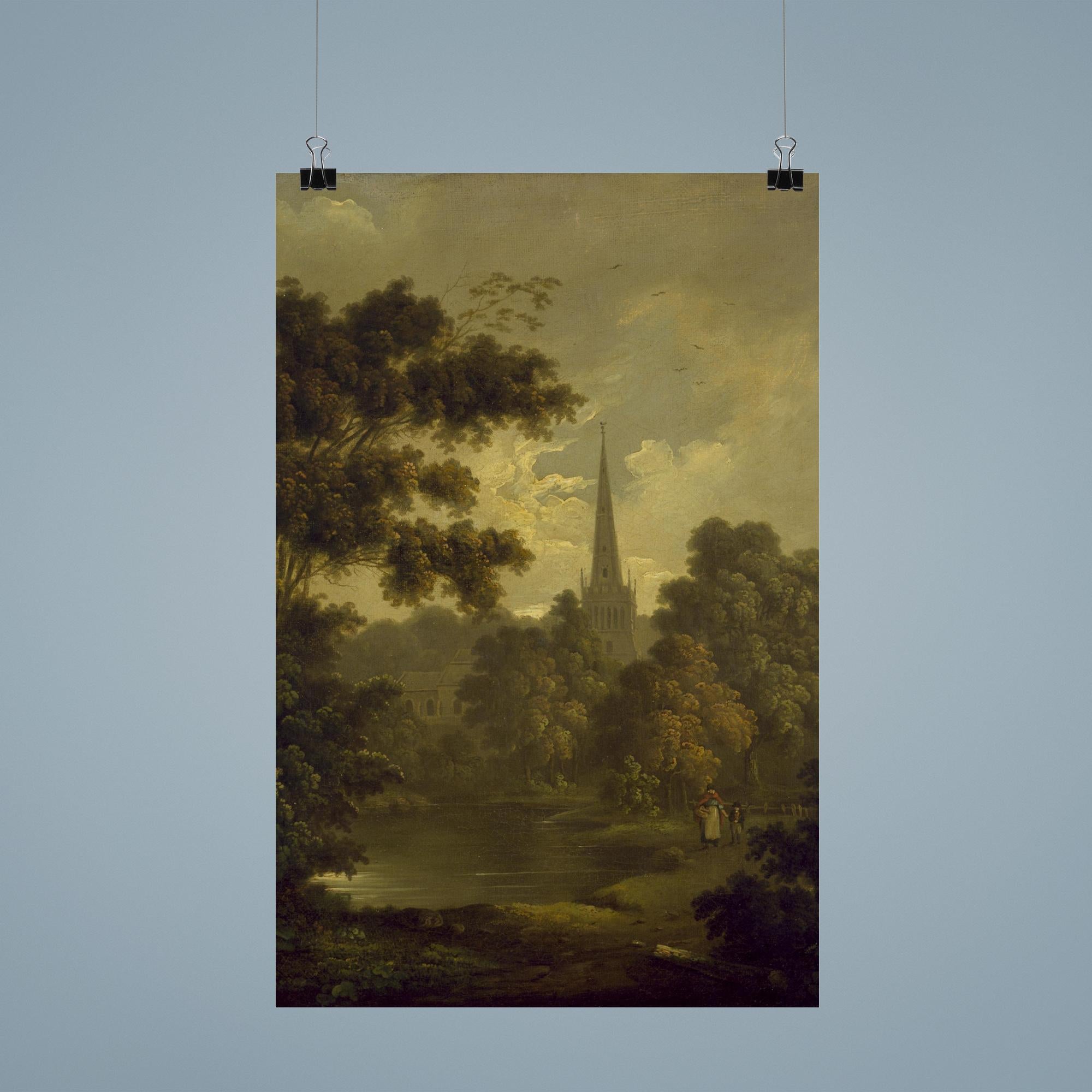 John Rathbone Landscape with Figures Poster Print – Scenic Vintage Wall Art for Home & Office Decor