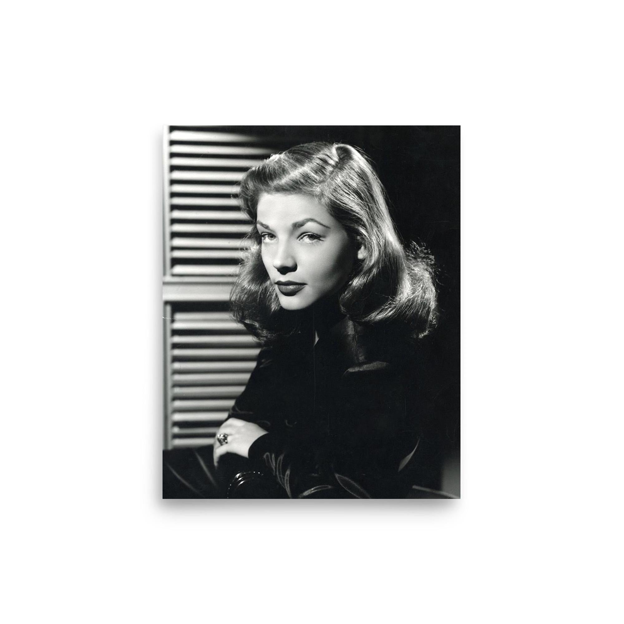 Capture the timeless allure of Hollywood's golden age with this exquisite Lauren Bacall poster. Perfect for movie enthusiasts and vintage décor admirers, it brings a touch of classic sophistication and glamour to any space, inviting an ageless elegance to your home or office.