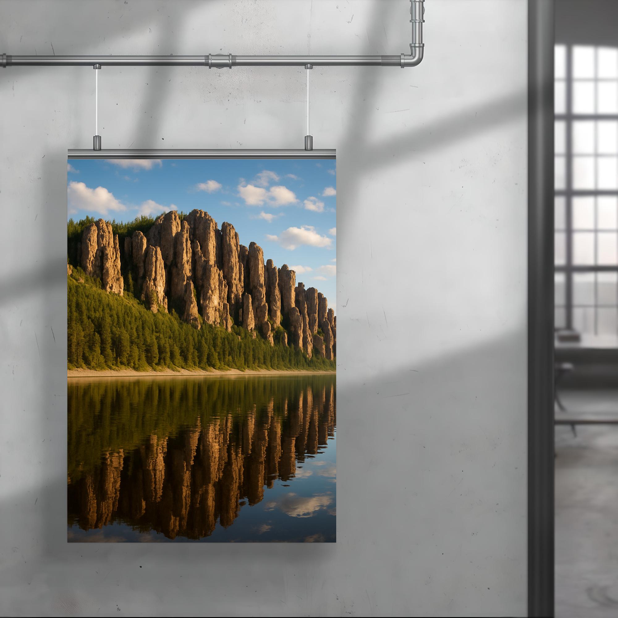 Transform your space with this stunning poster of Lena Pillars, showcasing the majestic natural rock formations of Yakutia, Russia. Perfect for adventurers and nature lovers alike, it brings a breathtaking glimpse of one of the world's most unique landscapes right into your home or office. Celebrate the raw beauty and timeless wonder of this Siberian marvel every day.