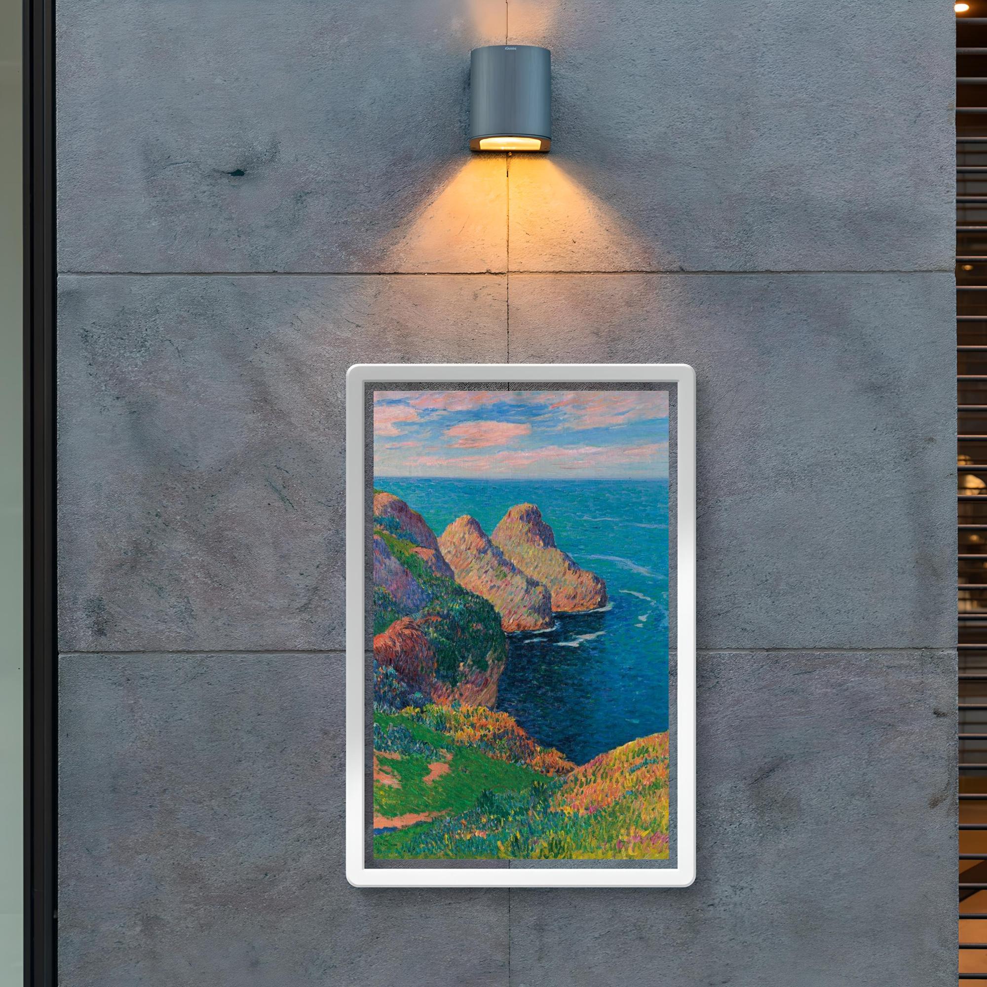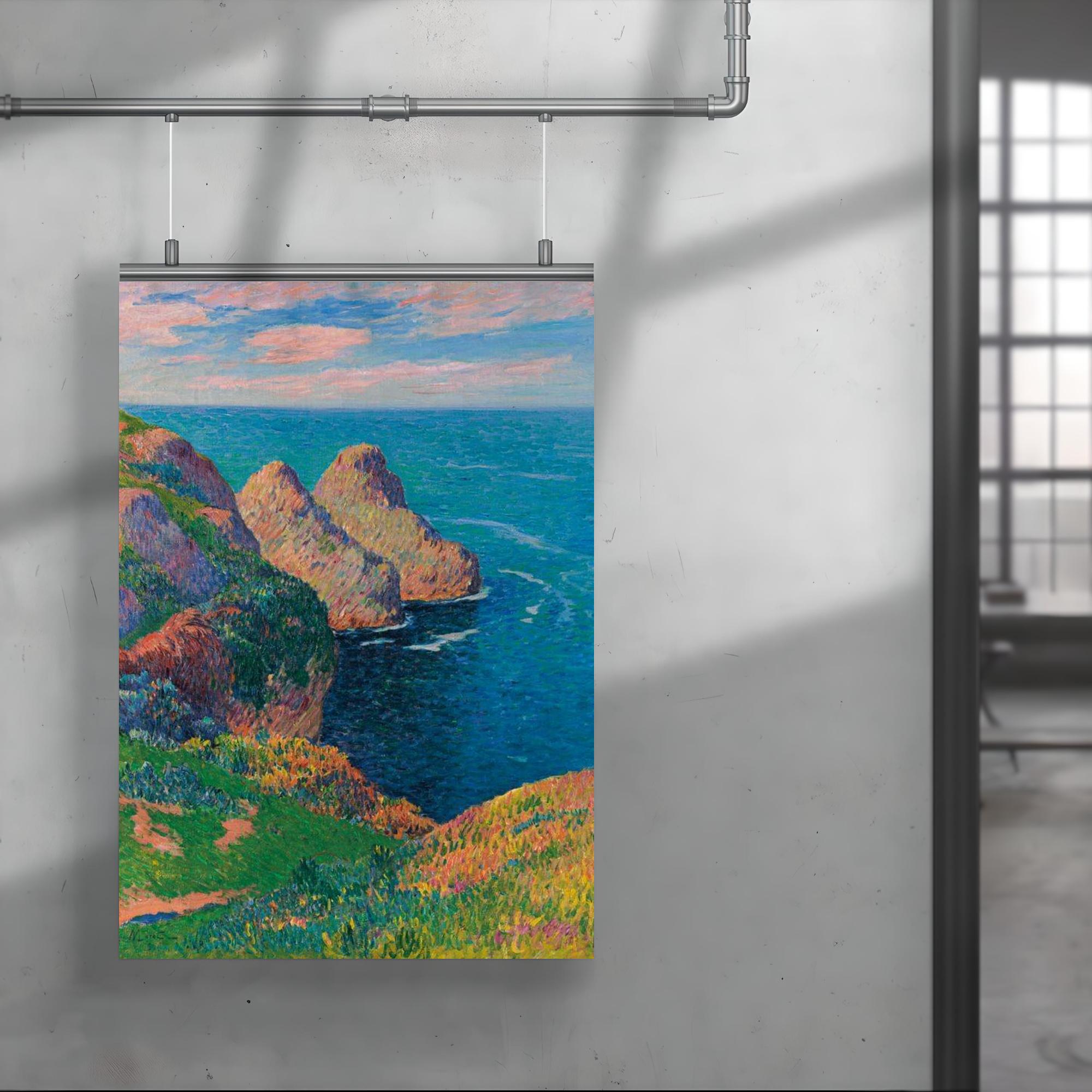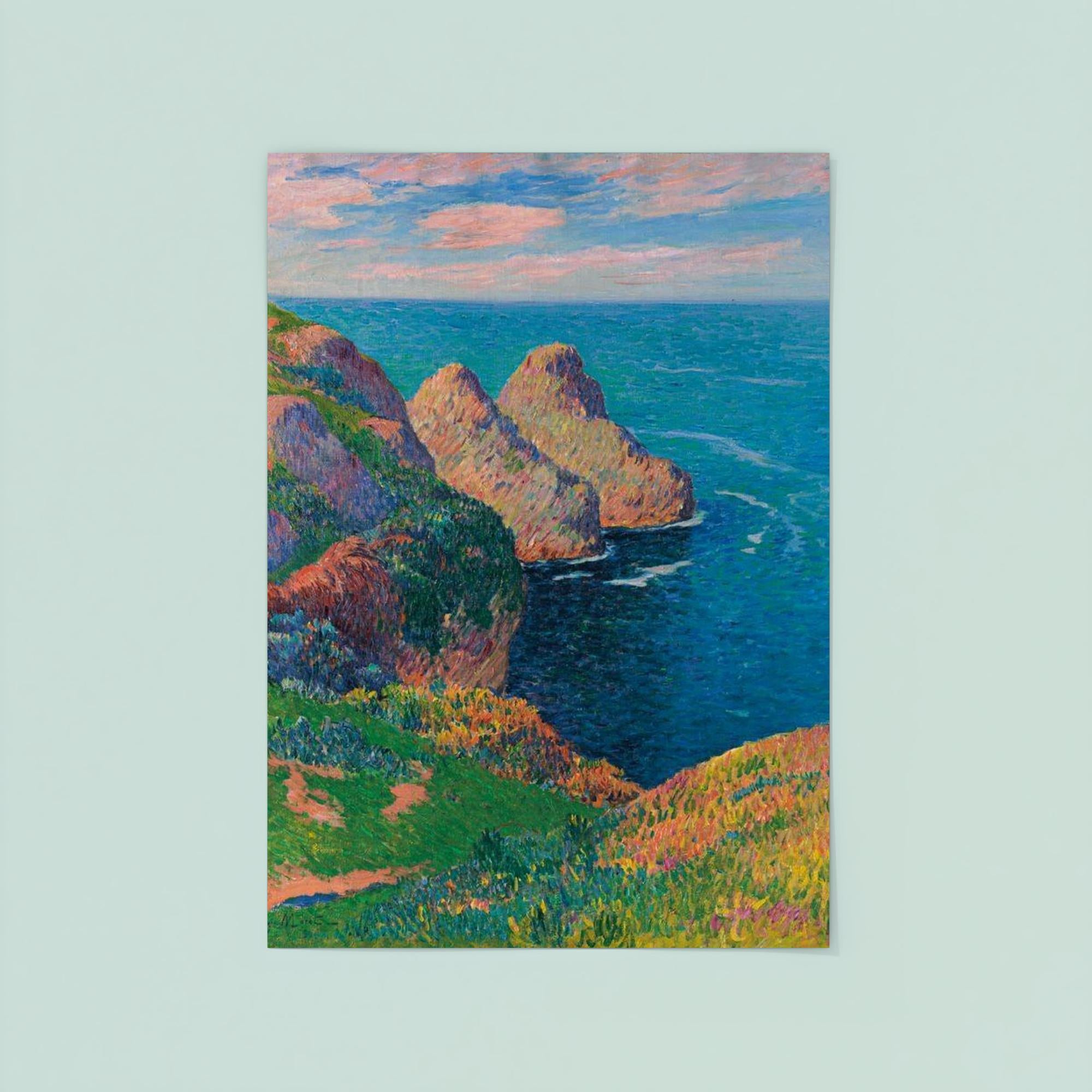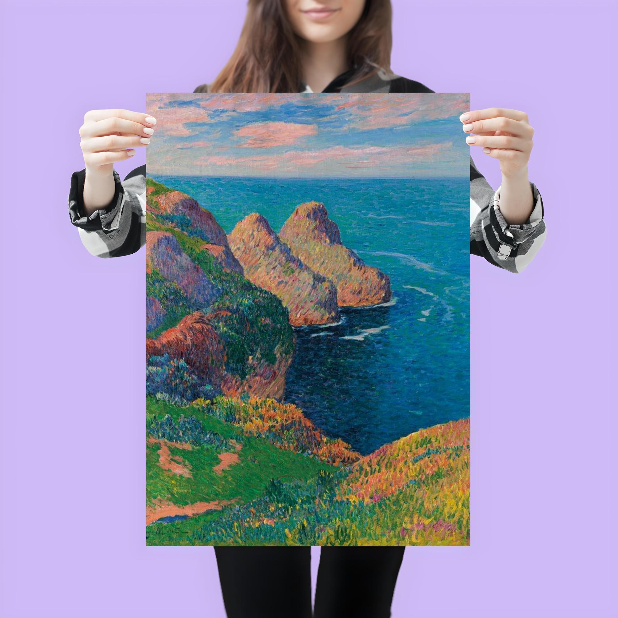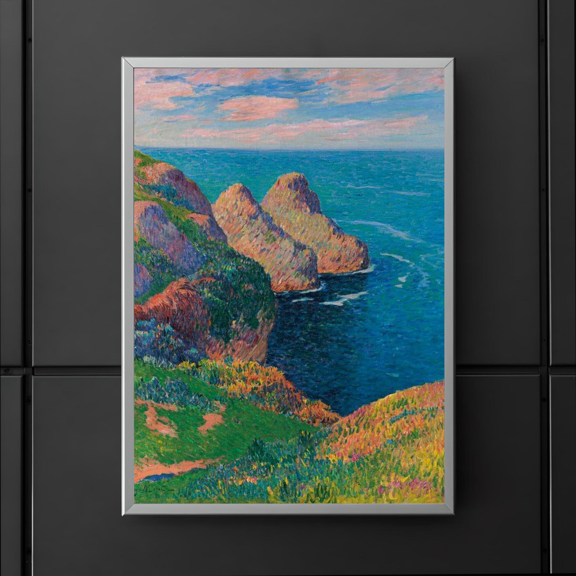 Bring the tranquil beauty of the French coastline into your space with Henry Moret’s "Les Falaises au Bord de la Mer." This exquisite poster captures the serene meeting of rugged cliffs and the endless sea, inviting calm and inspiration to any room. Perfect for art lovers seeking a timeless piece that evokes the peaceful spirit of nature’s grandeur.