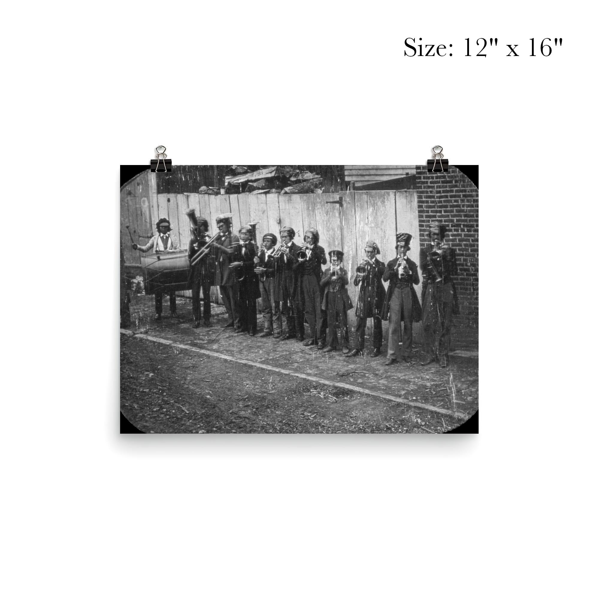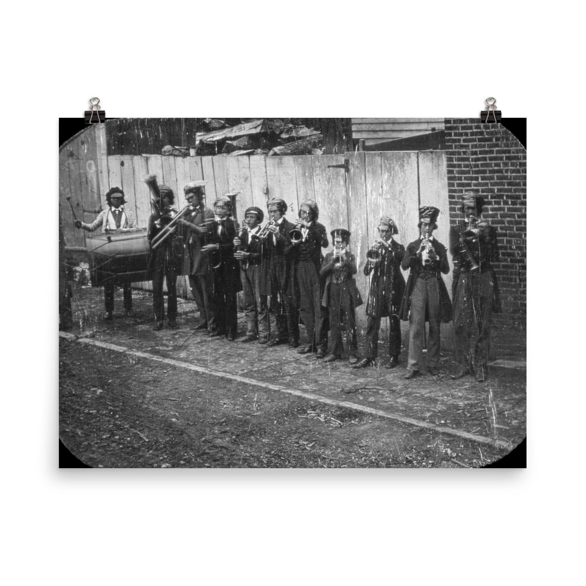 Step back in time with this striking poster capturing a Little German Band playing on the streets of St. Louis in 1850. This vivid glimpse into history brings to life the vibrant cultural spirit of the era, making it a perfect piece for anyone who appreciates authentic historical moments and rich musical heritage. Display it proudly to celebrate the unique blend of tradition and community that shaped early American life.
