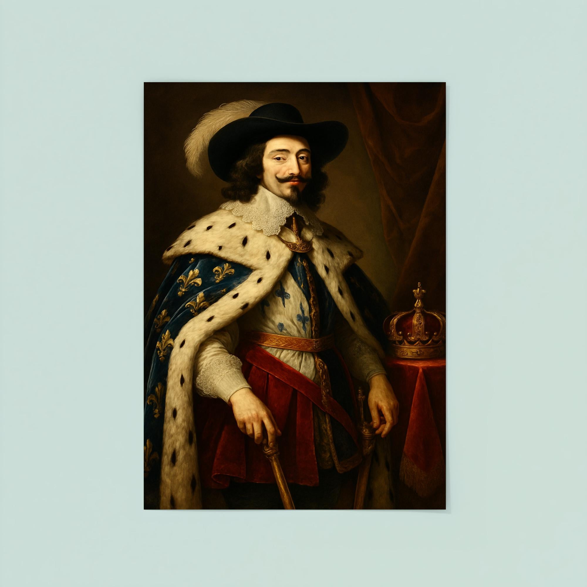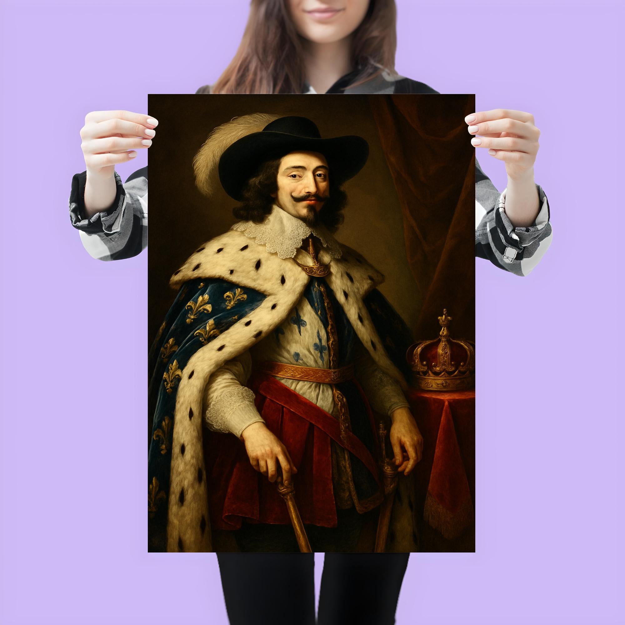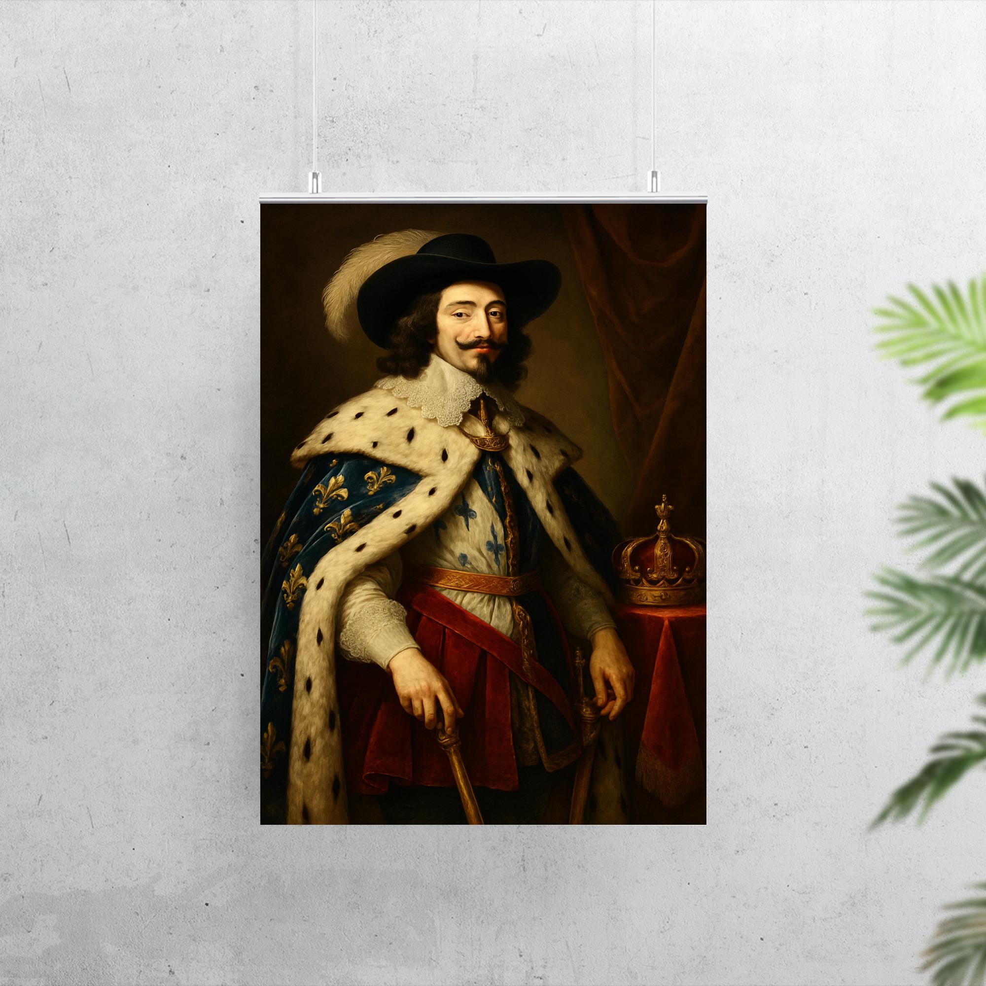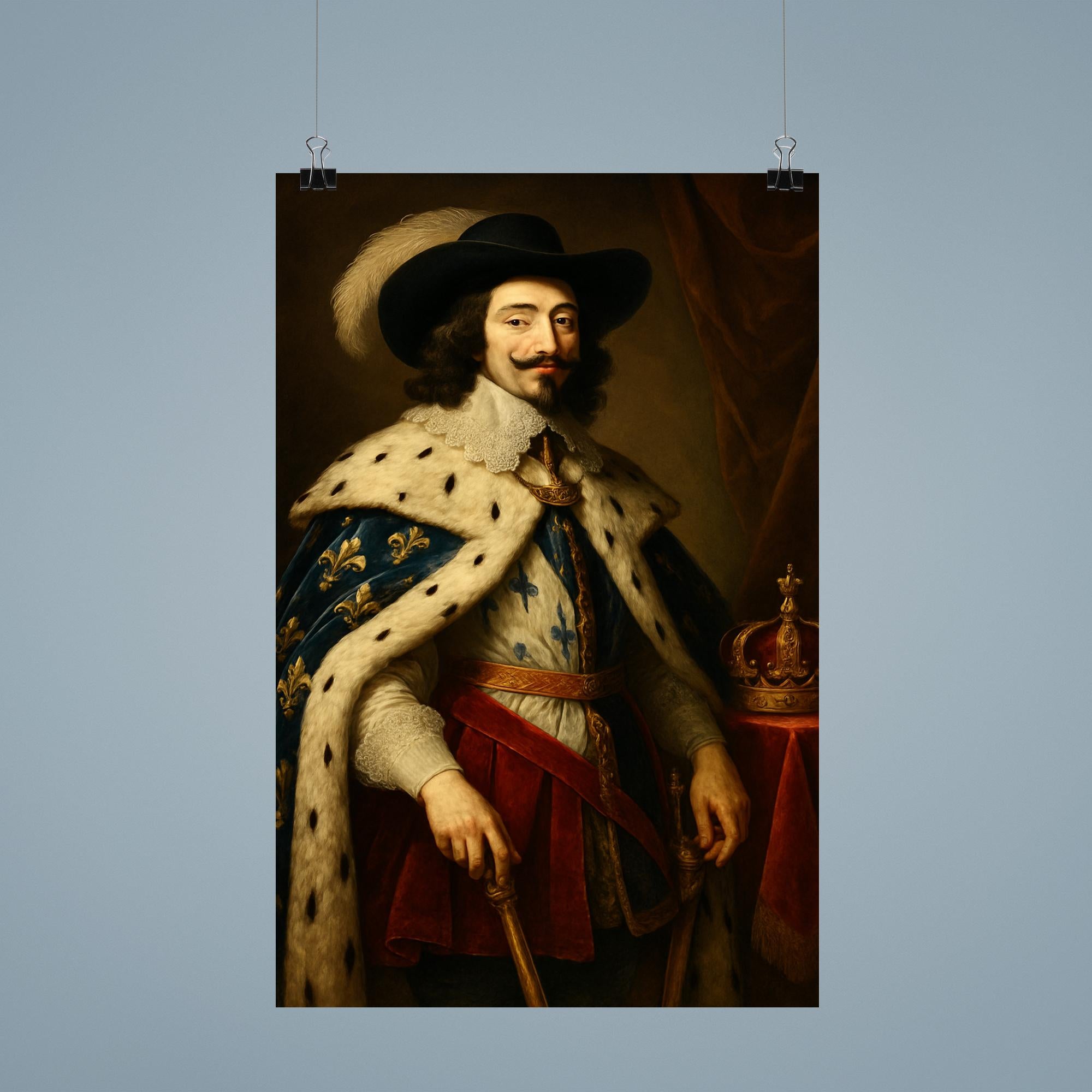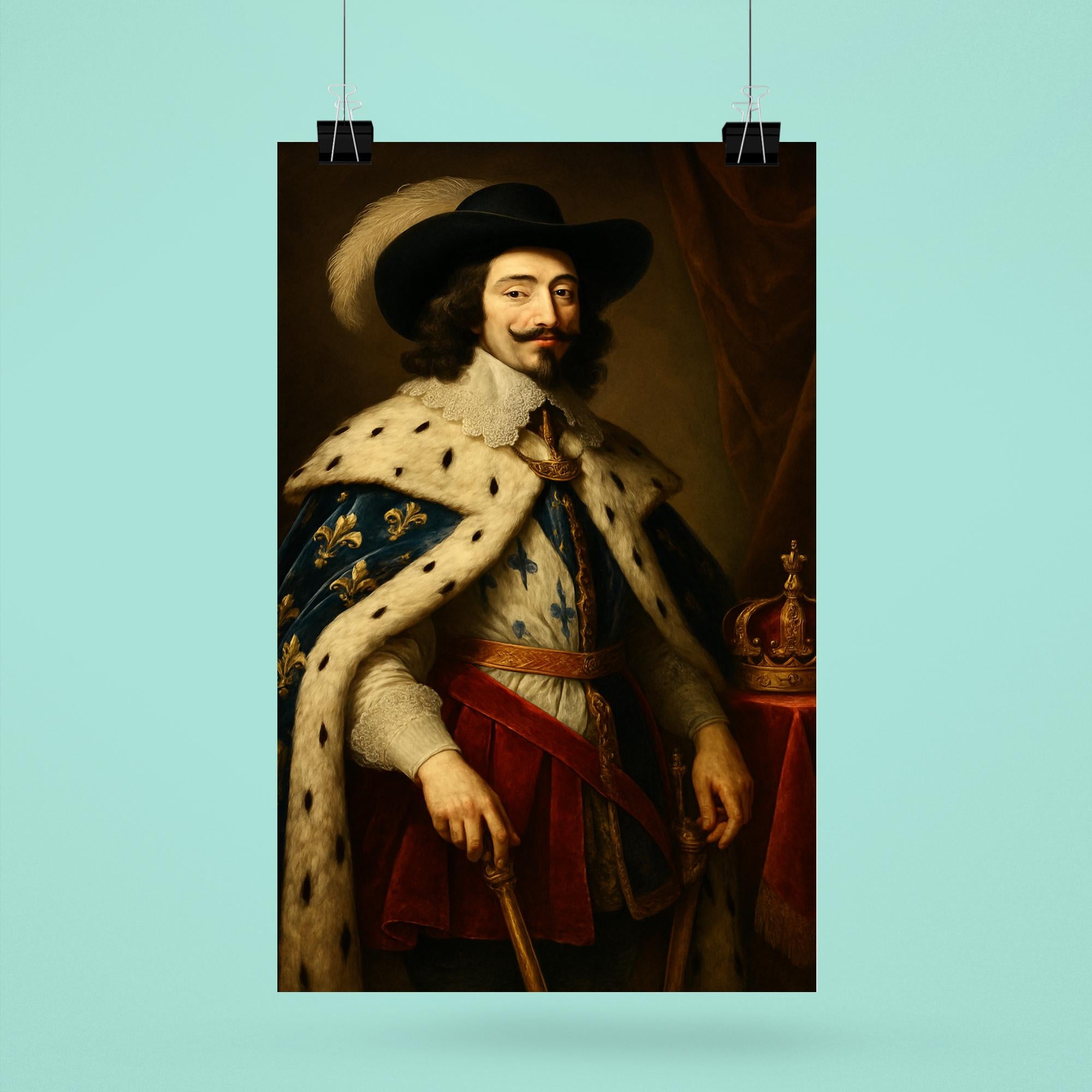 Bring the grandeur of French royalty into your space with this striking poster of Louis XIII of France. A timeless tribute to a monarch whose reign shaped history, this artwork captures the dignified presence of the Sun King's father with regal elegance. Perfect for history enthusiasts and art lovers alike, it adds a noble touch to any room.