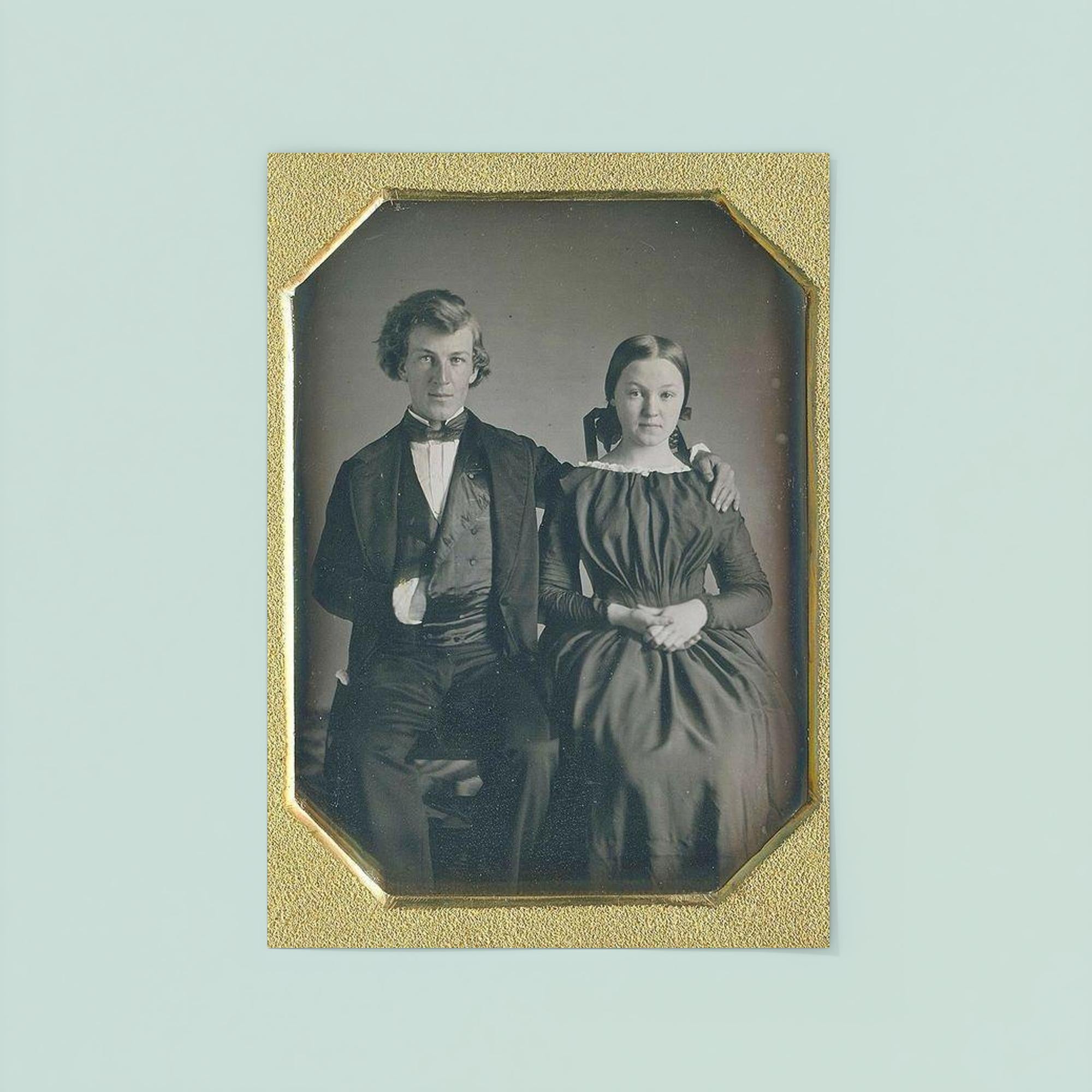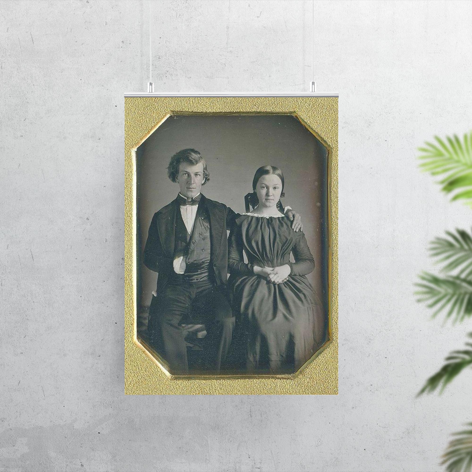 Capture timeless romance with this exquisite 1850s poster of a Lovely Couple. Featuring elegant attire and a graceful pose, the artwork beautifully reflects the charm and refinement of the era. Perfect for adding a touch of vintage allure to any space, this poster invites you to step into a moment of classic love and nostalgia.