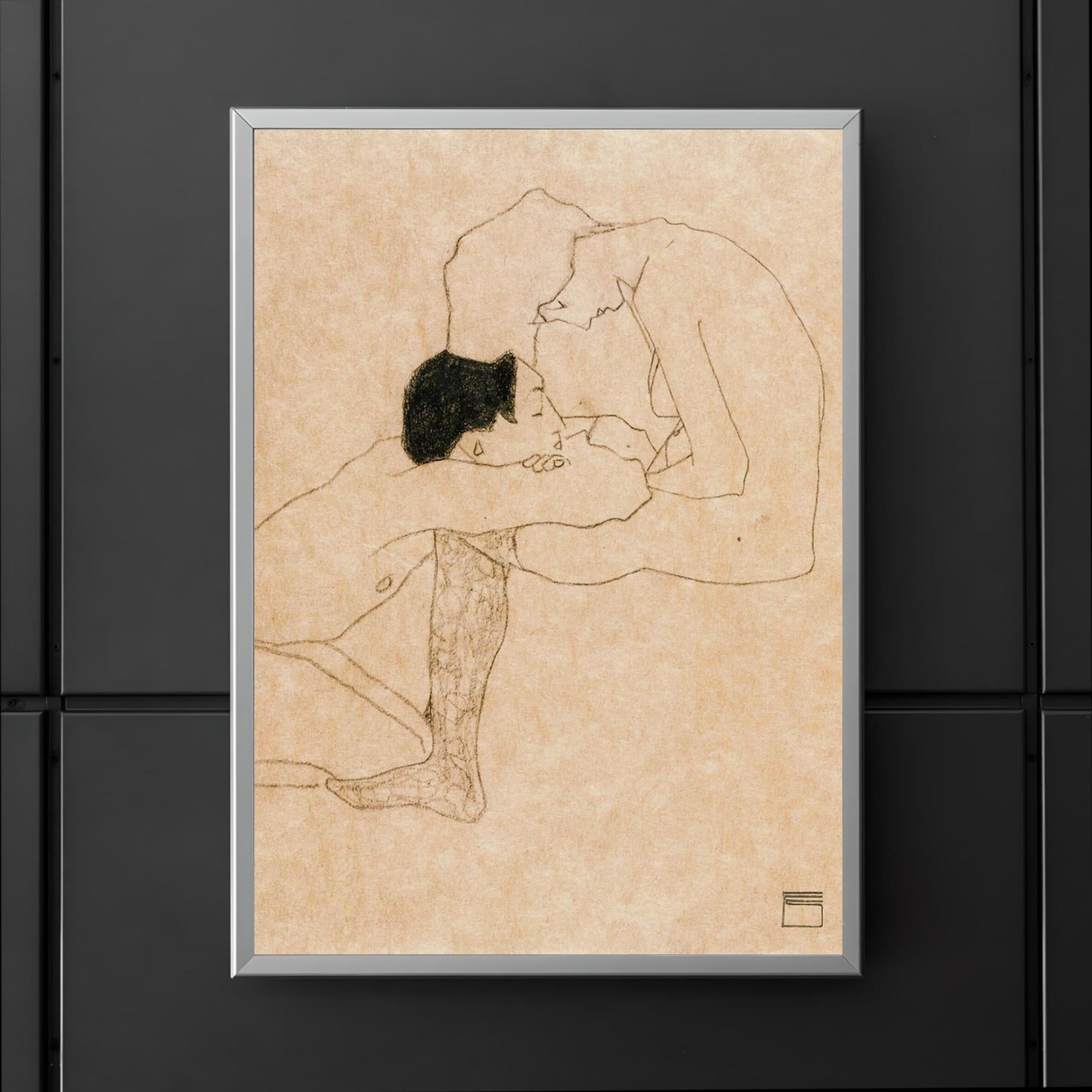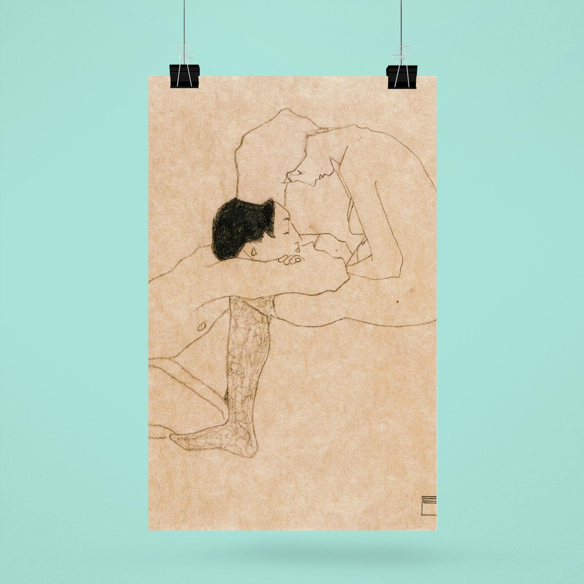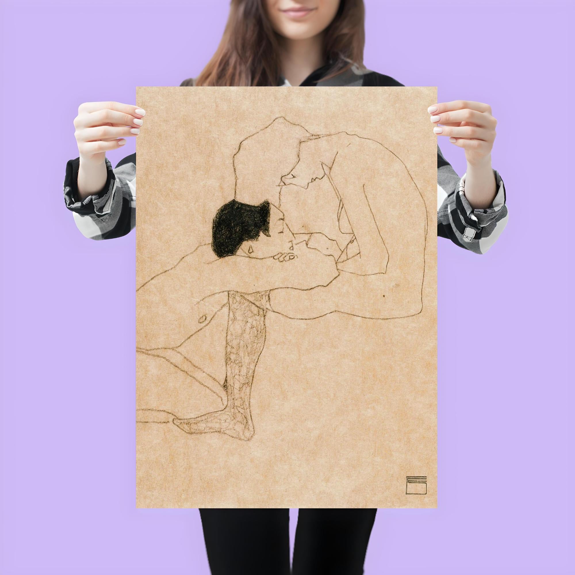 Egon Schiele Lovers 1909 Poster Print – Expressionist Wall Art, Vintage Fine Art Reproduction for Home & Office Decor