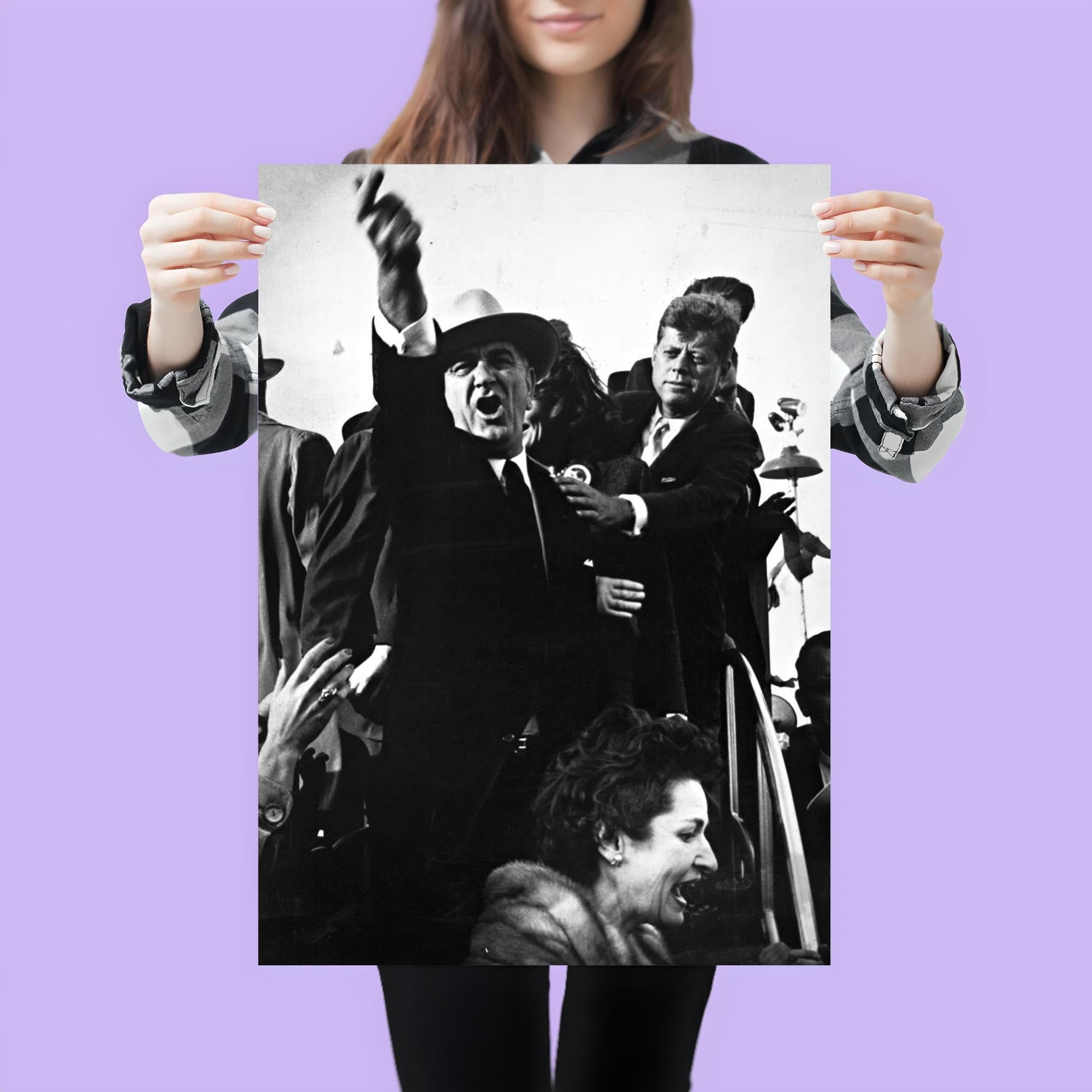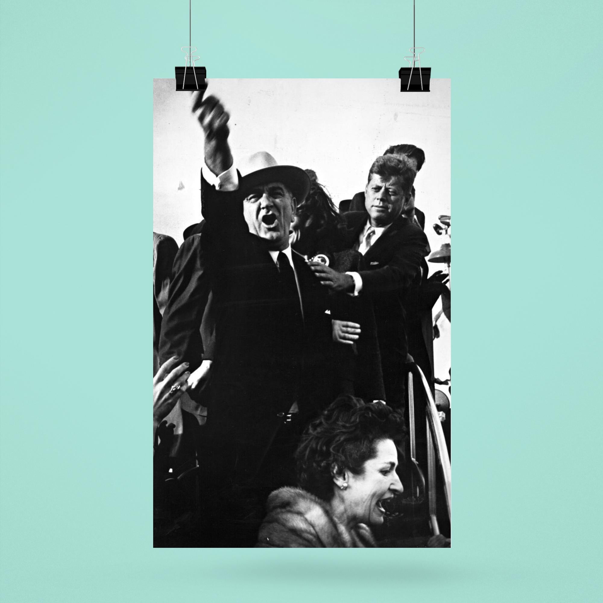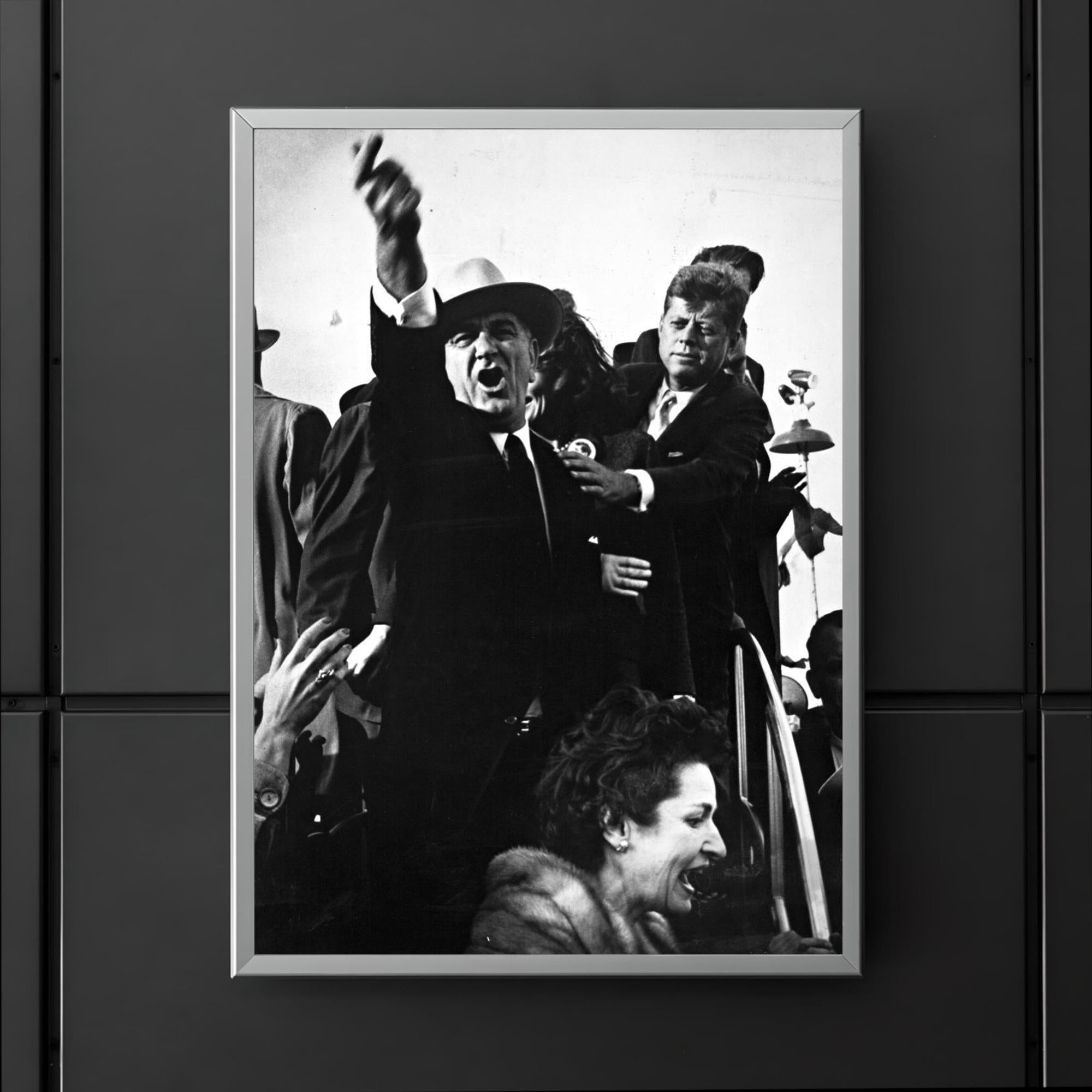 Capture a pivotal moment in American history with this striking poster of Lyndon B. Johnson and John F. Kennedy during the 1960 presidential campaign in Amarillo, Texas. This powerful image embodies the spirit of leadership and the excitement of a nation on the brink of change. Perfect for history enthusiasts and collectors alike, it serves as a timeless reminder of a dynamic political partnership that shaped the future.