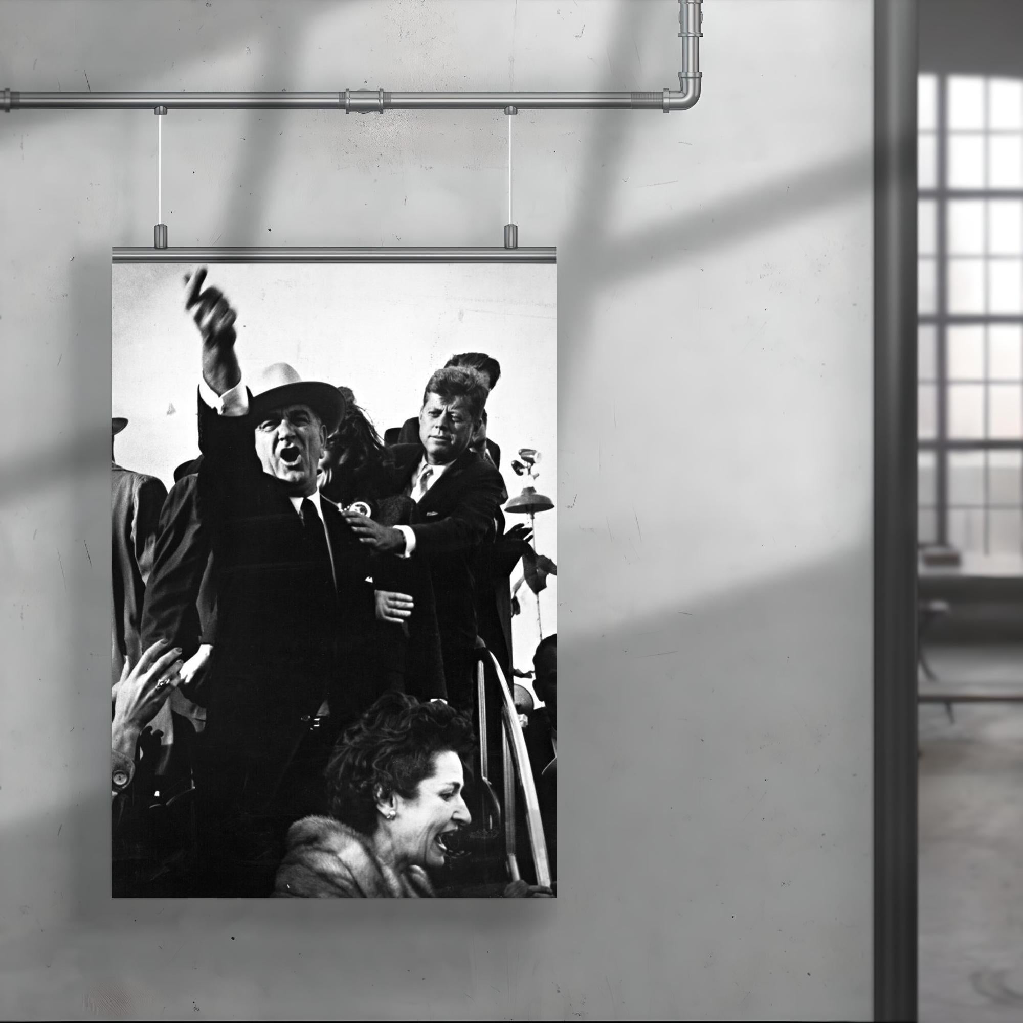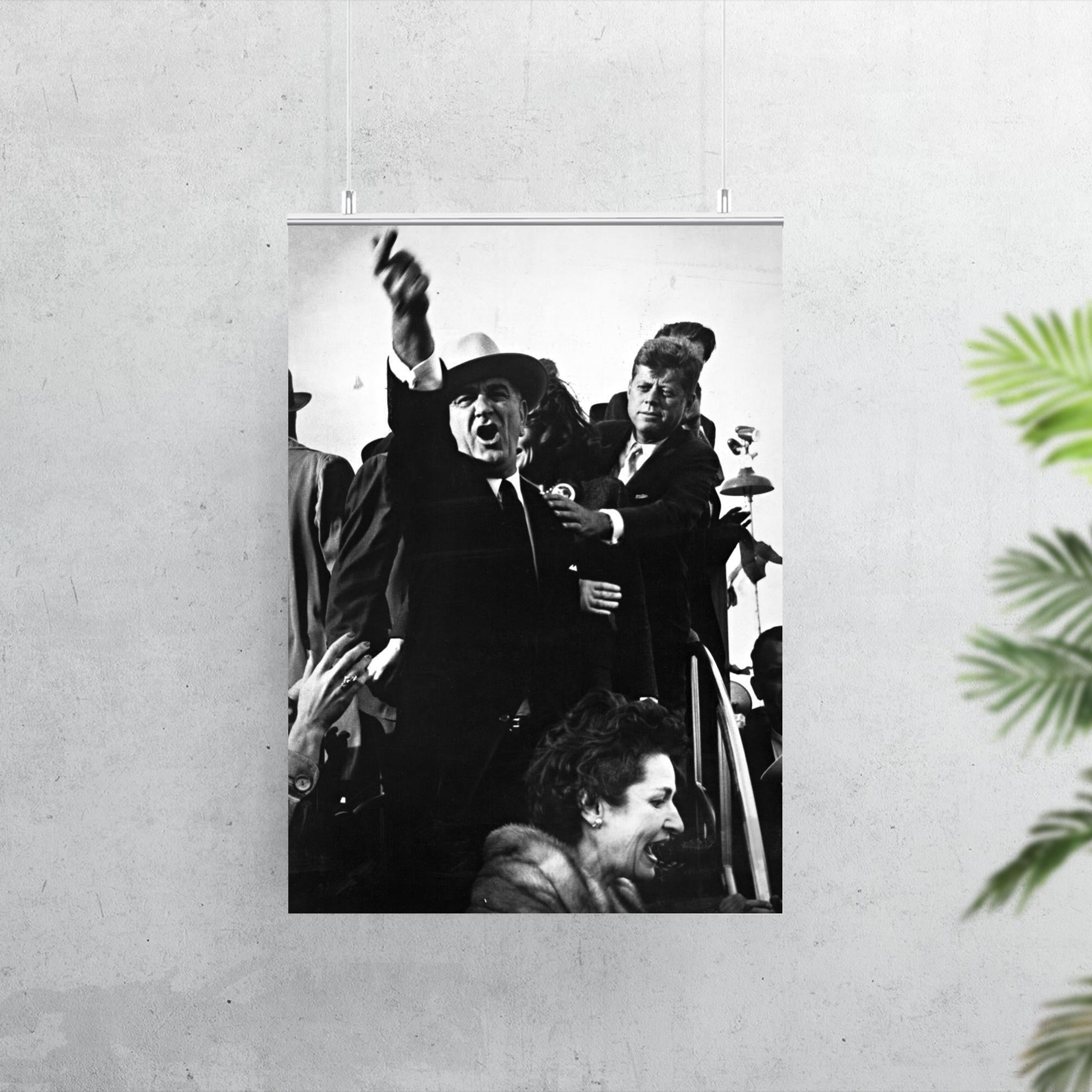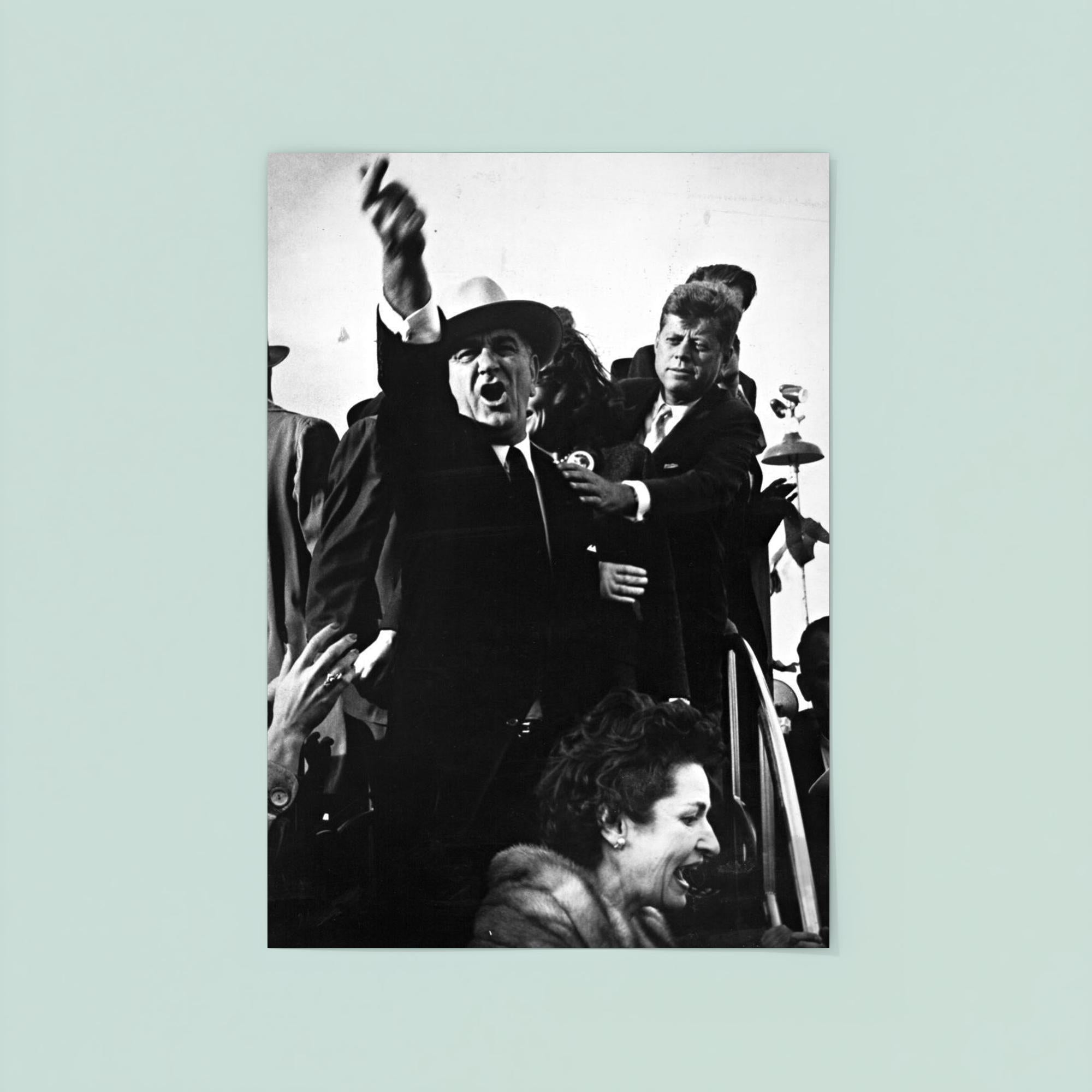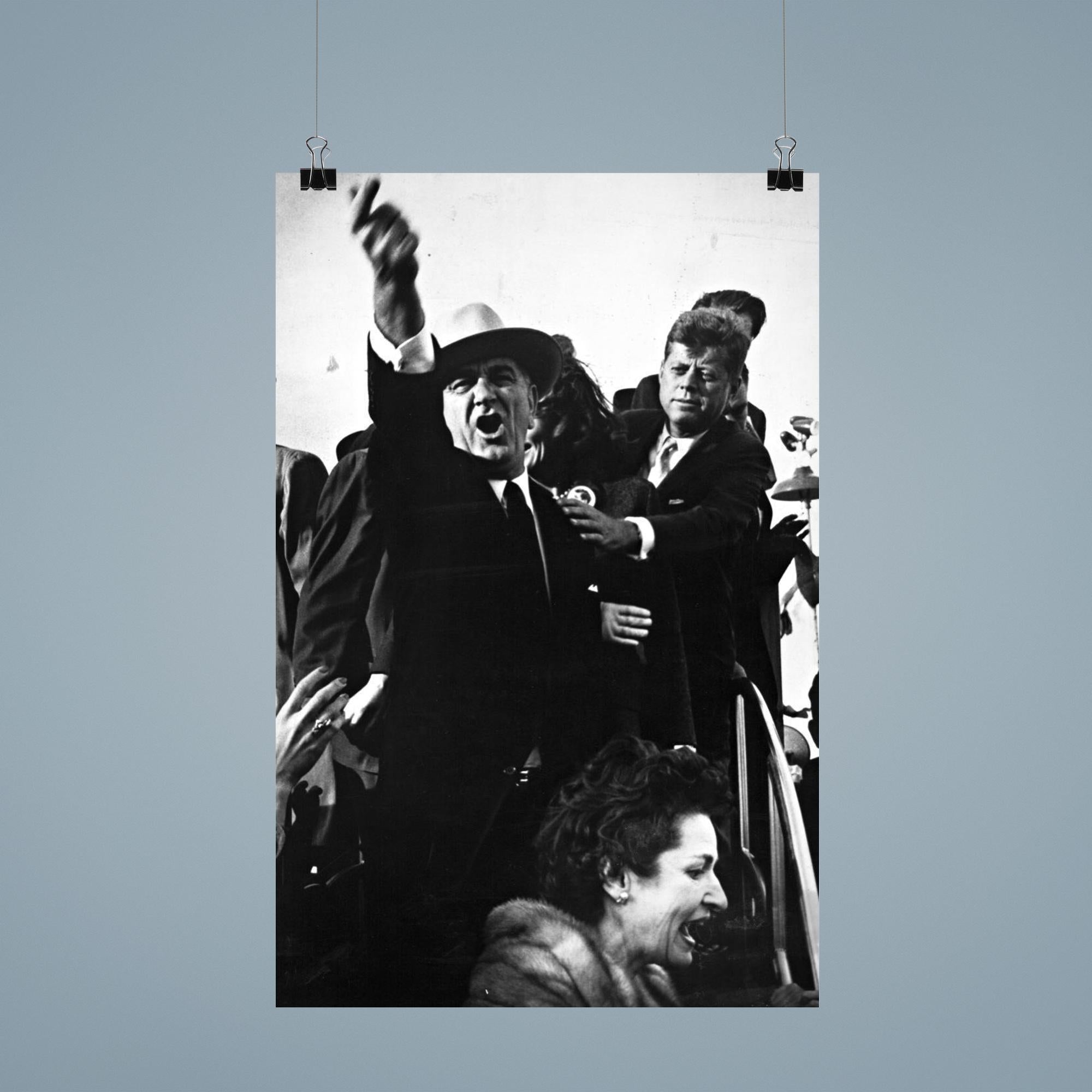 Capture a pivotal moment in American history with this striking poster of Lyndon B. Johnson and John F. Kennedy during the 1960 presidential campaign in Amarillo, Texas. This powerful image embodies the spirit of leadership and the excitement of a nation on the brink of change. Perfect for history enthusiasts and collectors alike, it serves as a timeless reminder of a dynamic political partnership that shaped the future.