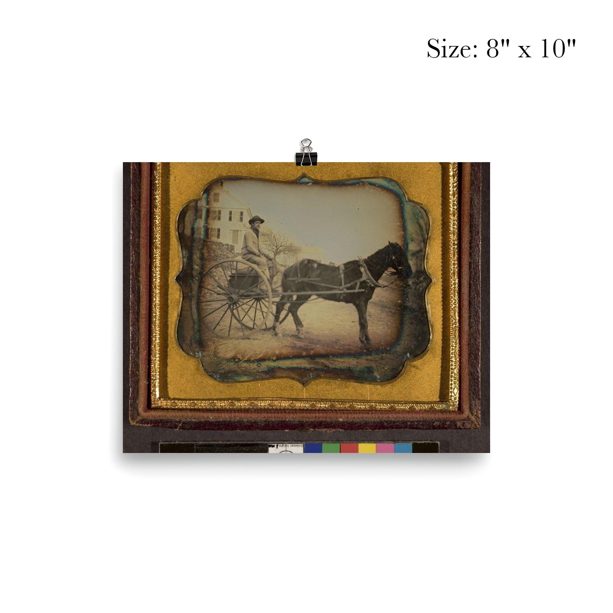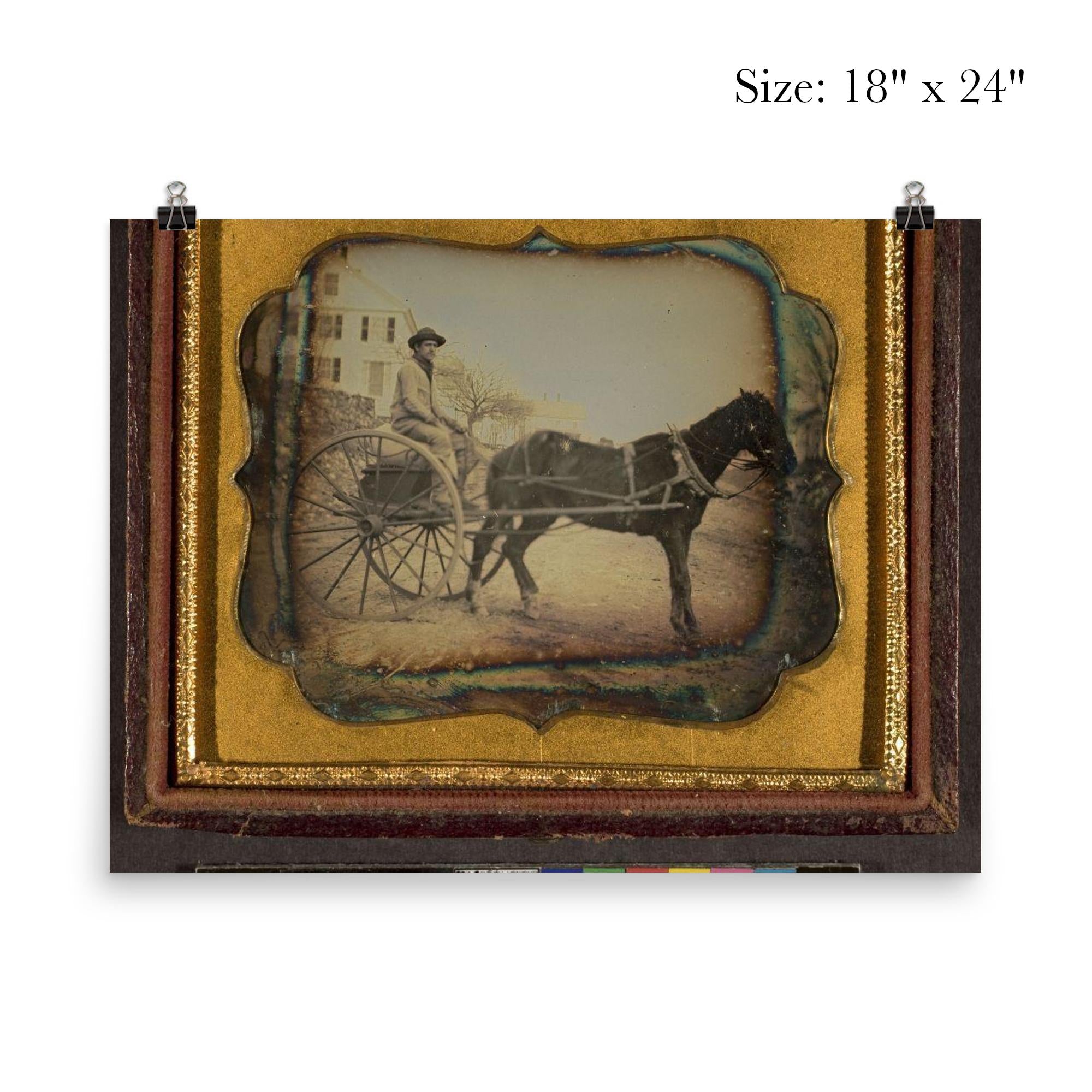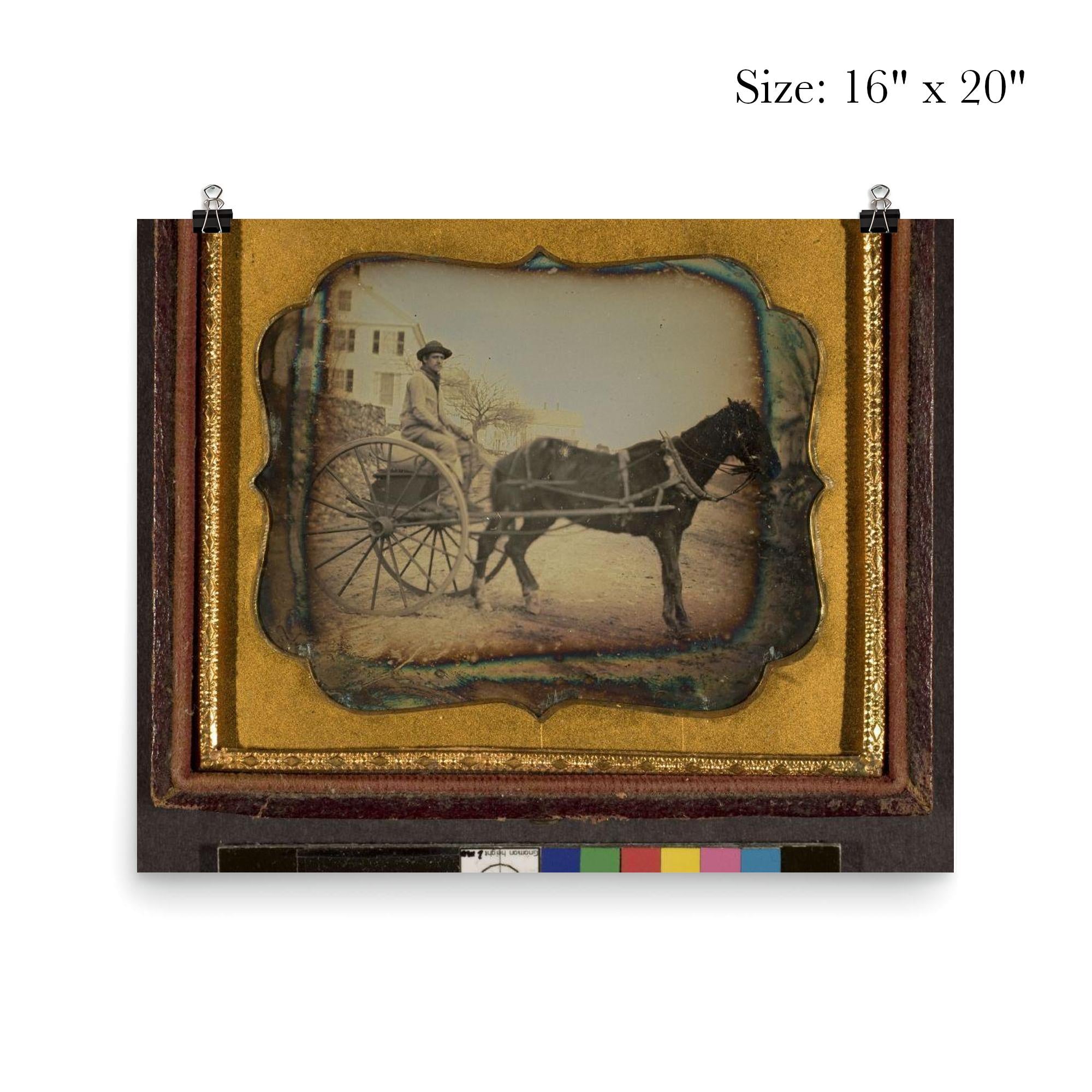 Step back in time with this striking poster of an American Man at the Reins of a Horse-Drawn Rig, circa 1855. This evocative image captures the spirit of an era defined by strength, determination, and the bonds between man and horse. Perfect for history enthusiasts and art lovers alike, it brings a powerful piece of Americana straight into your space.