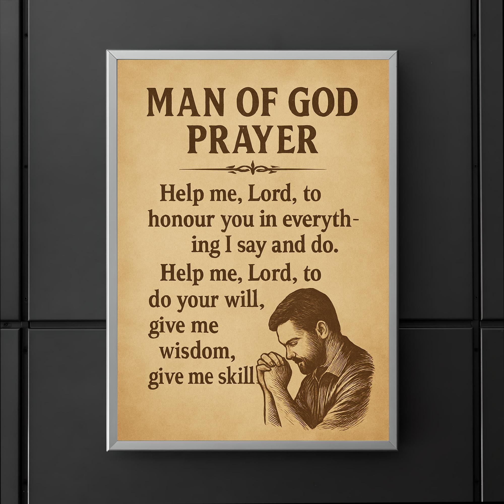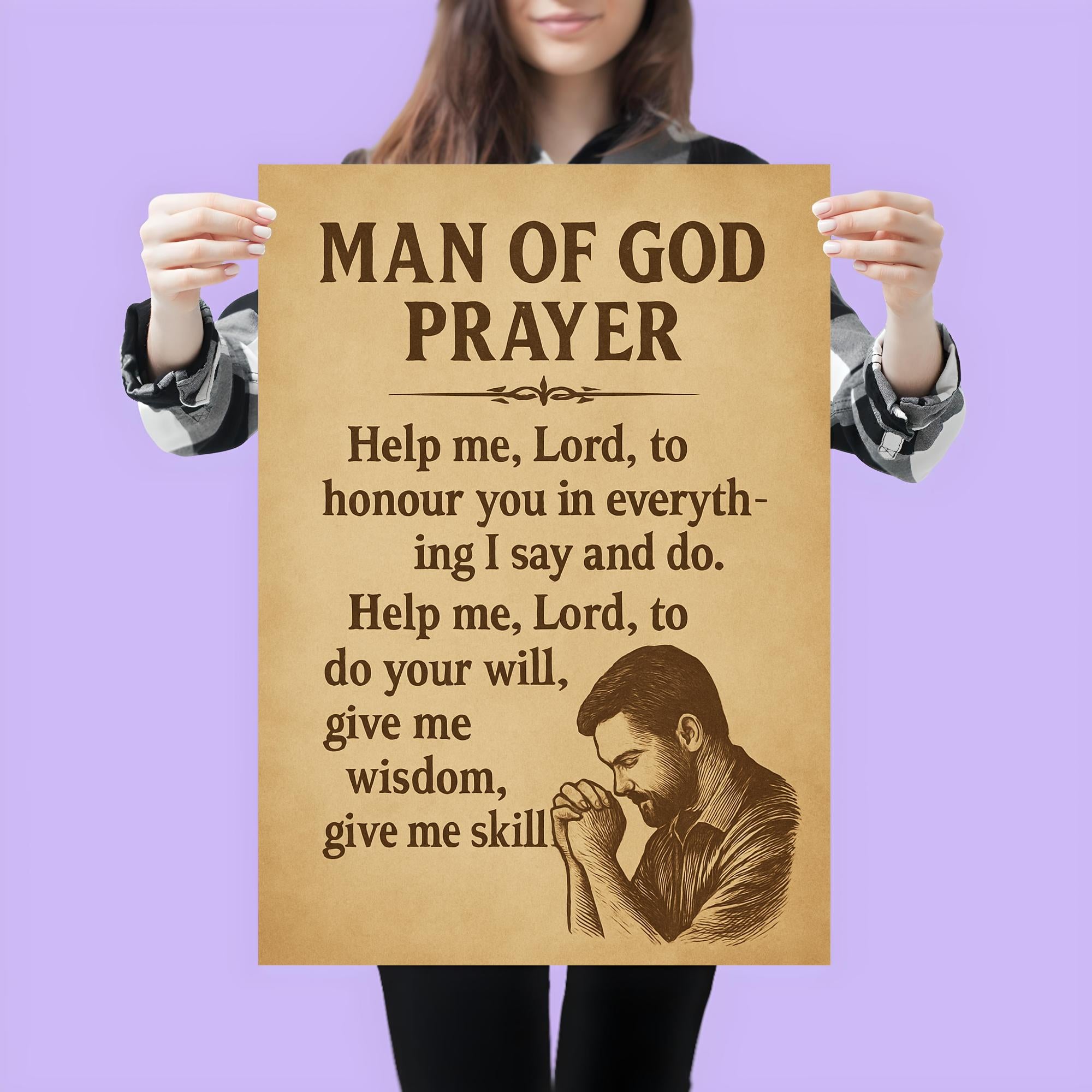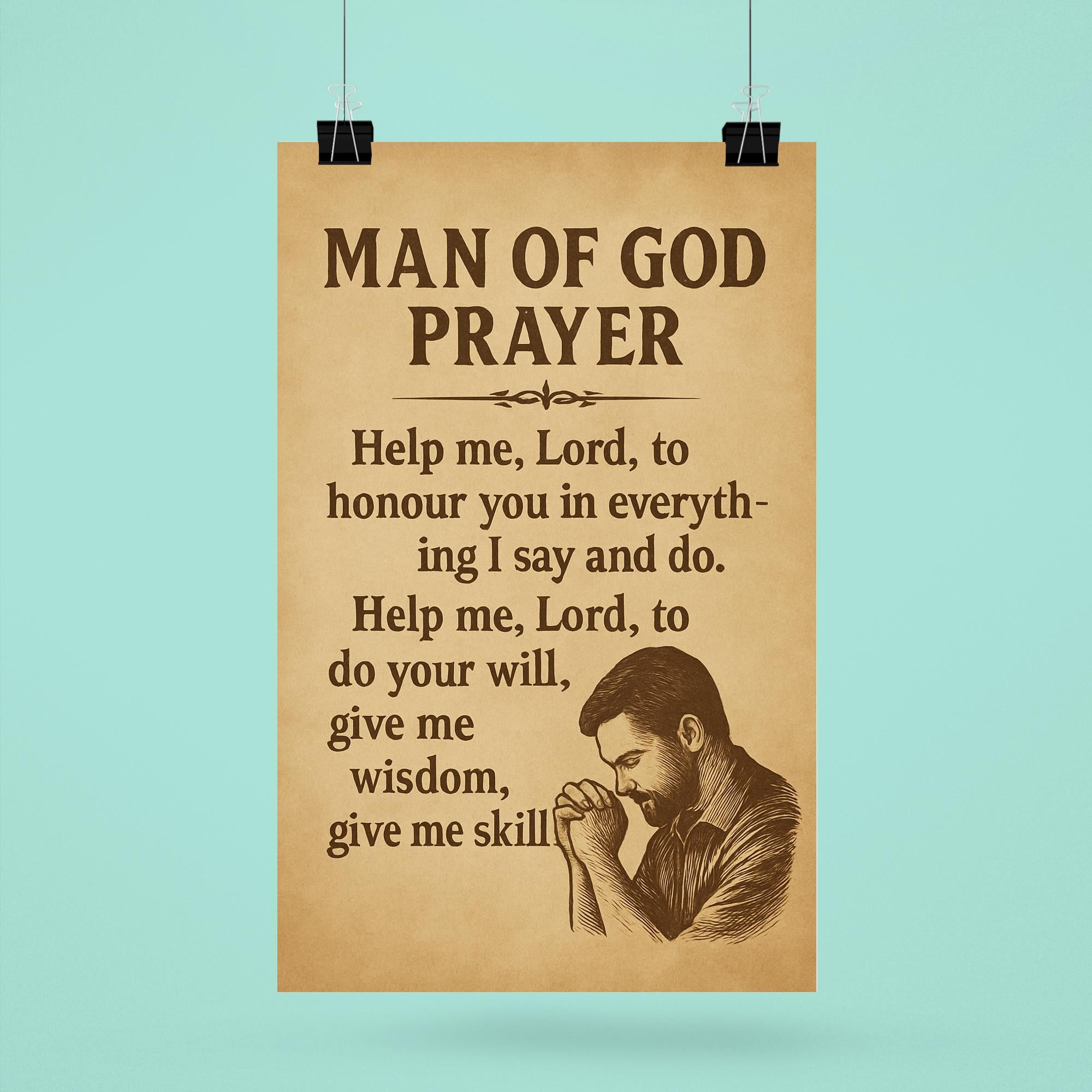 Elevate your space with this inspiring *Man of God* prayer poster, a heartfelt reminder to seek wisdom, skill, and guidance in honoring the Lord in every word and action. Let this powerful prayer encourage you daily to align your life with His will and purpose.