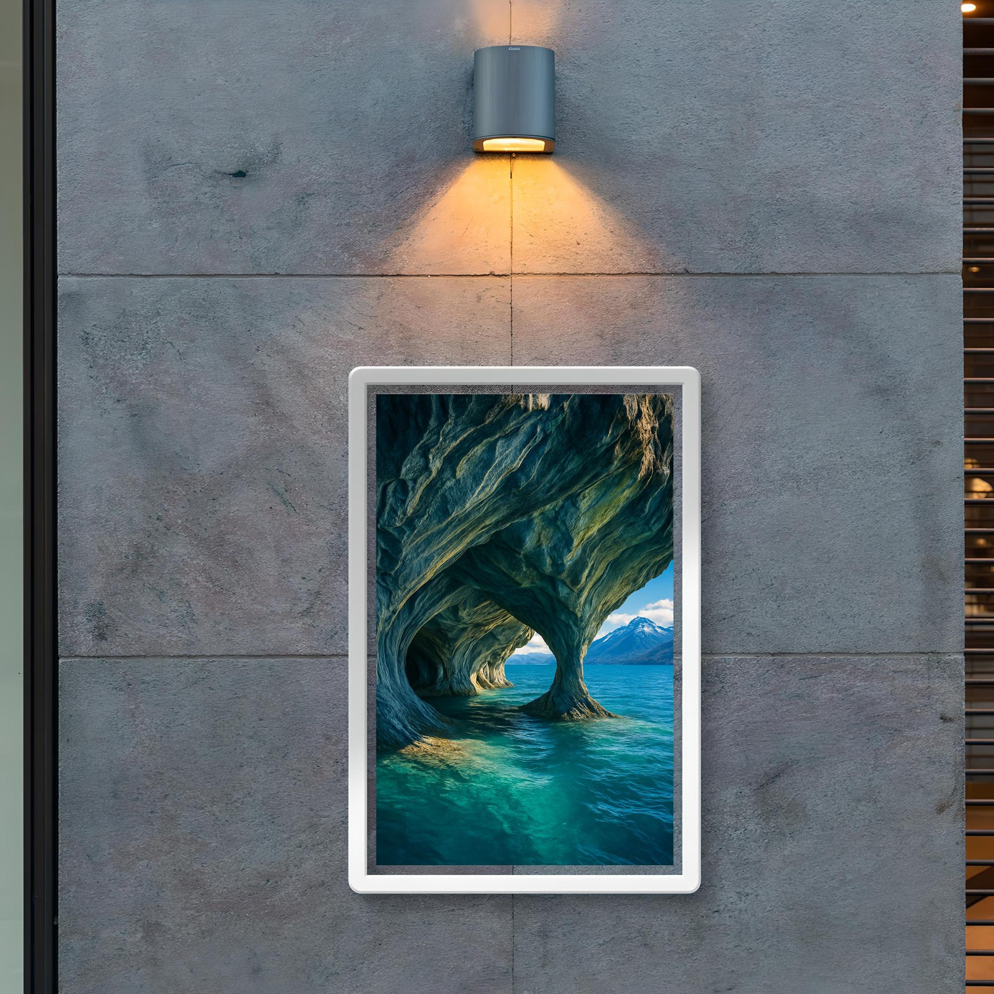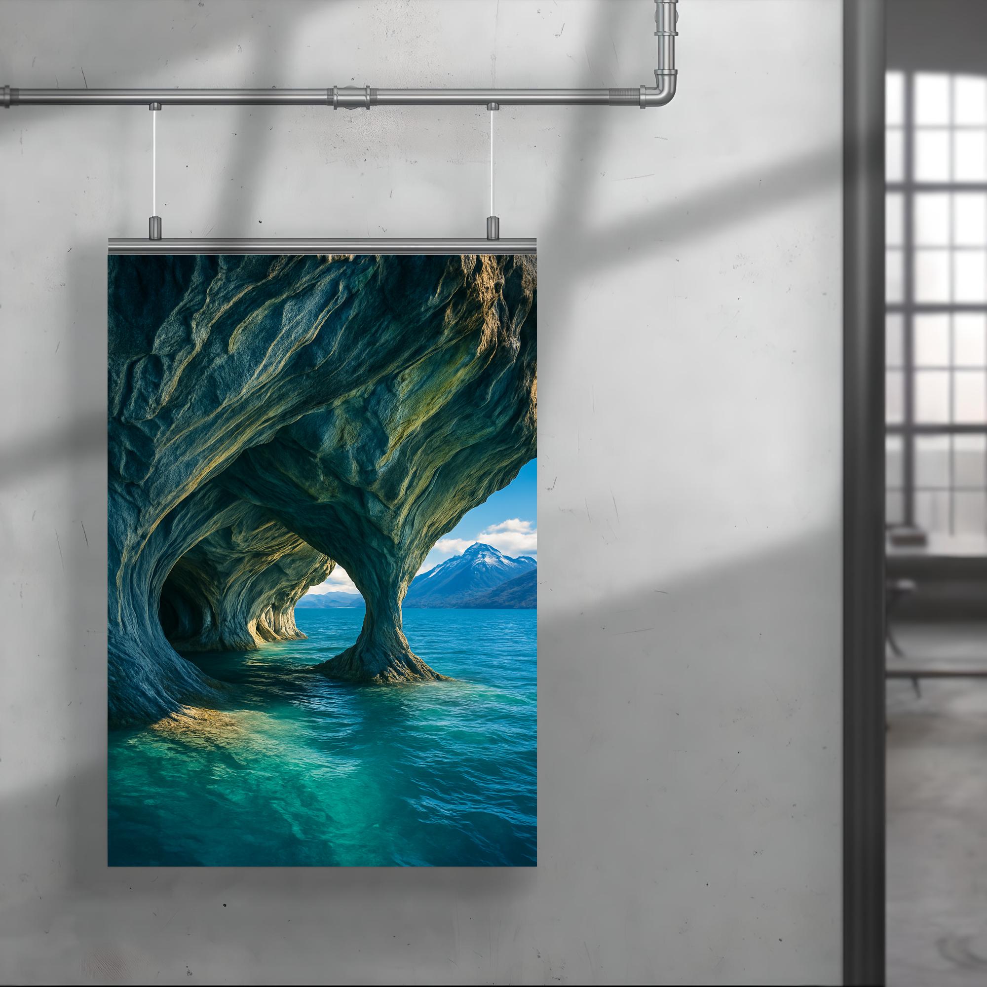 Transform your space with this stunning poster of the Marble Caves (Cuevas de Mármol) in Chile, showcasing nature's artistry carved in vibrant blue waters and intricate rock formations. Perfect for adventurers and art lovers alike, this print captures the serene beauty and timeless wonder of one of the world’s most mesmerizing natural wonders. Elevate any room with a piece that invites curiosity and awe.