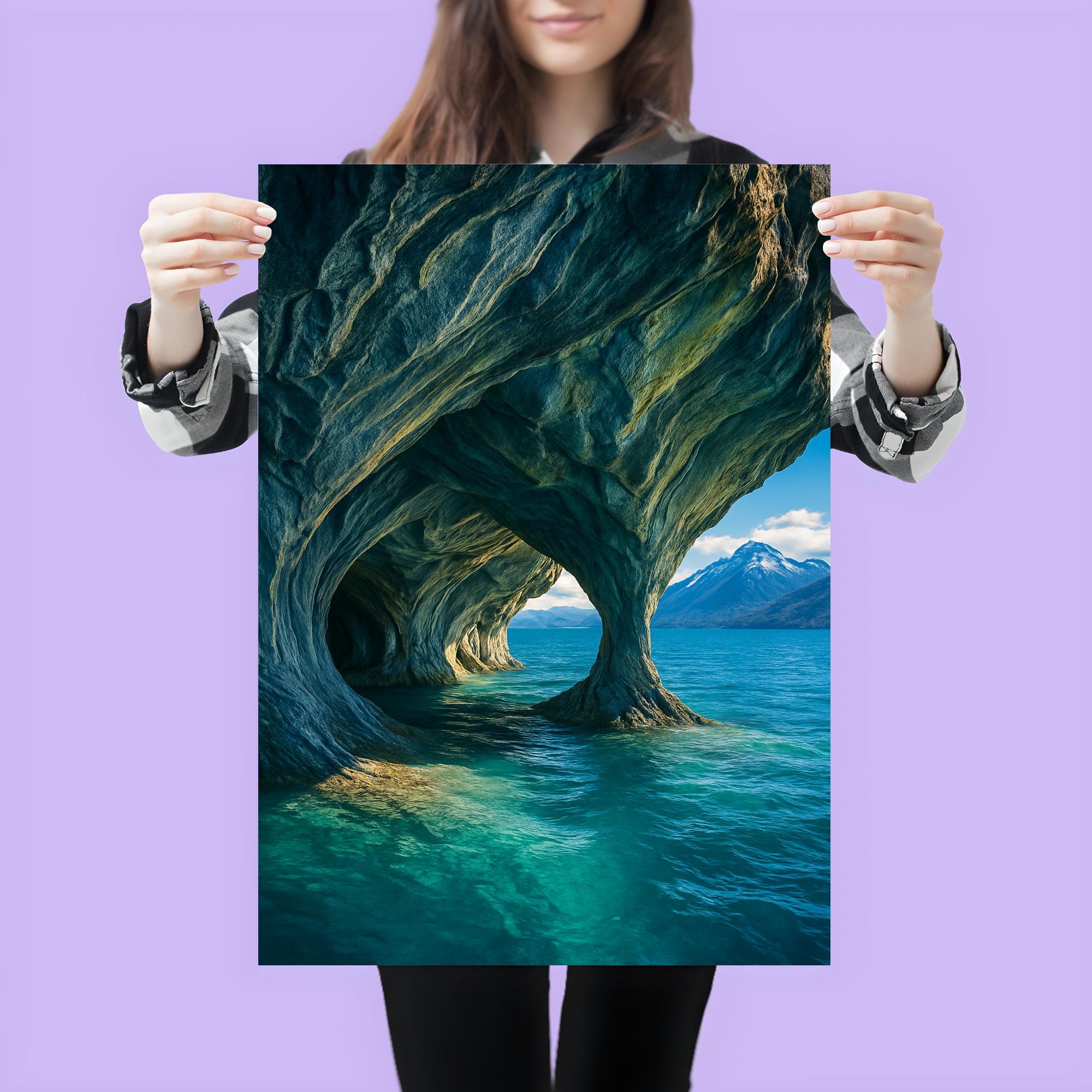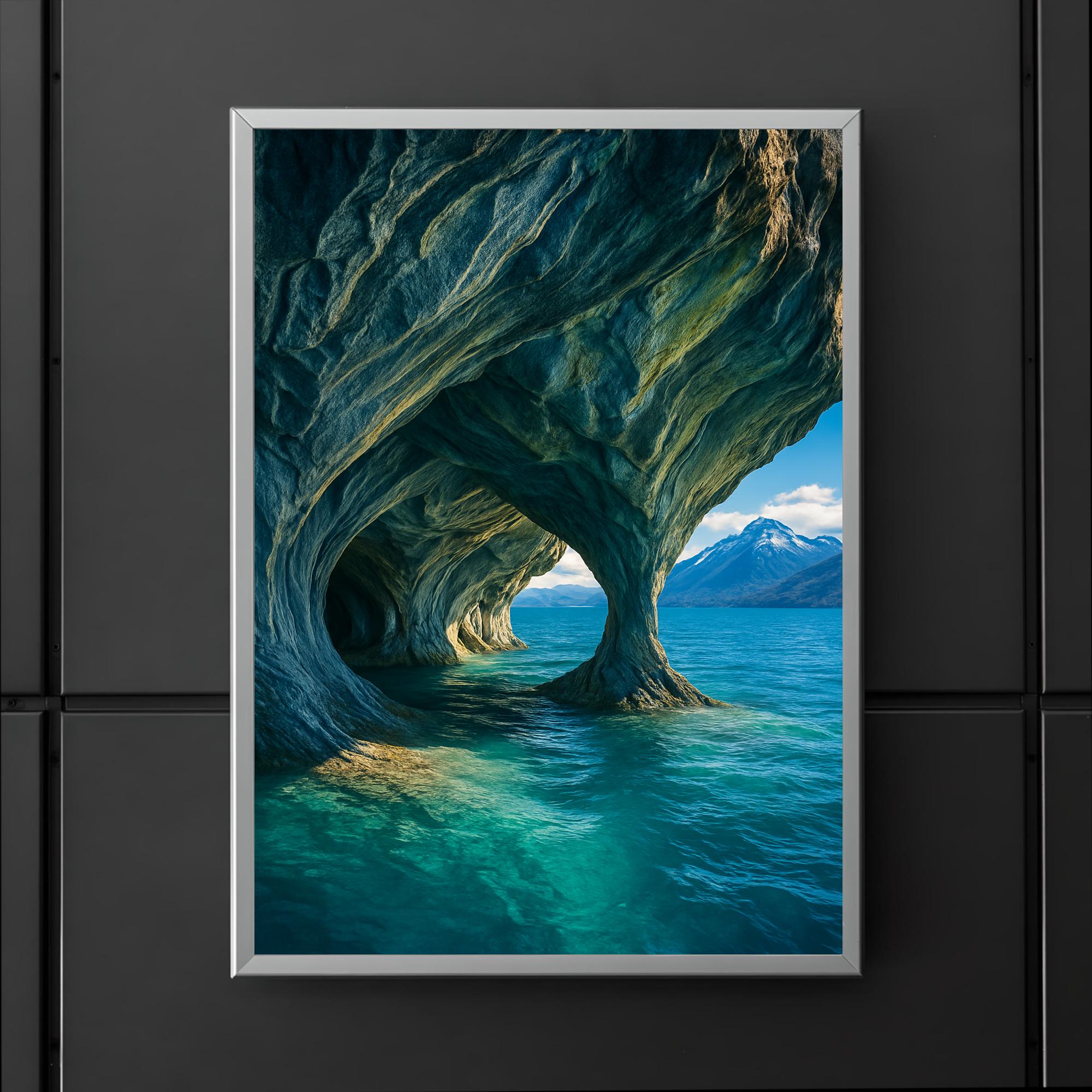Marble Caves Cuevas de Mármol Chile Poster Print – Stunning Blue Marble Wall Art, Nature Photography Decor for Living Room & Office