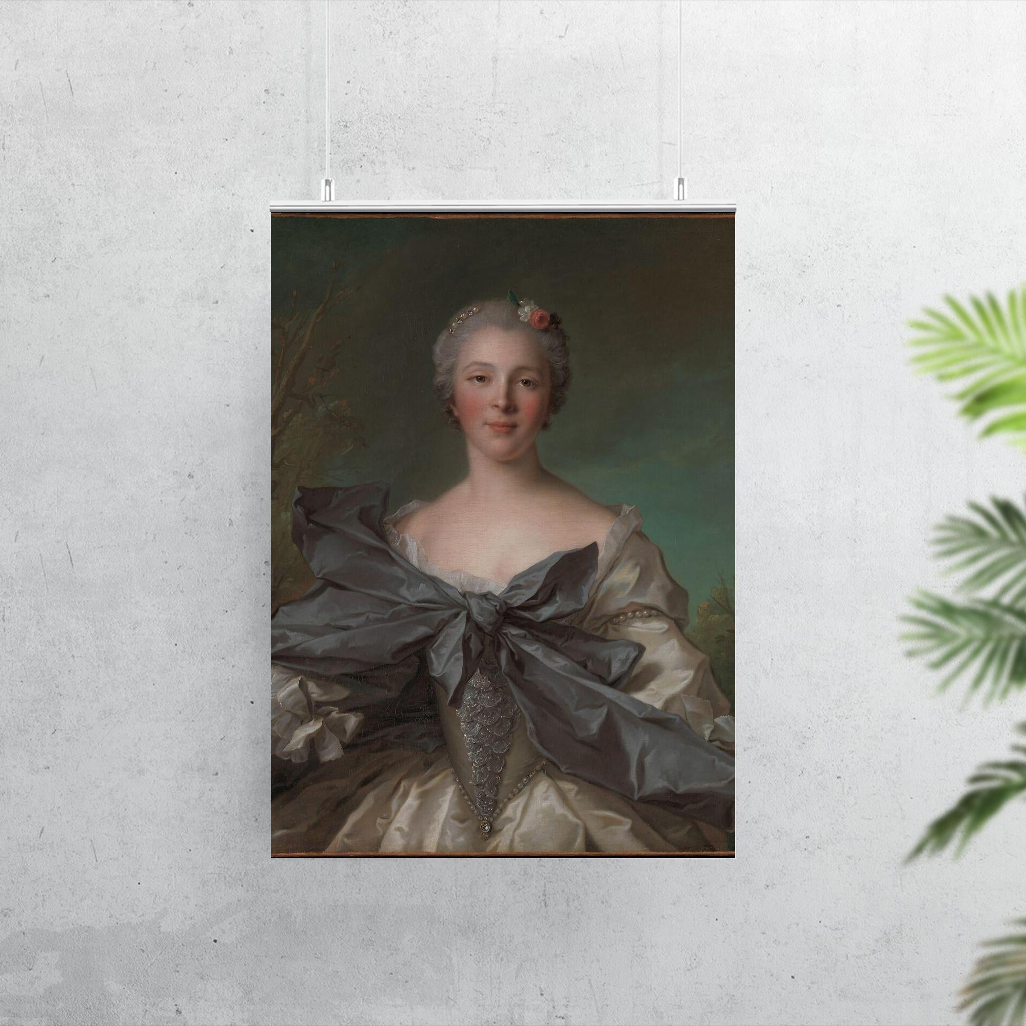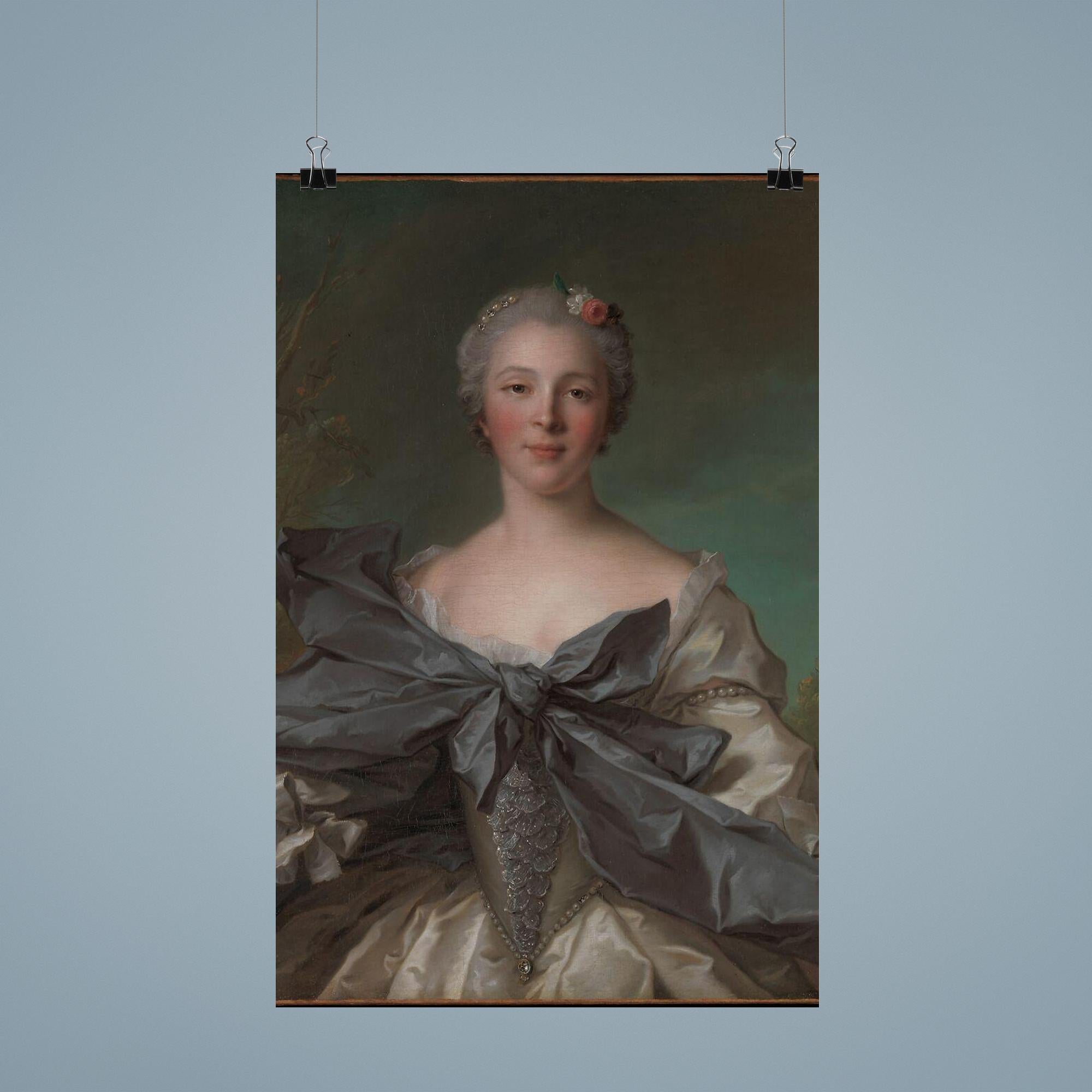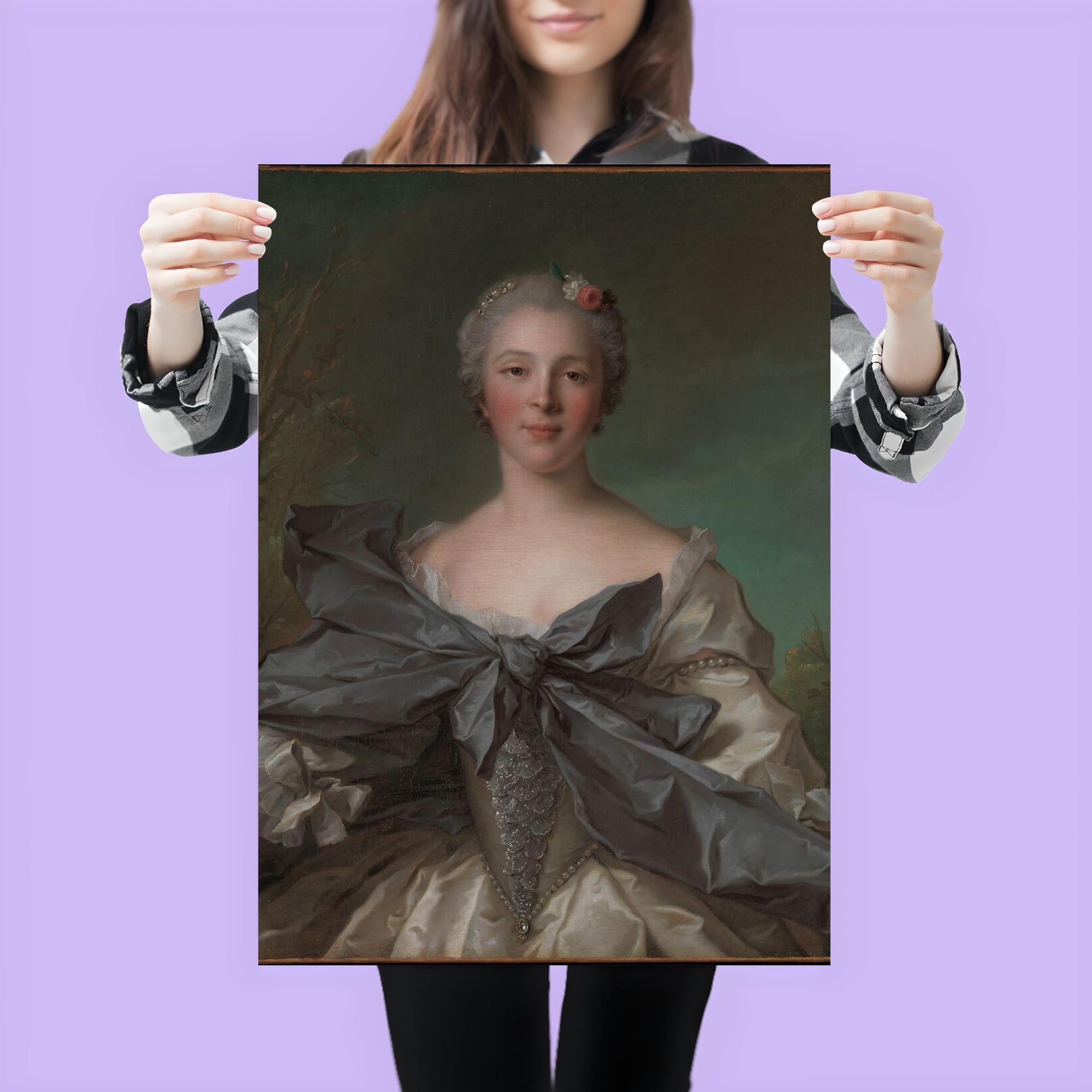 Elevate your space with this exquisite poster of Marie Françoise de La Cropte de St. Abre, Marquise d'Argence, masterfully painted by Jean Marc Nattier in 1744. This timeless portrait captures the elegance and grace of French aristocracy, making it a stunning centerpiece for any room. Perfect for lovers of classic art and history, this print brings a touch of 18th-century sophistication to your décor.