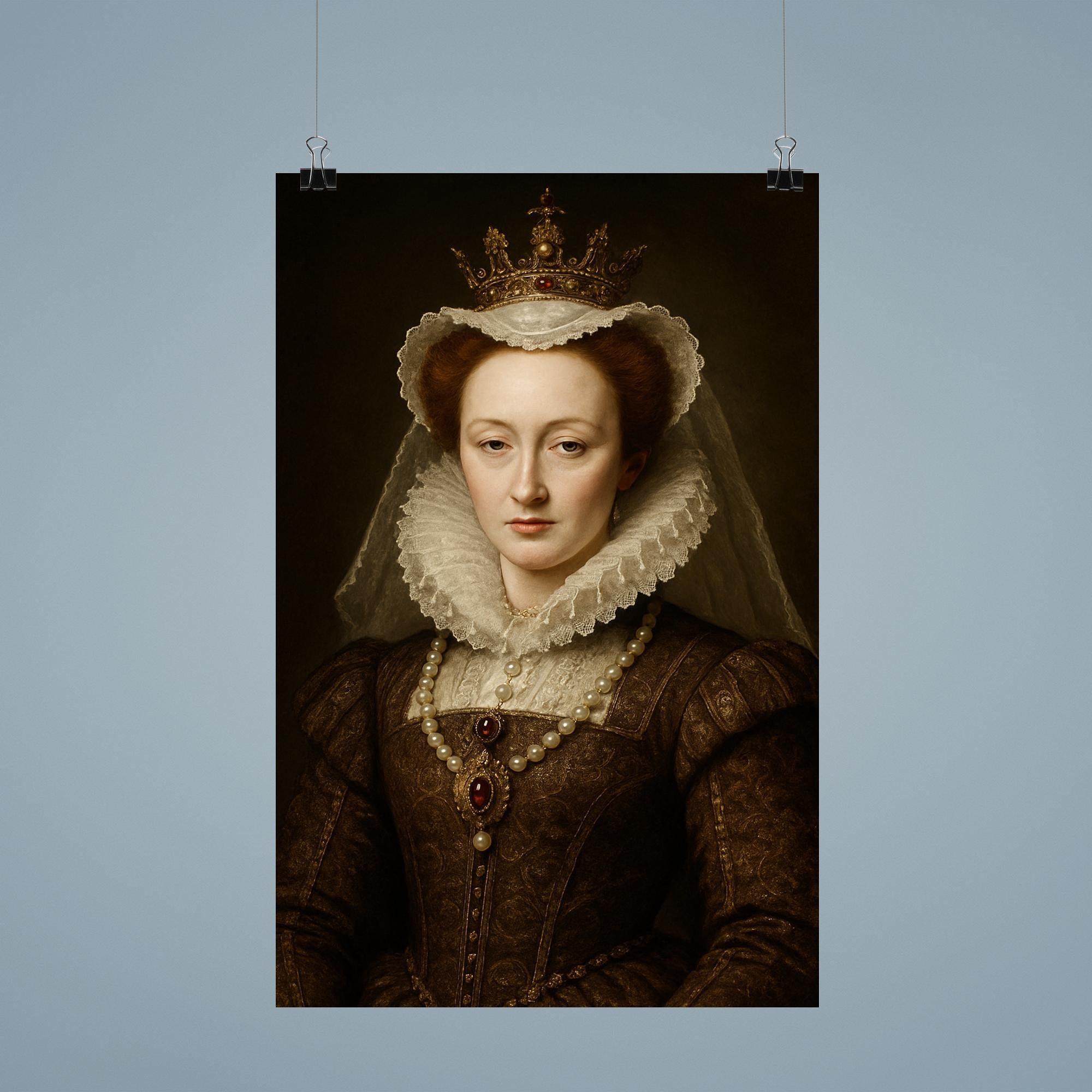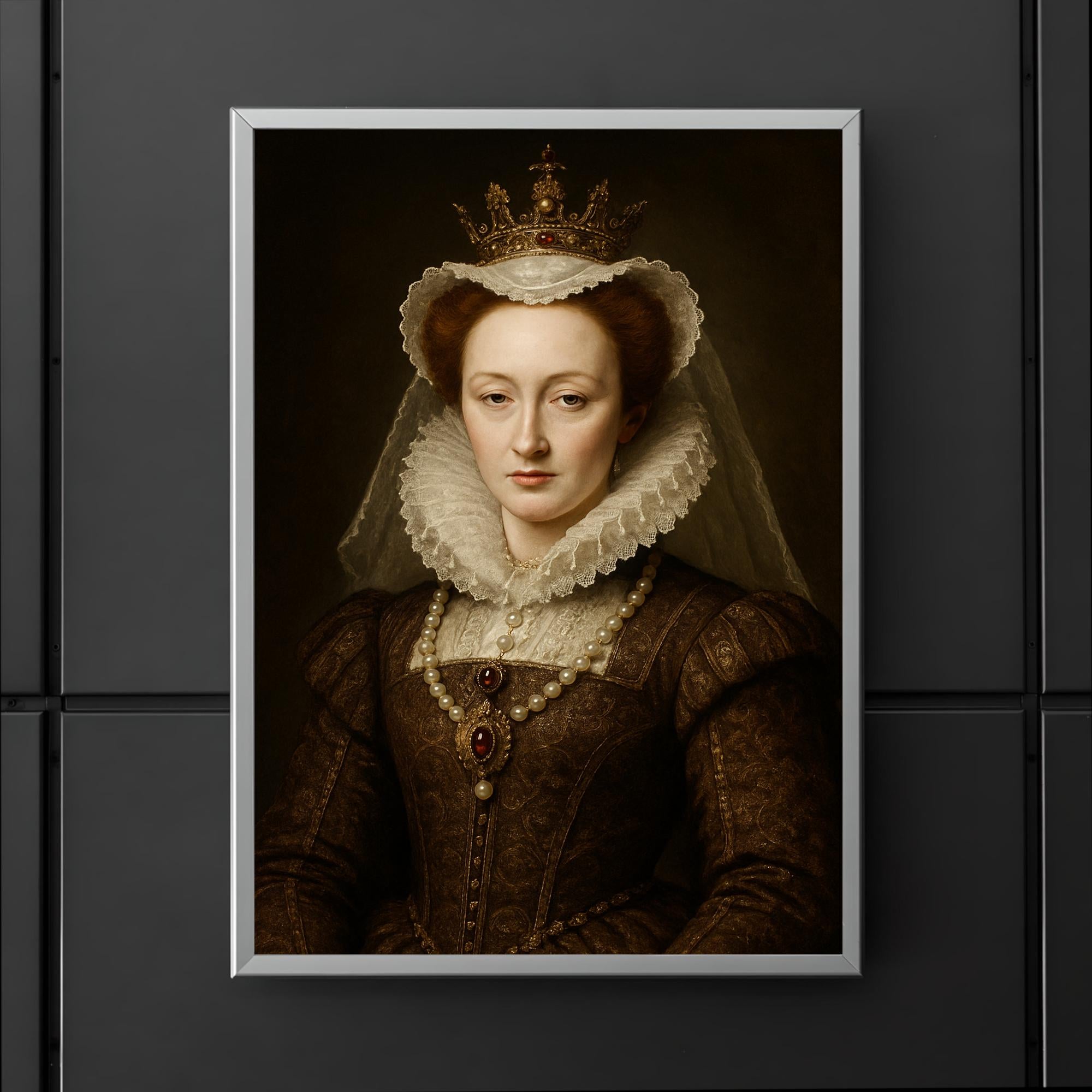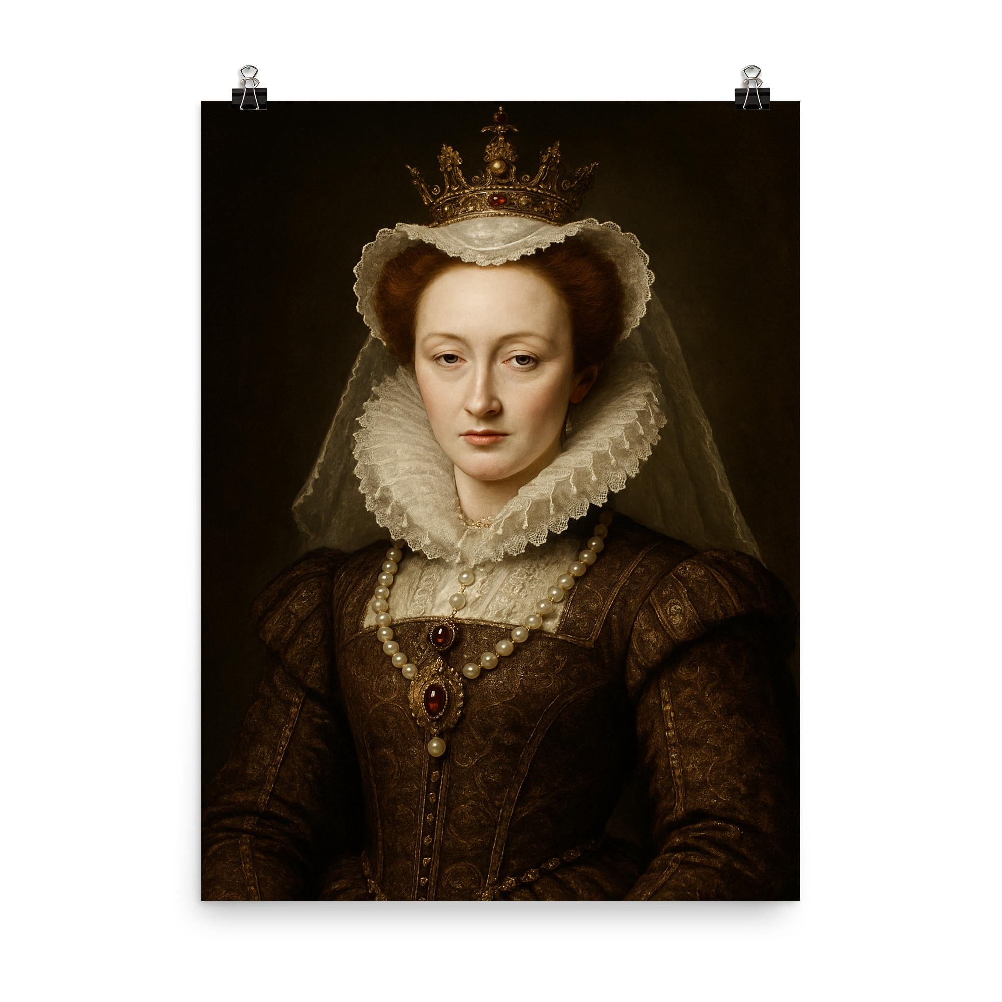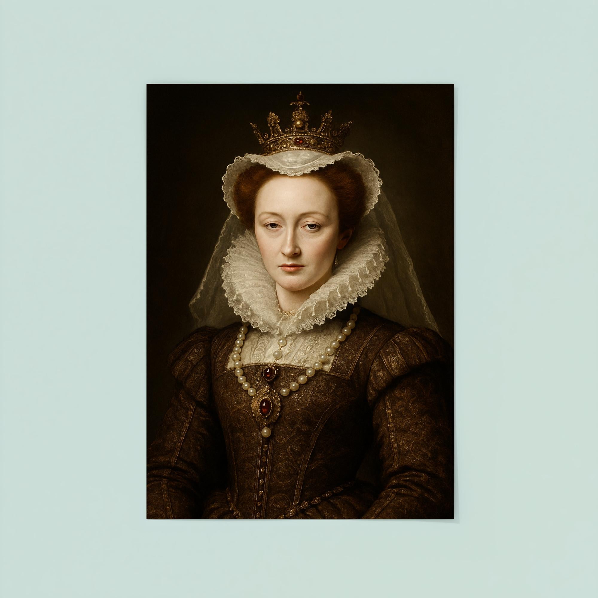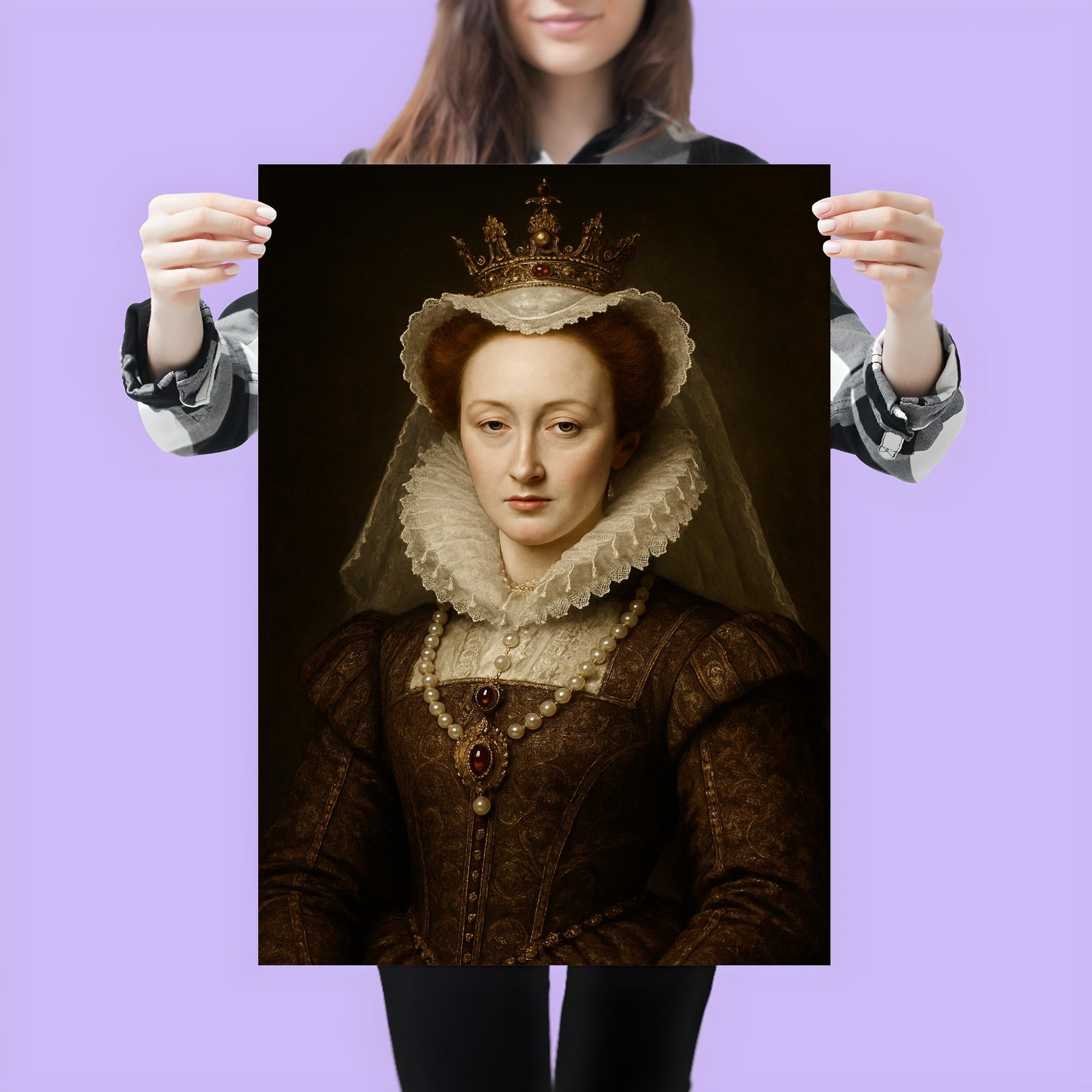 Capture a piece of history with this striking portrait of Mary Queen of Scots. Elegantly rendered, the poster brings to life the regal presence and timeless intrigue of one of Scotland’s most iconic figures. Perfect for adding a touch of royal sophistication to any space, this artwork invites you to reflect on the legacy of a queen whose story continues to fascinate through the ages.