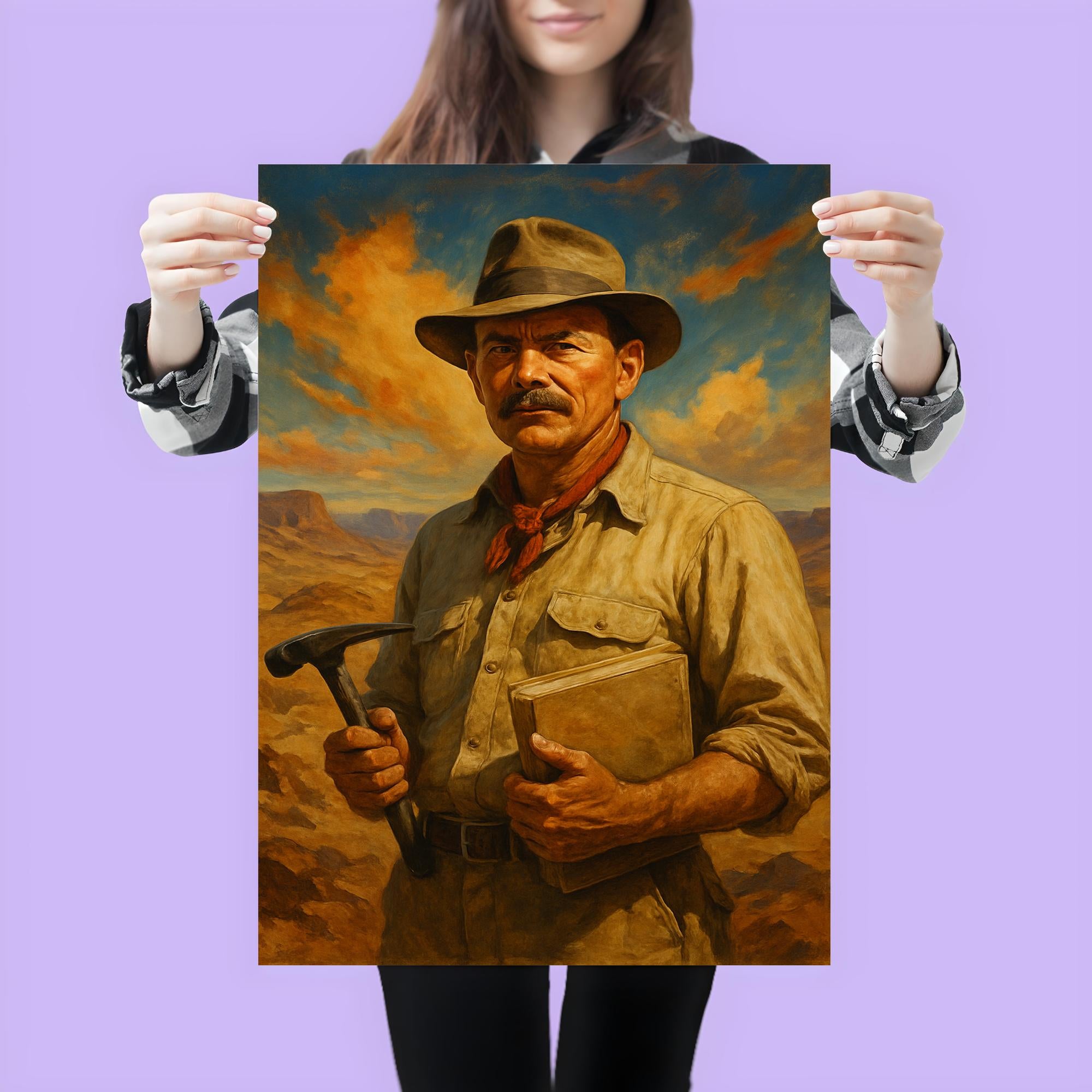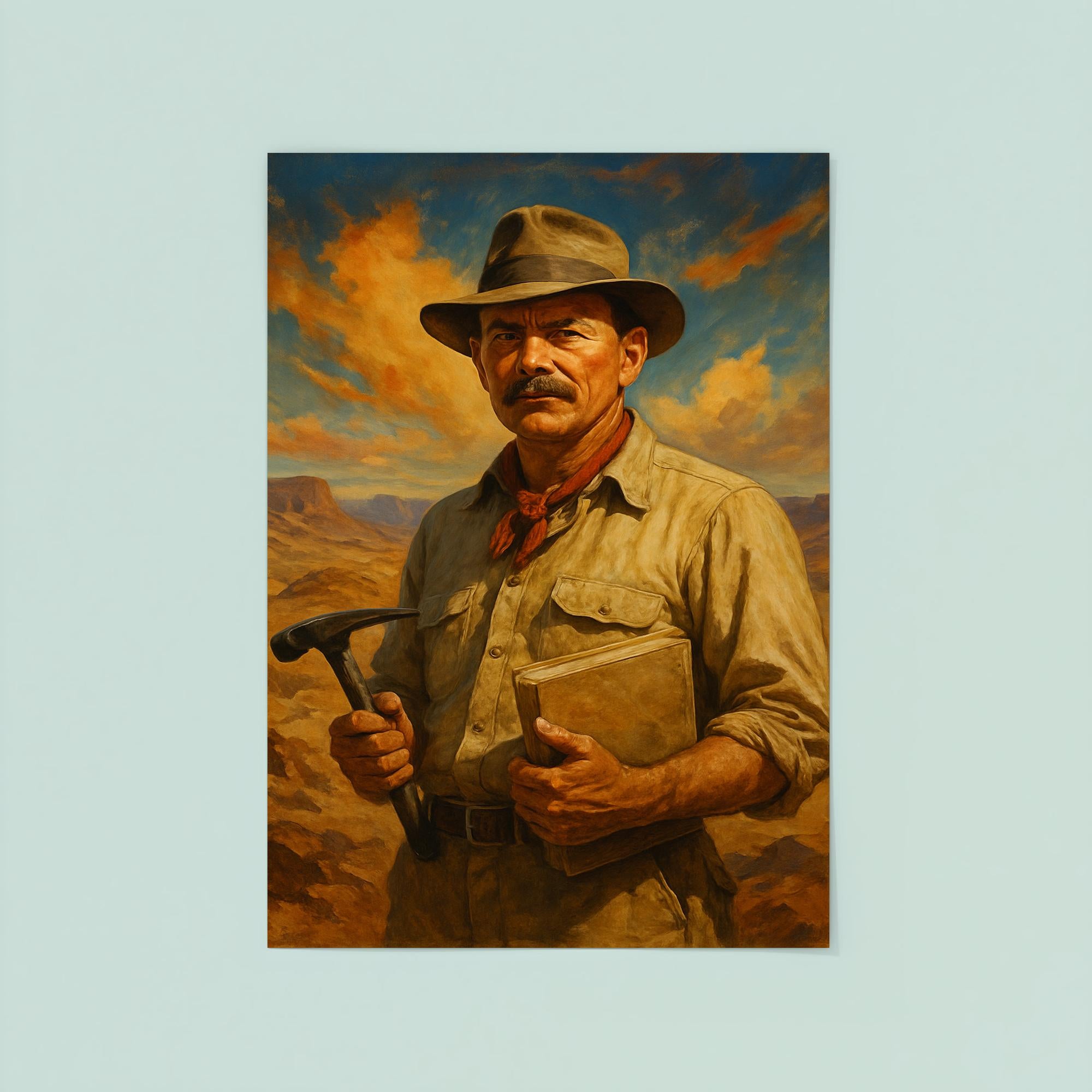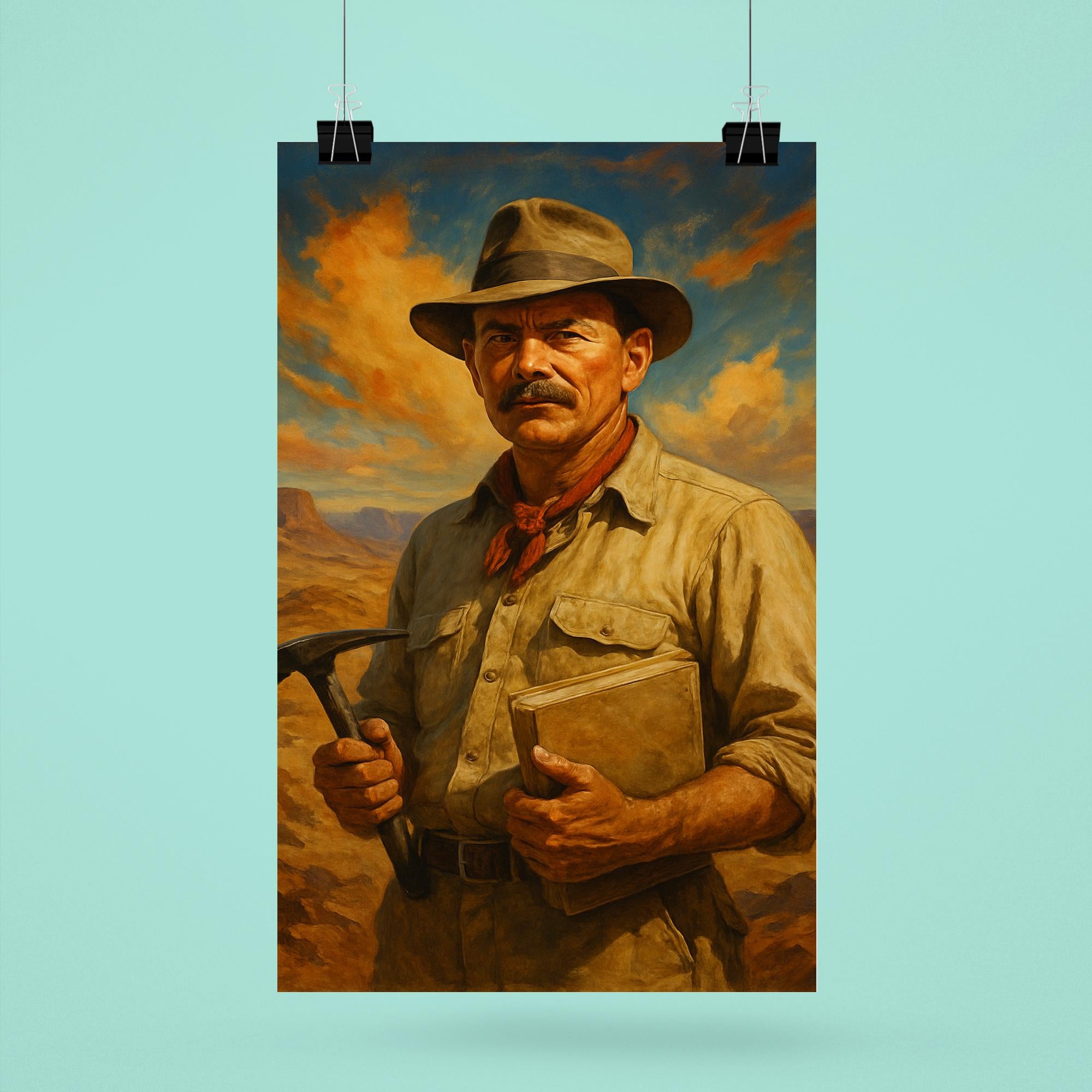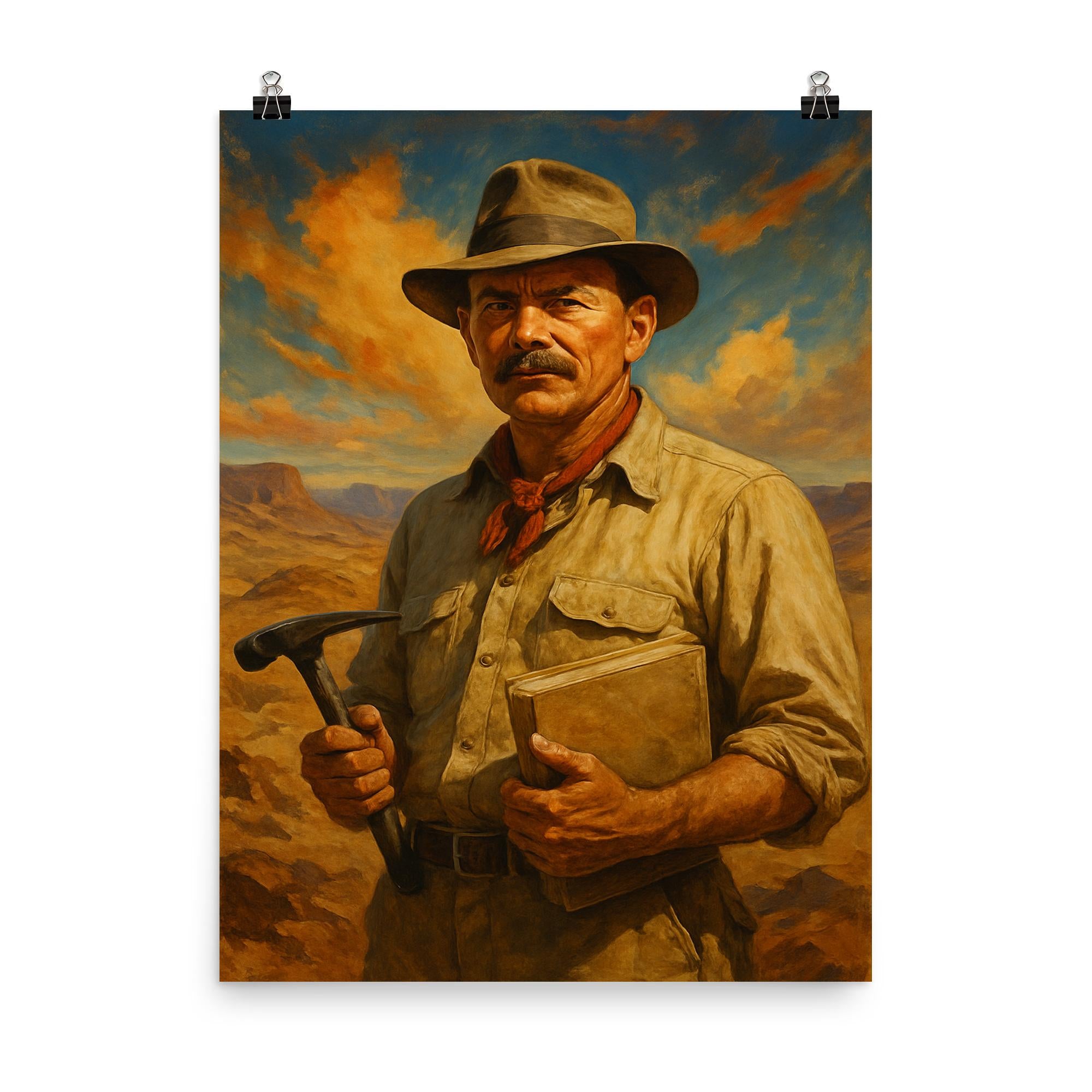 Celebrate the legacy of Max Steineke with this striking poster, capturing the spirit of one of the most influential figures in geological exploration. Perfect for enthusiasts and history lovers alike, this piece brings a timeless tribute to your space, inspiring curiosity and admiration for pioneering discovery.
