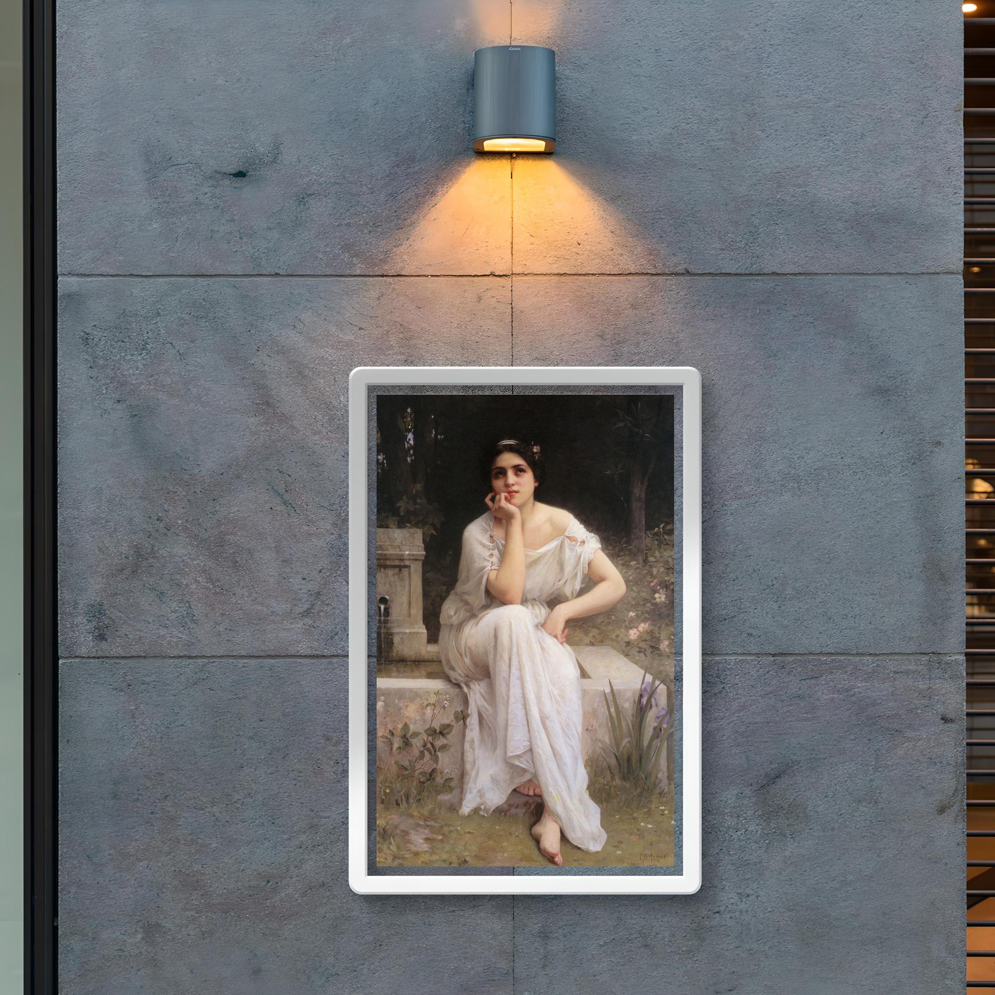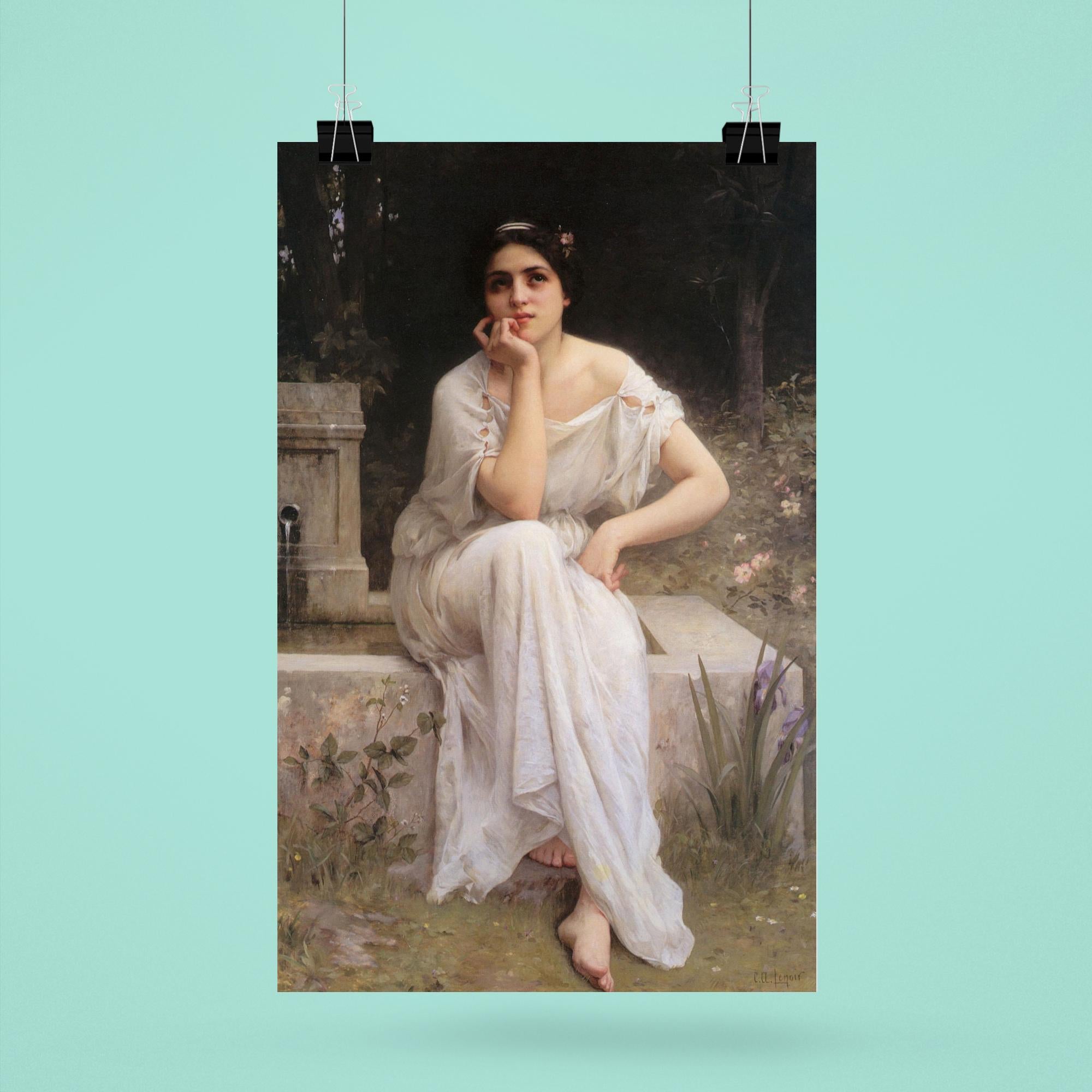 Immerse yourself in timeless tranquility with this exquisite 1899 poster of *Meditation* by Charles Amable Lenoir. This beautifully crafted art piece captures a serene moment of introspective calm, inviting you to pause and reflect amidst the bustle of daily life. Perfect for adding a touch of classic elegance and contemplative grace to any space.