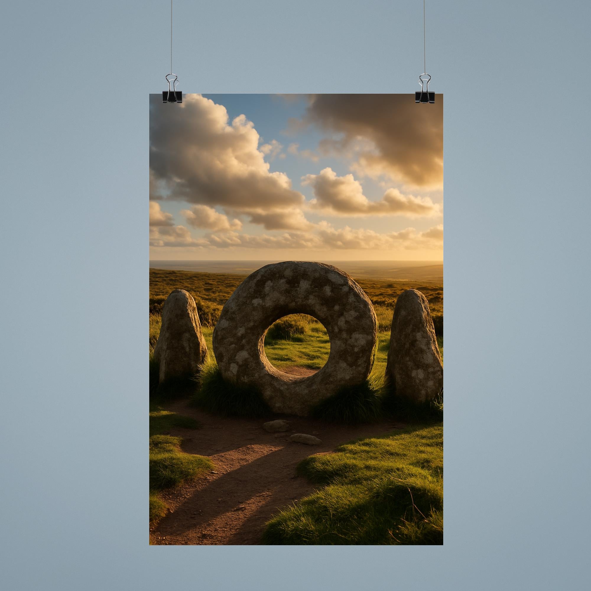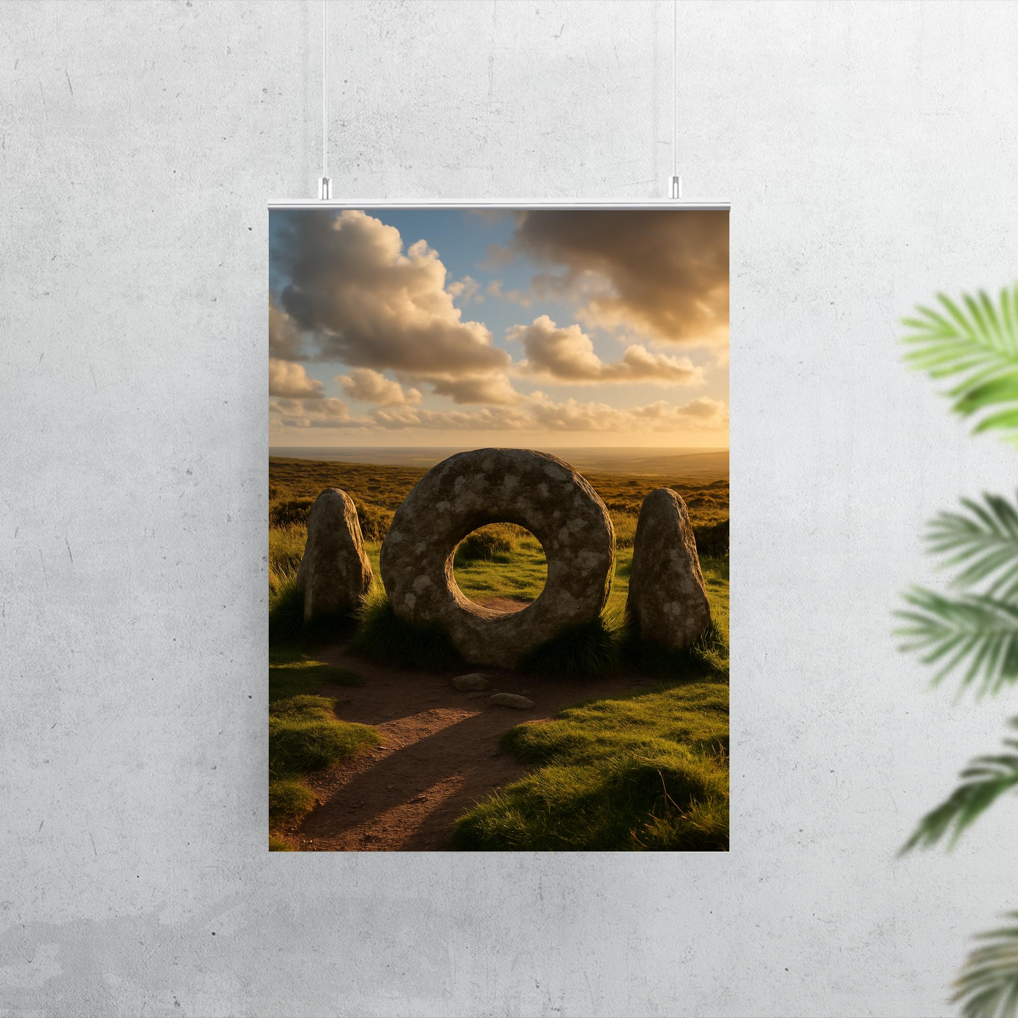 Celebrate the rugged beauty of Cornwall with this striking Men an Tol poster. Capturing the timeless mystique of these ancient standing stones, it brings a touch of history and natural grandeur to any space. Perfect for those who appreciate unique landscapes and the enduring spirit of England’s heritage.