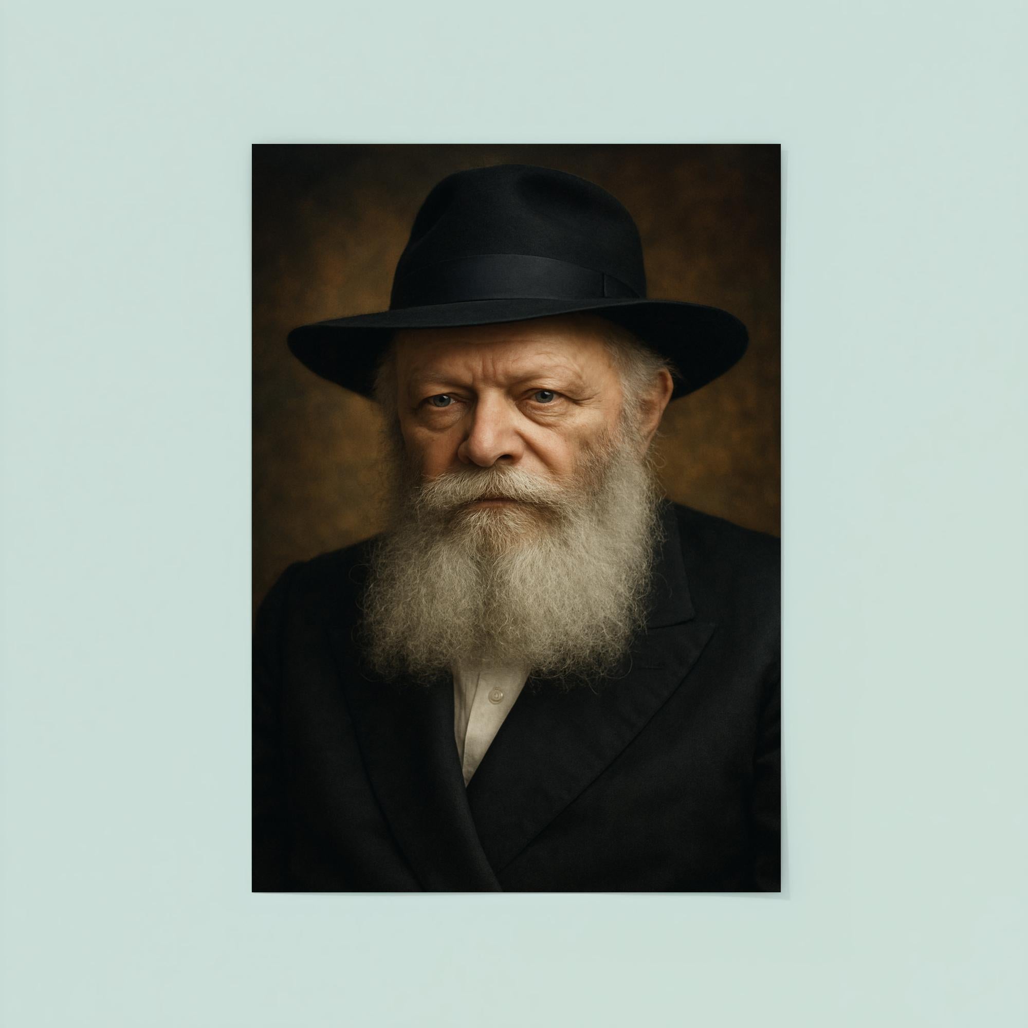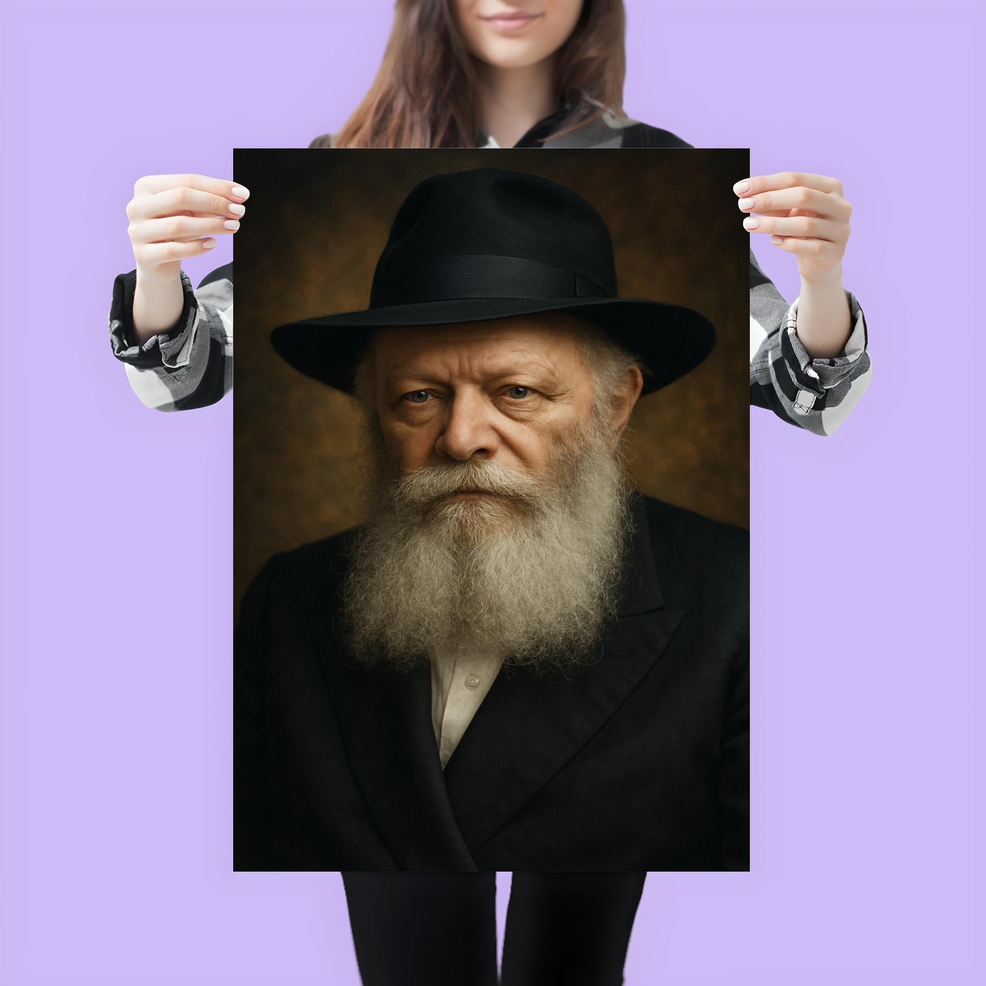 Honor the legacy of Menachem Mendel Schneerson with this striking portrait poster. Perfect for inspiring reflection and admiration, this timeless piece captures the profound presence of one of the most influential spiritual leaders of the 20th century. Elevate your space with a powerful reminder of vision, wisdom, and enduring faith.