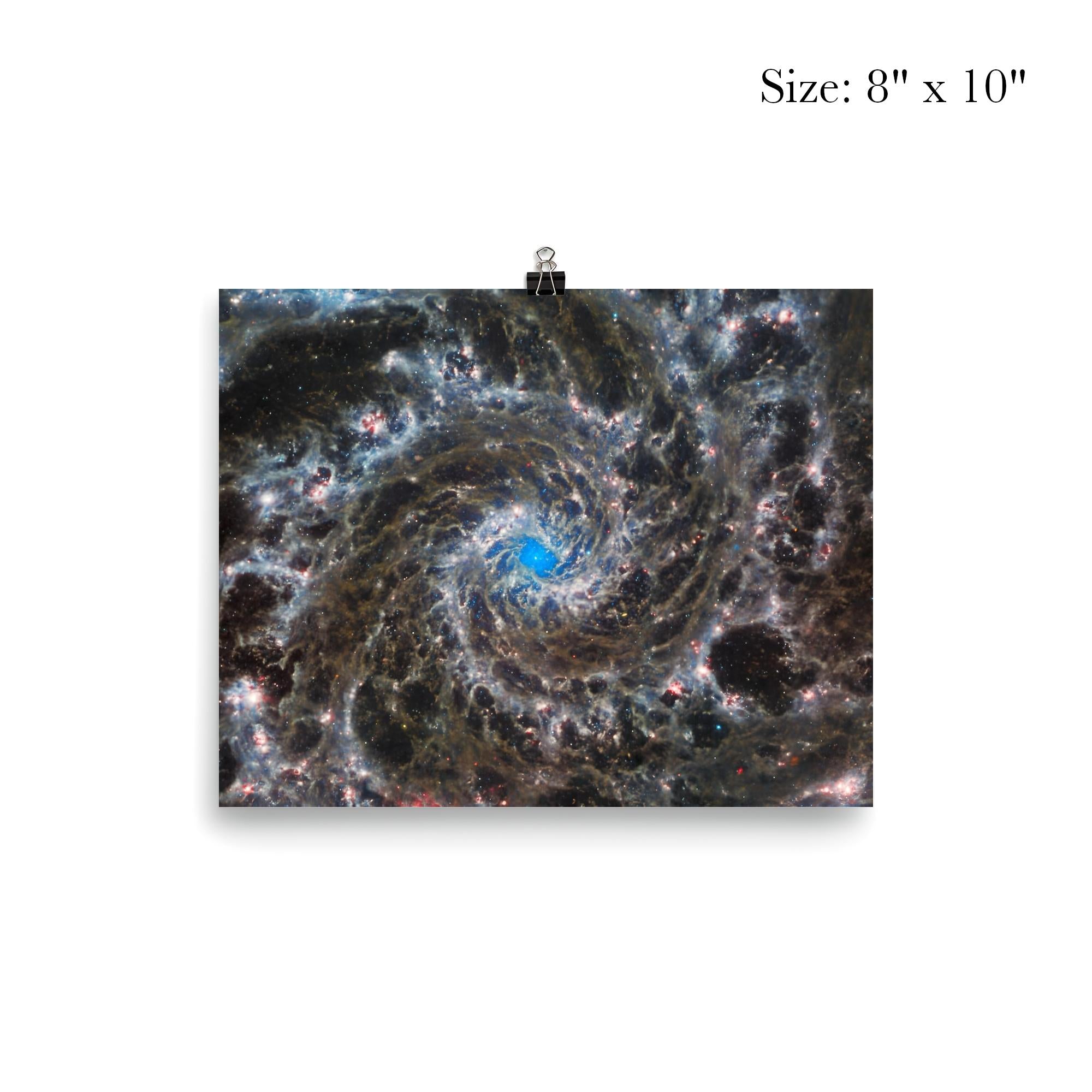 Bring the cosmos into your space with this stunning poster of Messier 74, captured by the James Webb Space Telescope. This extraordinary image reveals the intricate spiral arms of the galaxy in breathtaking clarity, inviting you to explore the vast beauty of the universe from the comfort of your home. Perfect for astronomy lovers and dreamers alike, it’s a timeless celebration of discovery and wonder.