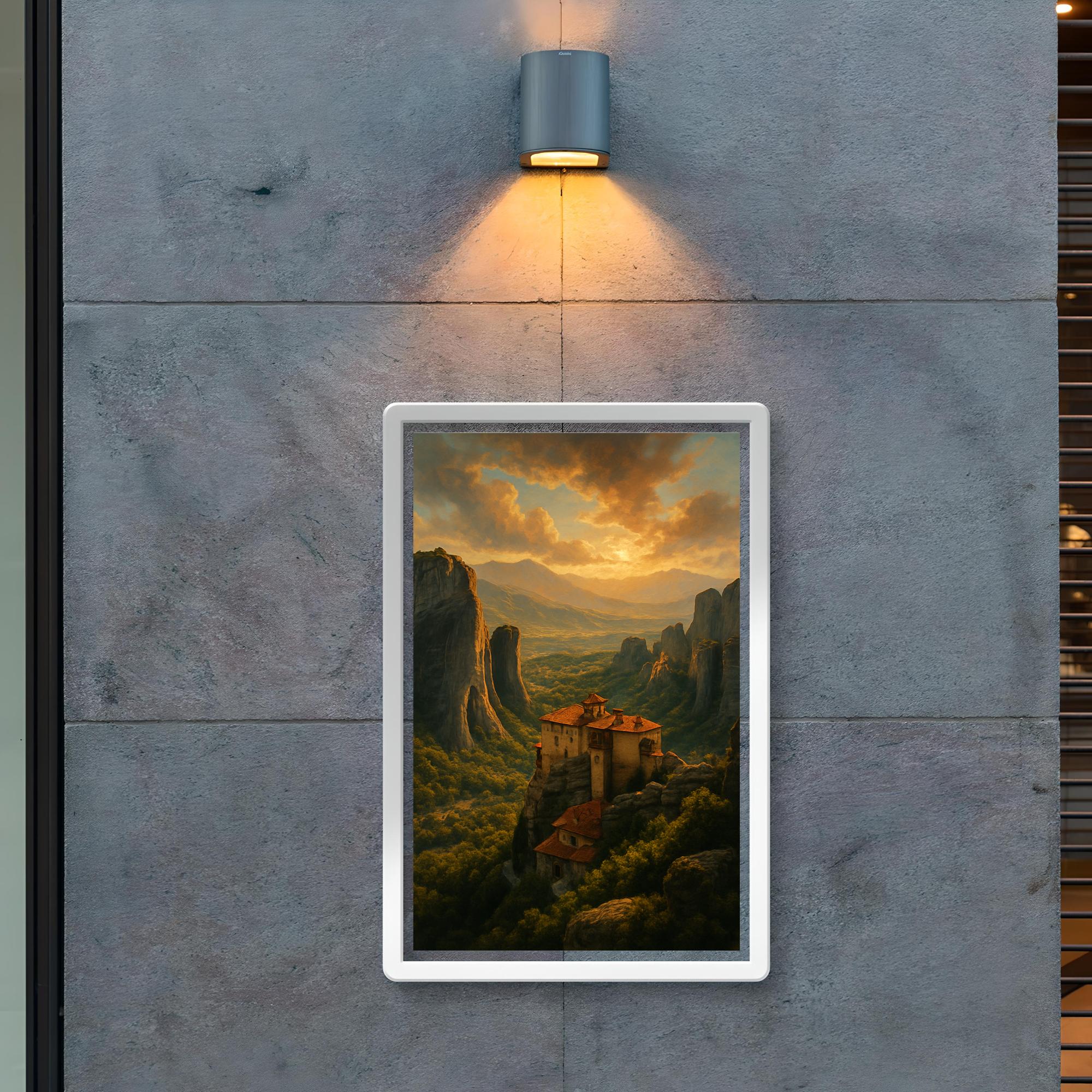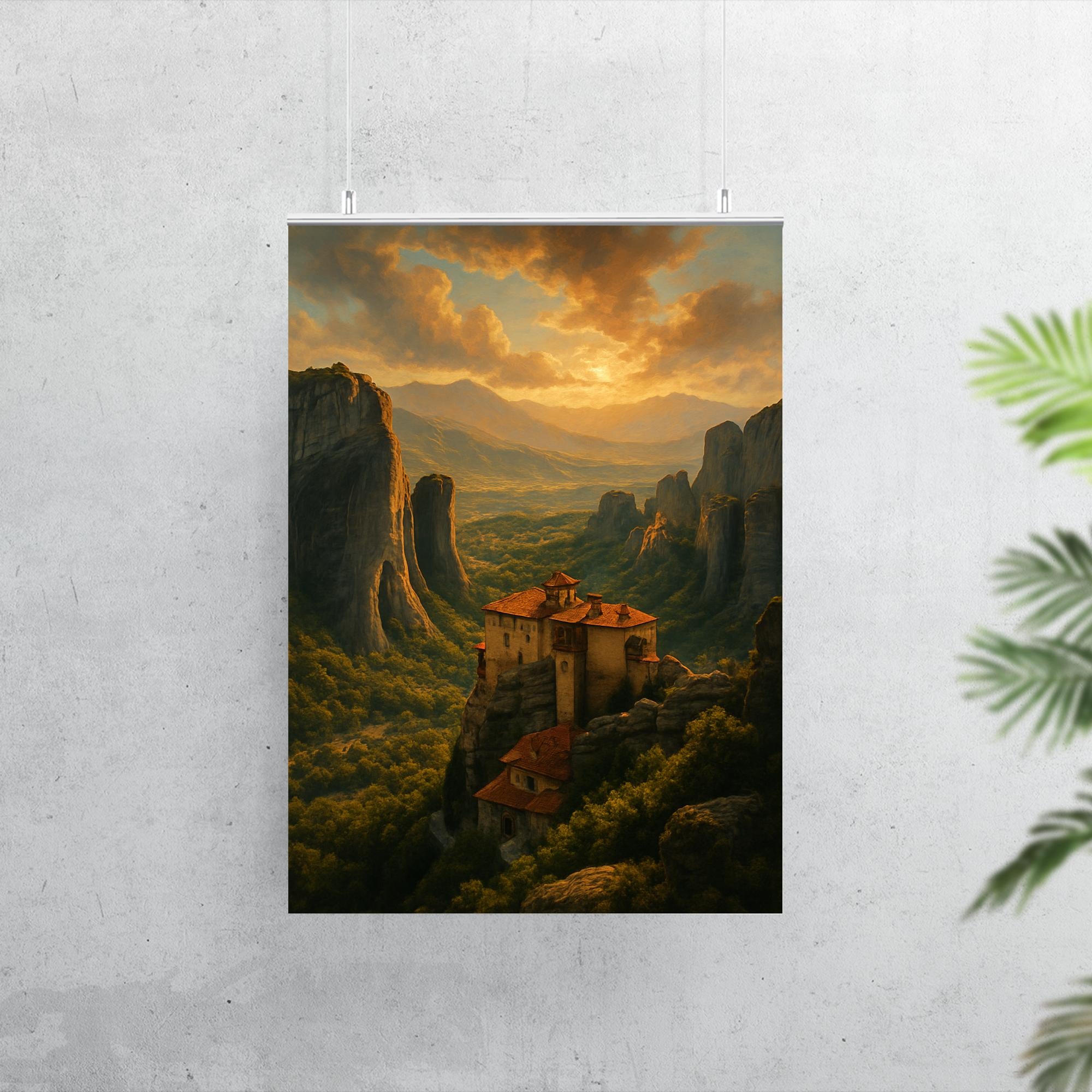 Experience the awe-inspiring beauty of Greece’s Meteora Monasteries with this stunning poster, capturing the serene majesty of these ancient monasteries perched atop towering rock formations. Perfect for adding a touch of history and tranquility to any room, this artwork invites you to explore a world where nature and spirituality intertwine. Let the timeless grandeur of Meteora transform your space into a sanctuary of wonder and peace.