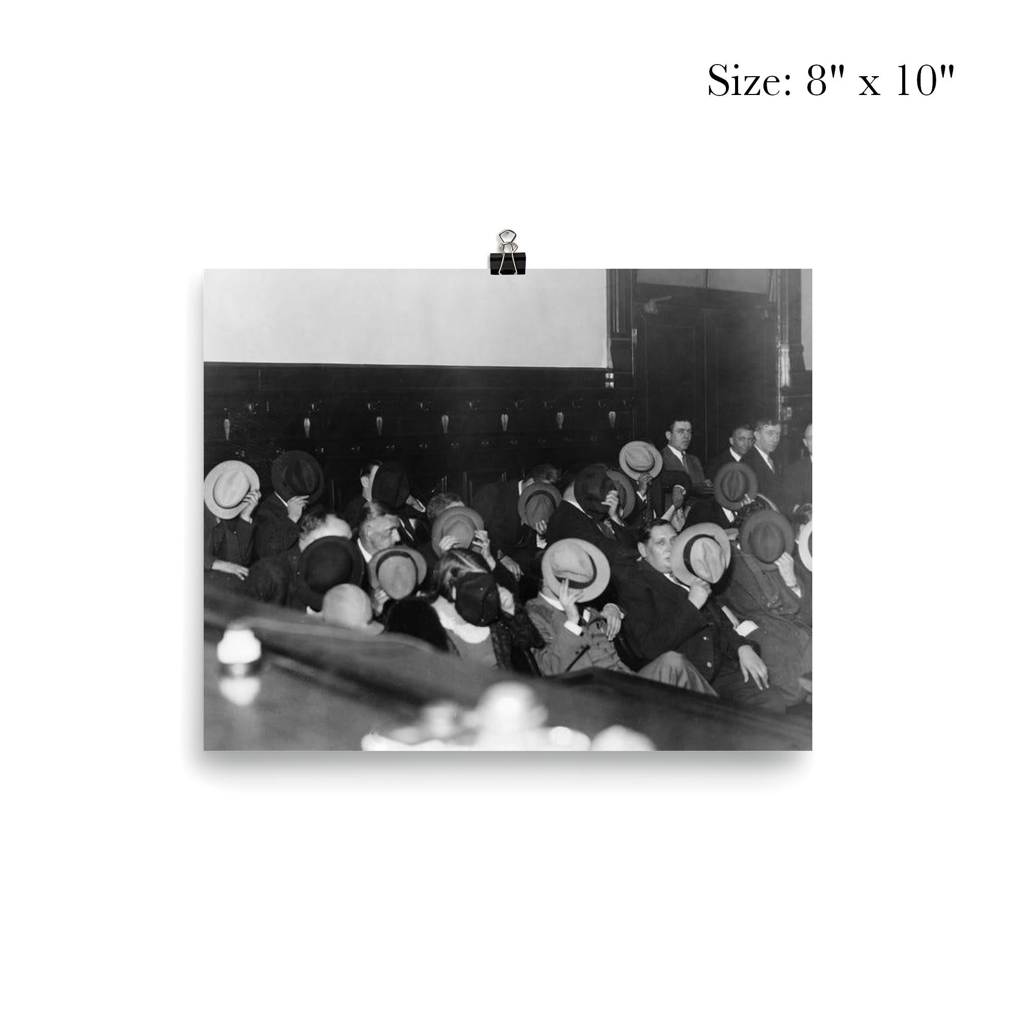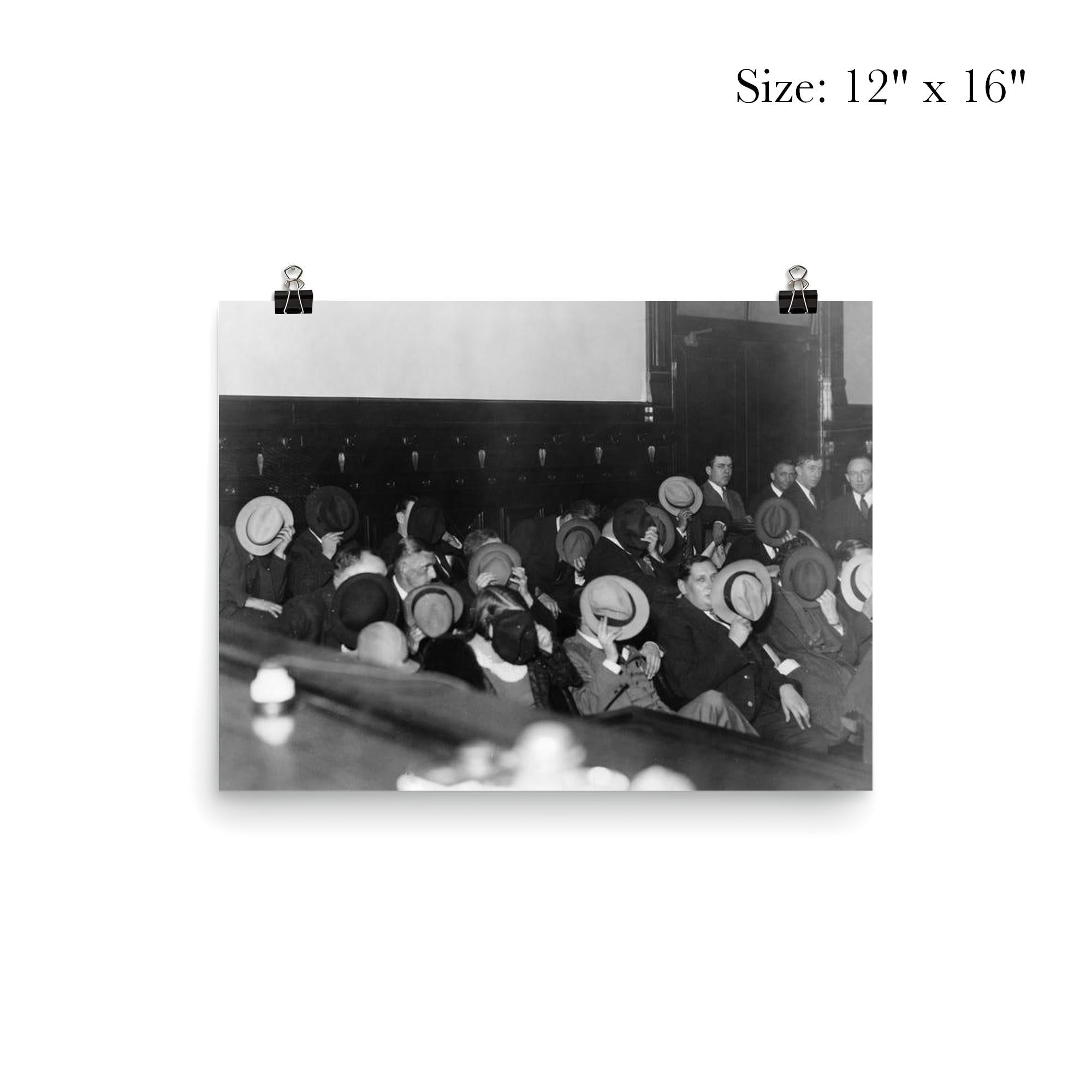 Step back into a moment of raw history with this striking poster capturing Mobsters Hiding Their Faces at Al Capone's 1931 trial. The powerful image reveals the tense atmosphere of an iconic courtroom scene that shaped an era. Perfect for history enthusiasts and vintage crime aficionados alike, this poster invites you to explore the shadowy world behind one of America's most notorious trials.