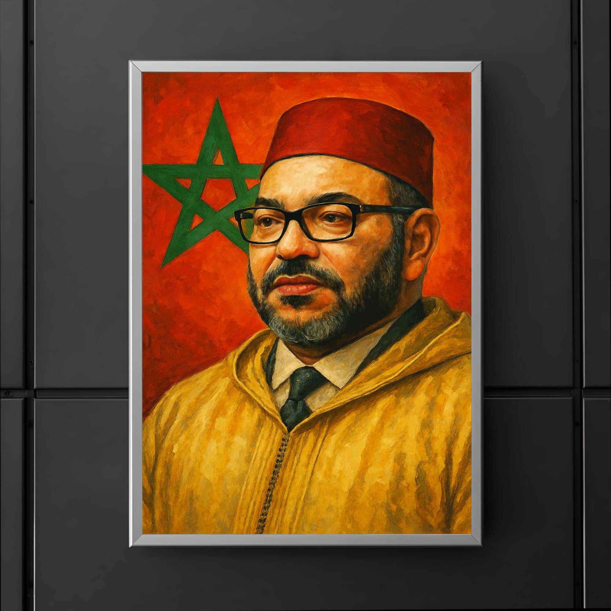 Celebrate the enduring leadership and vision of Mohammed VI of Morocco with this striking poster. Perfect for adding a touch of inspiration and cultural pride to any space, it honors a figure who continues to shape Morocco’s future with wisdom and dedication. Whether for your home, office, or as a meaningful gift, this poster serves as a timeless tribute to a remarkable leader.
