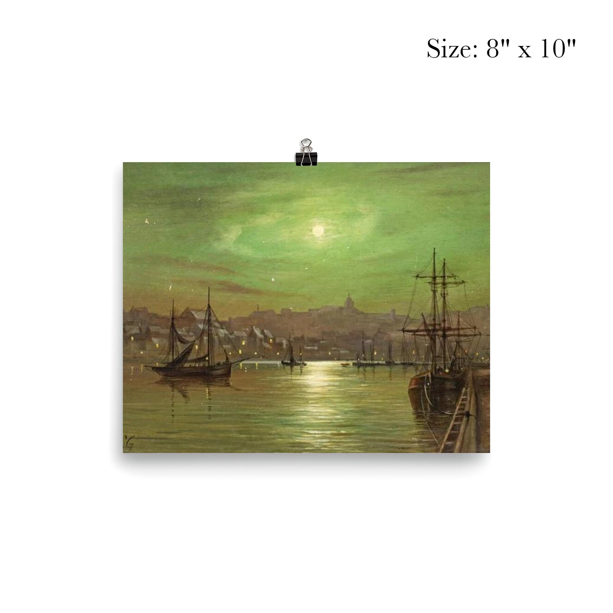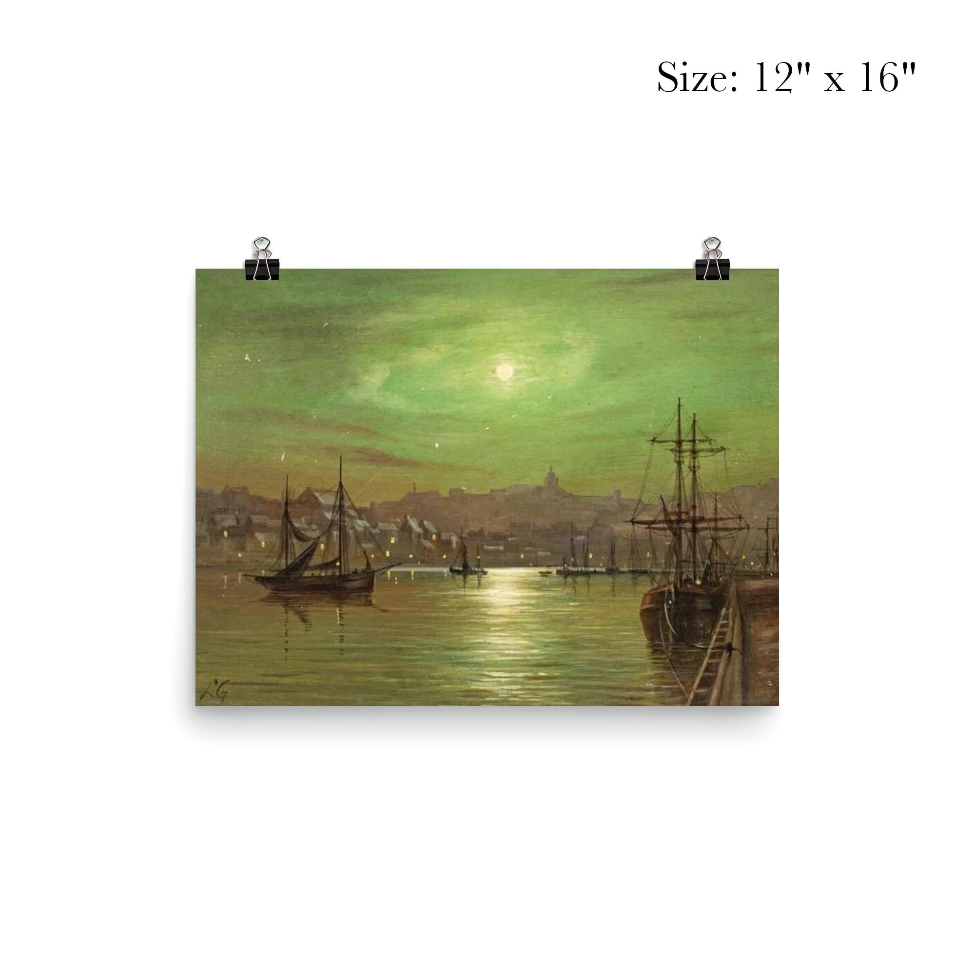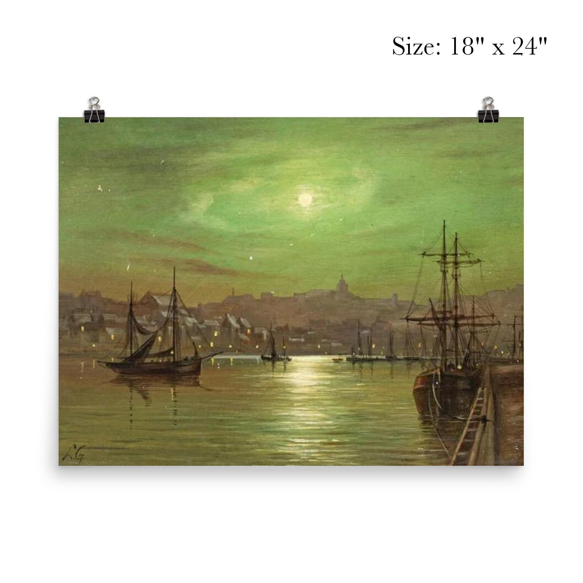 Transform your space with the serene beauty of *Moonlit Whitby Harbour* by Louis Hubbard Grimshaw. This captivating poster invites you to experience the tranquil charm of Whitby under the gentle glow of moonlight, capturing a timeless moment that soothes and inspires. Perfect for art lovers and dreamers alike, it brings a touch of peaceful elegance to any room.