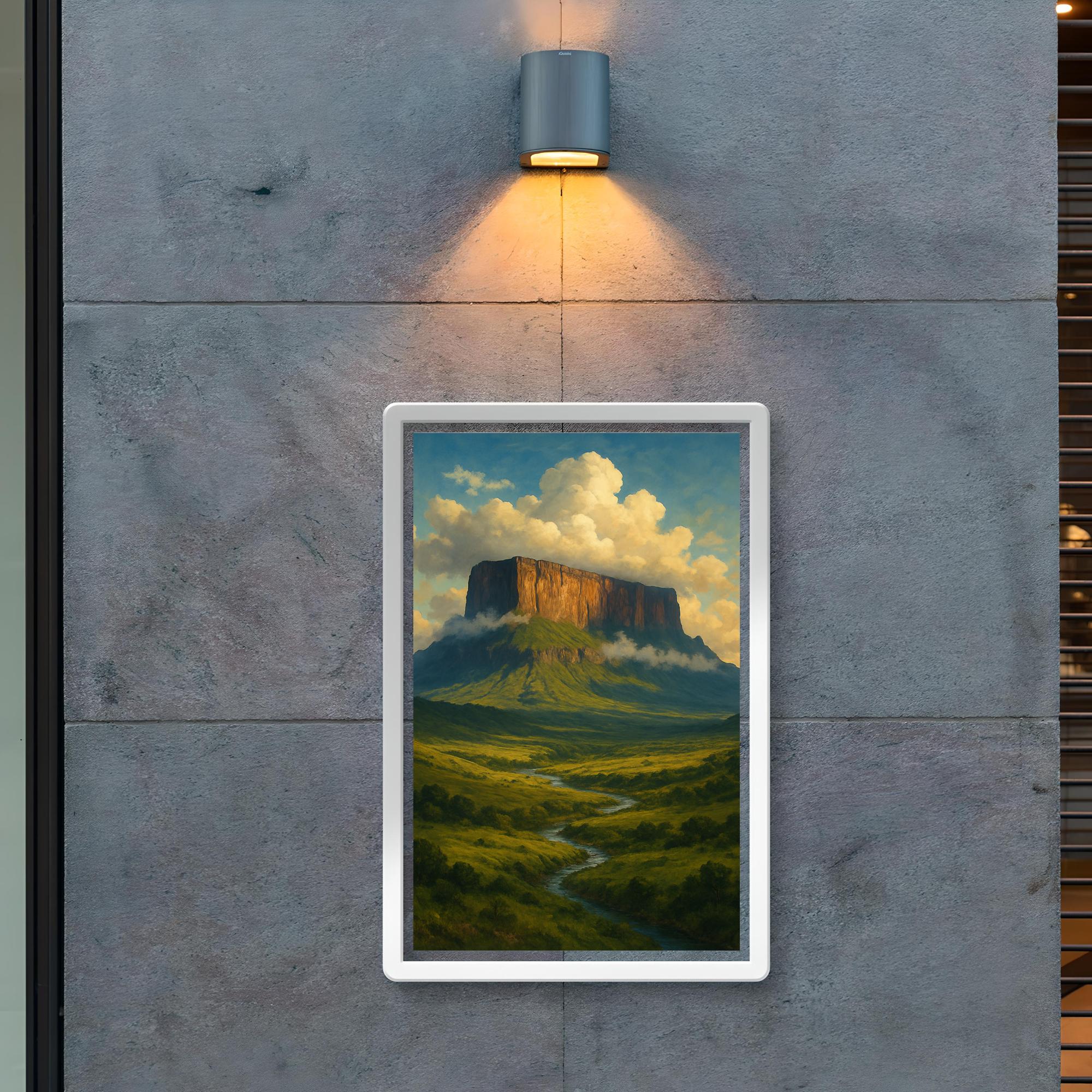 Capture the awe-inspiring beauty of one of South America’s most legendary natural wonders with this stunning poster of Mount Roraima. Showcasing the majestic tabletop mountain that graces the borders of Venezuela, Brazil, and Guyana, this piece brings the mystery and grandeur of this unique landscape into your space. Perfect for adventurers and nature lovers alike, it’s a timeless tribute to a place where nature’s raw power and serene beauty meet.