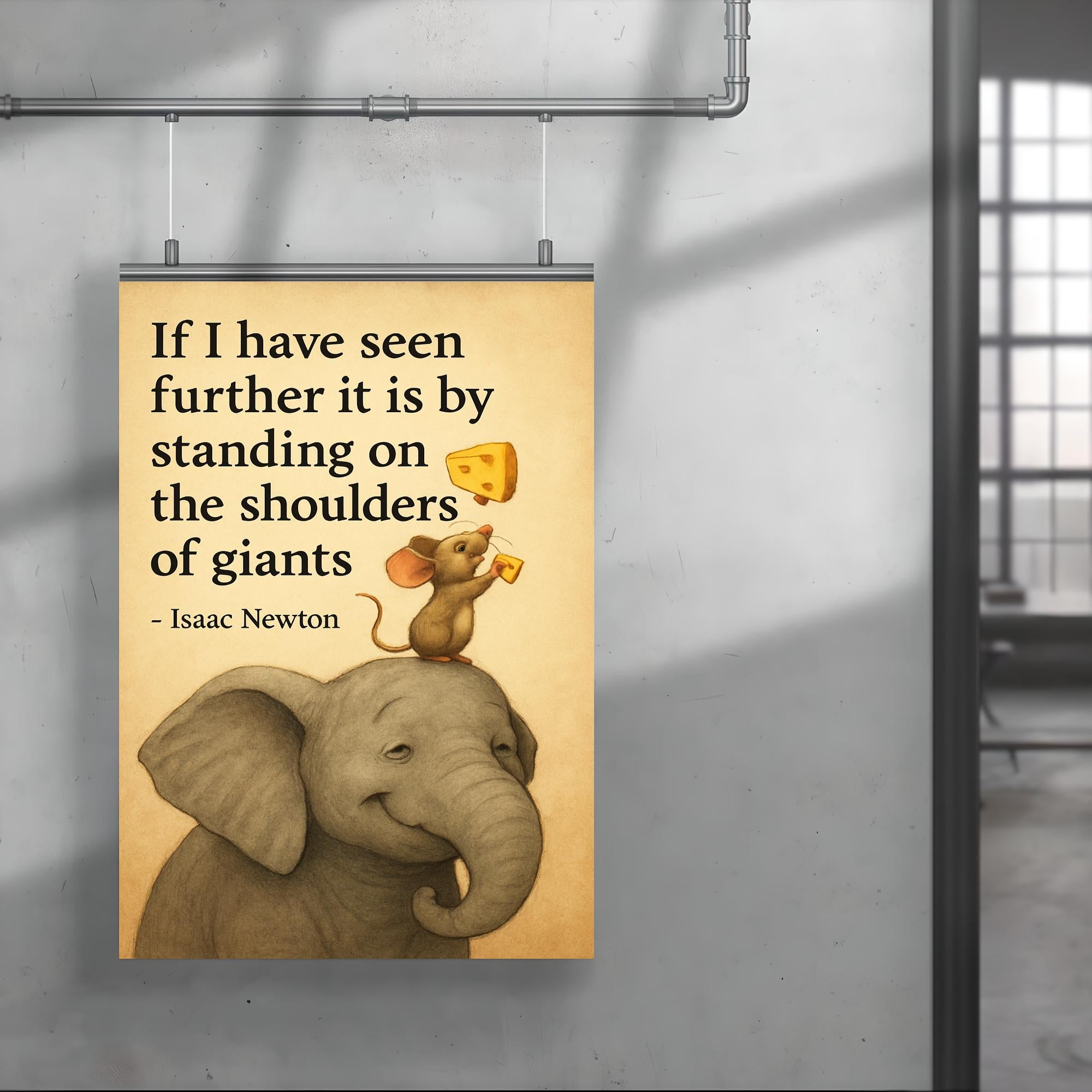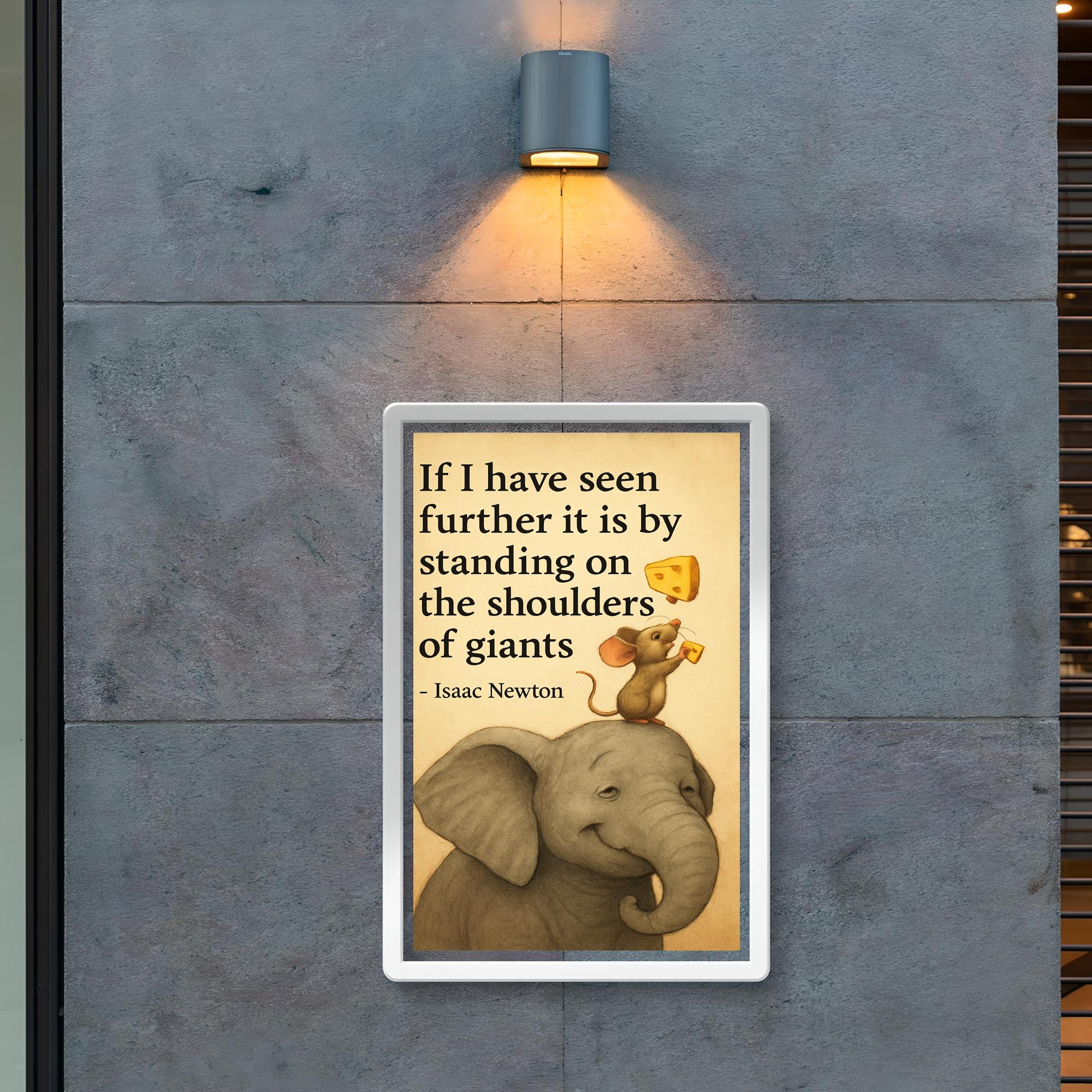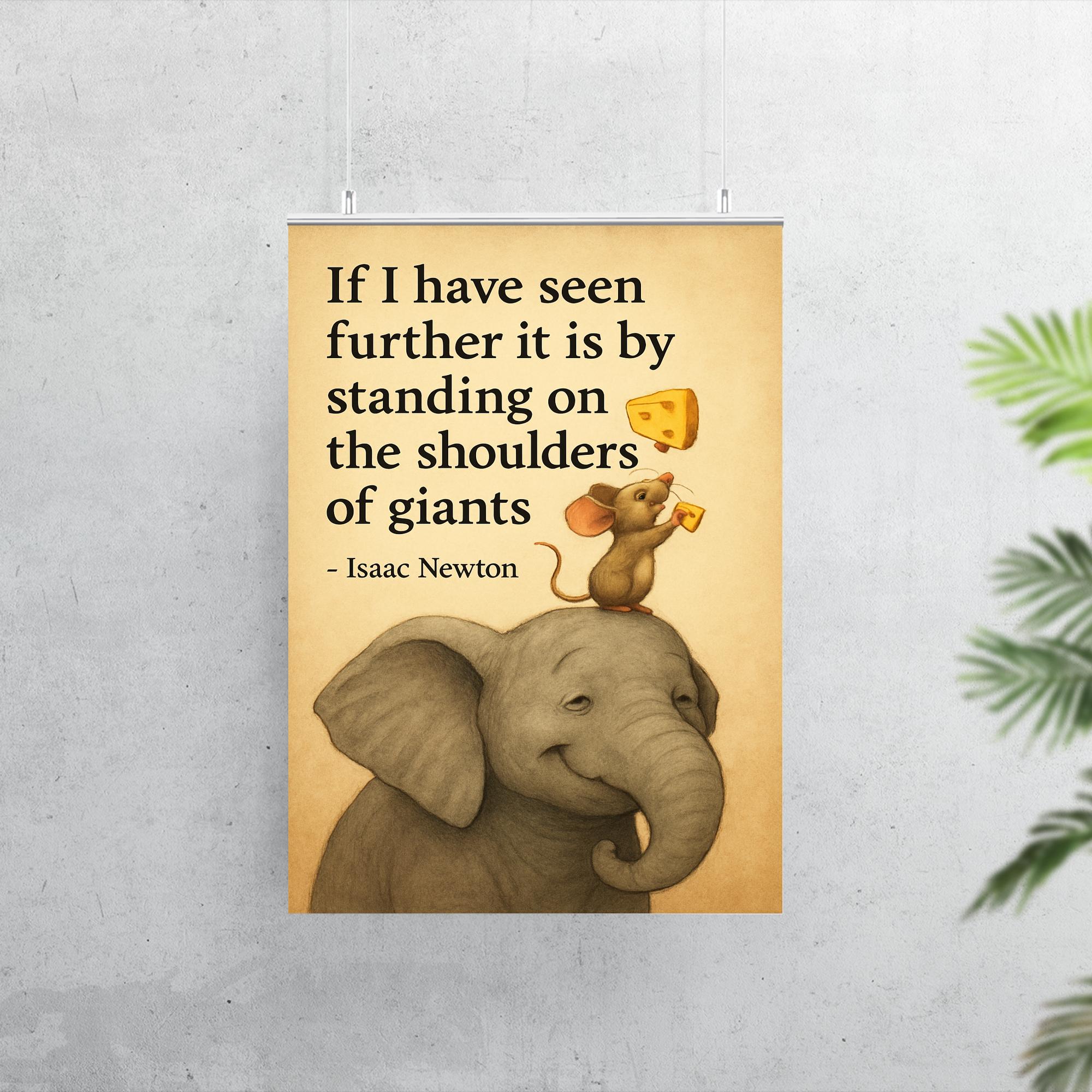 Celebrate the brilliance of discovery with this inspiring poster featuring Newton’s timeless quote about standing on the shoulders of giants. Perfect for thinkers, dreamers, and innovators, it’s a powerful reminder that every breakthrough builds on the wisdom of those who came before. Elevate your space and motivation with this elegant tribute to curiosity and progress.