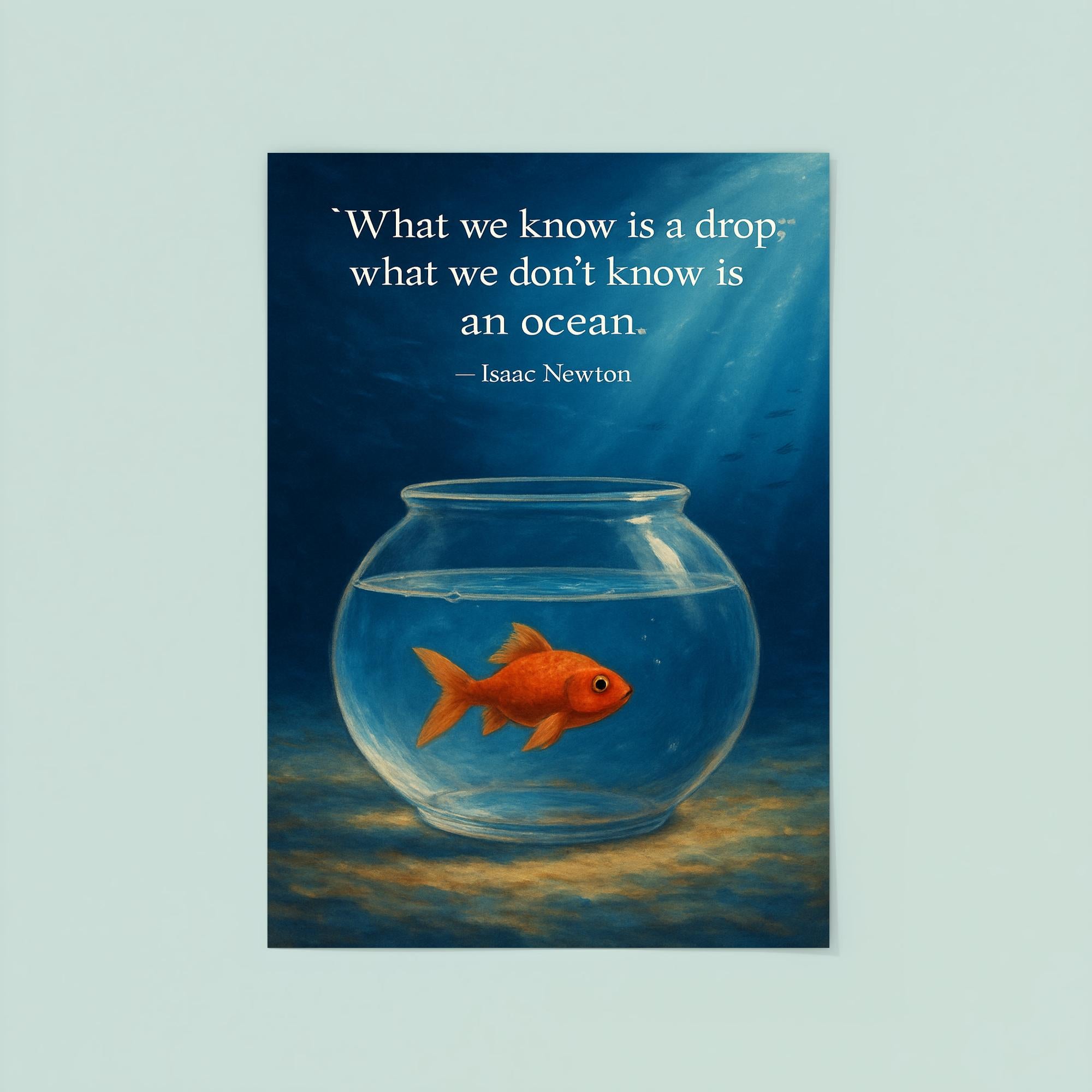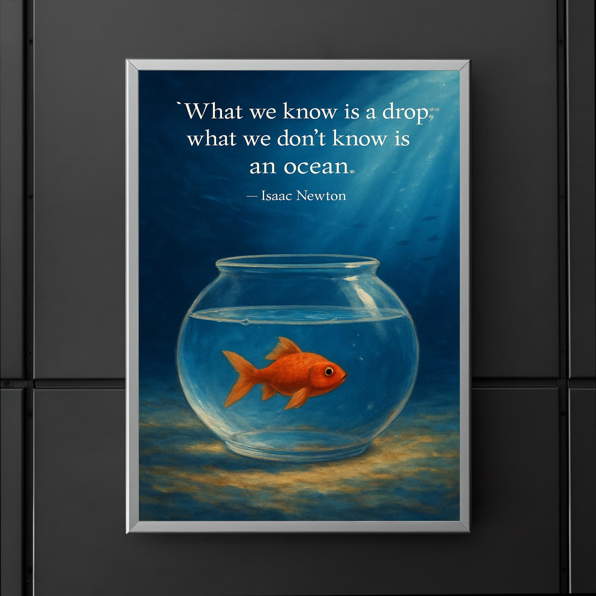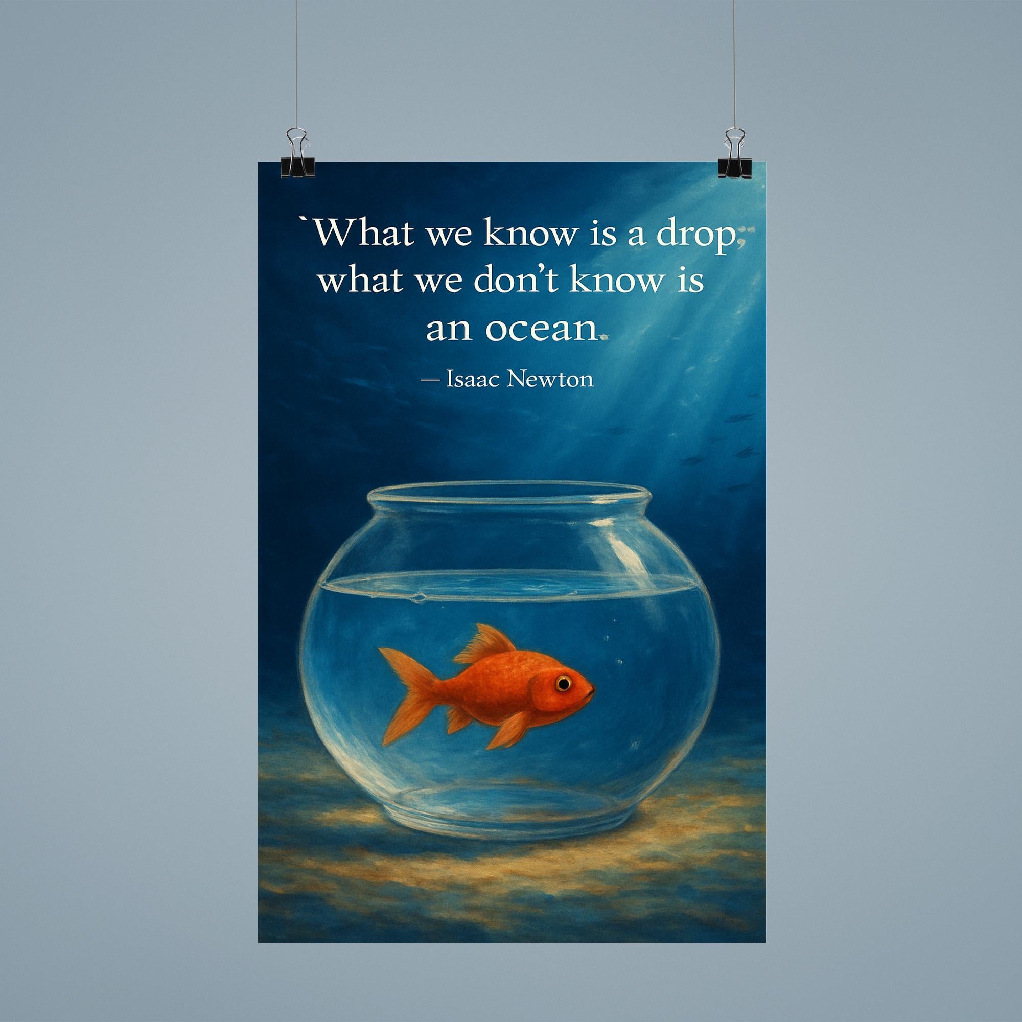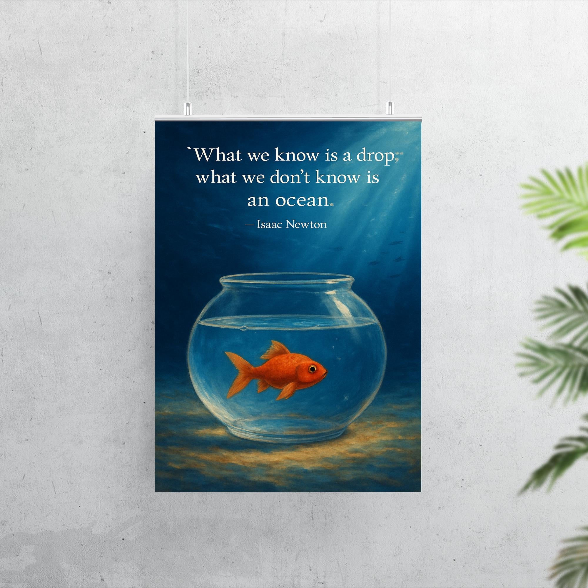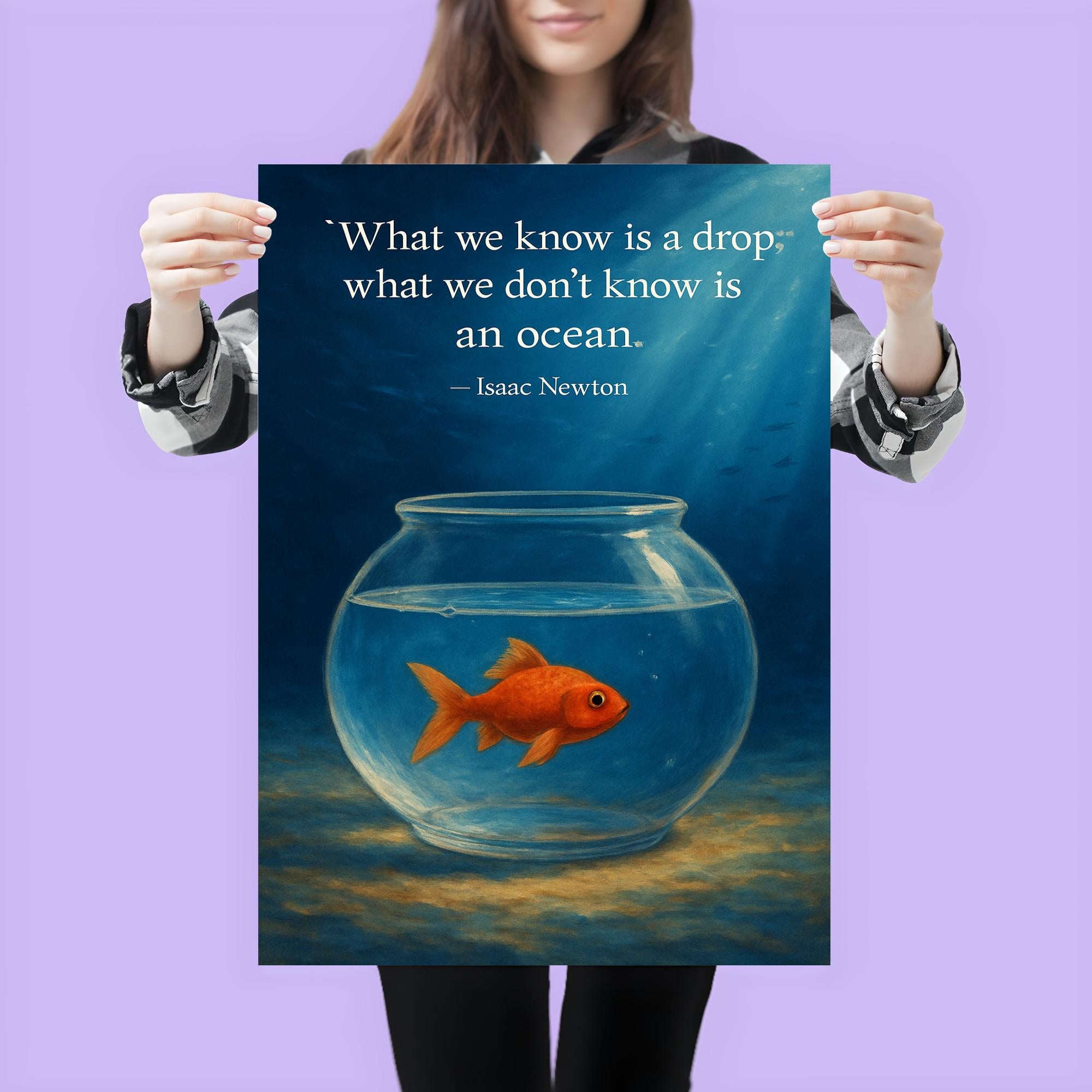 Embrace the boundless spirit of curiosity with this inspiring poster featuring Newton’s profound words: “What we know is a drop; what we don’t know is an ocean.” Perfect for sparking imagination and passion, it’s a daily reminder that the pursuit of knowledge is infinite and every discovery is just the beginning of a greater journey. Elevate your space with this timeless message that encourages bold thinking and endless exploration.