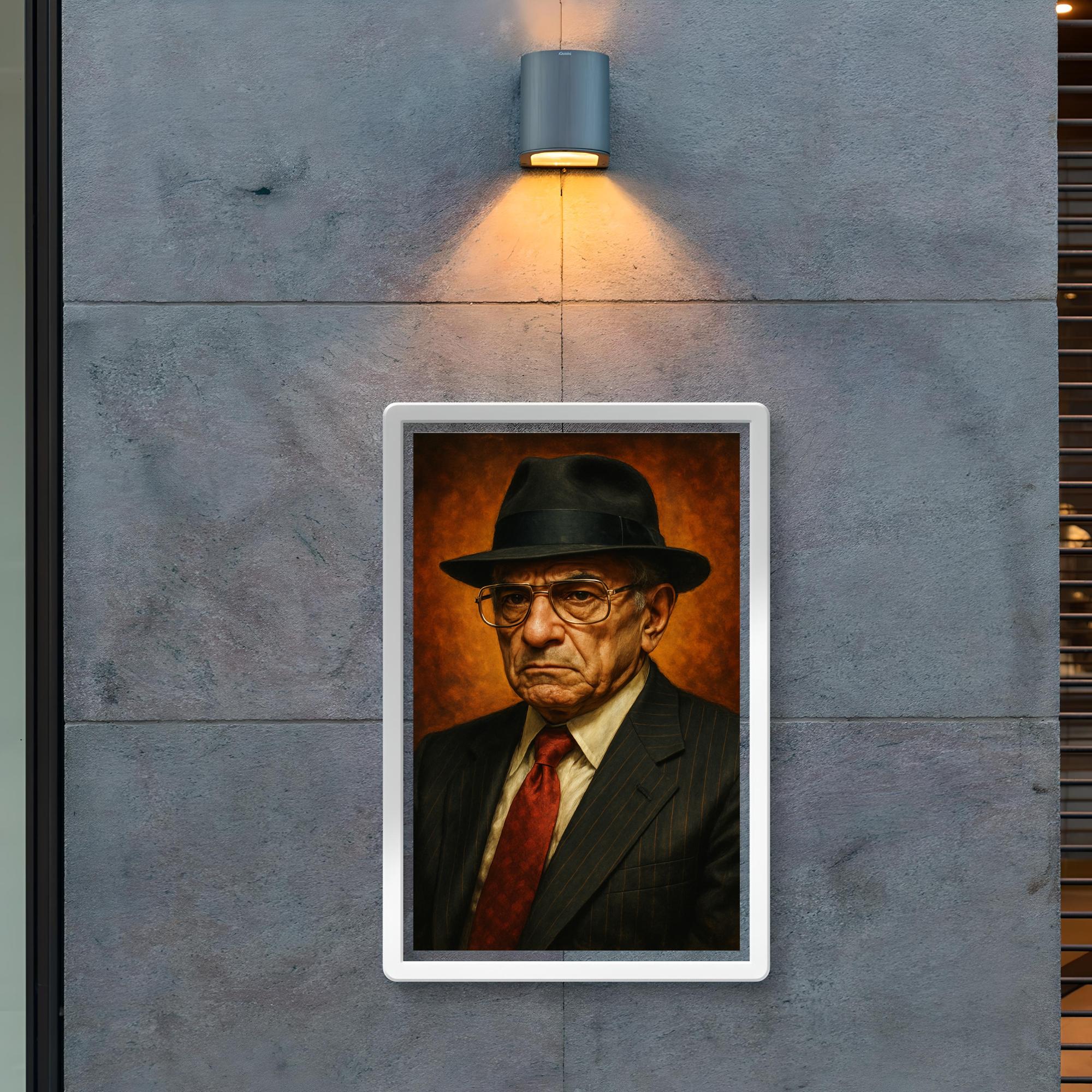 Capture a bold piece of history with this striking Nicodemo Scarfo poster, a must-have for enthusiasts of legendary figures. Its powerful presence commands attention, making it the perfect statement piece for any space seeking an edge of intrigue and authenticity. Elevate your collection with a tribute that speaks volumes without saying a word.
