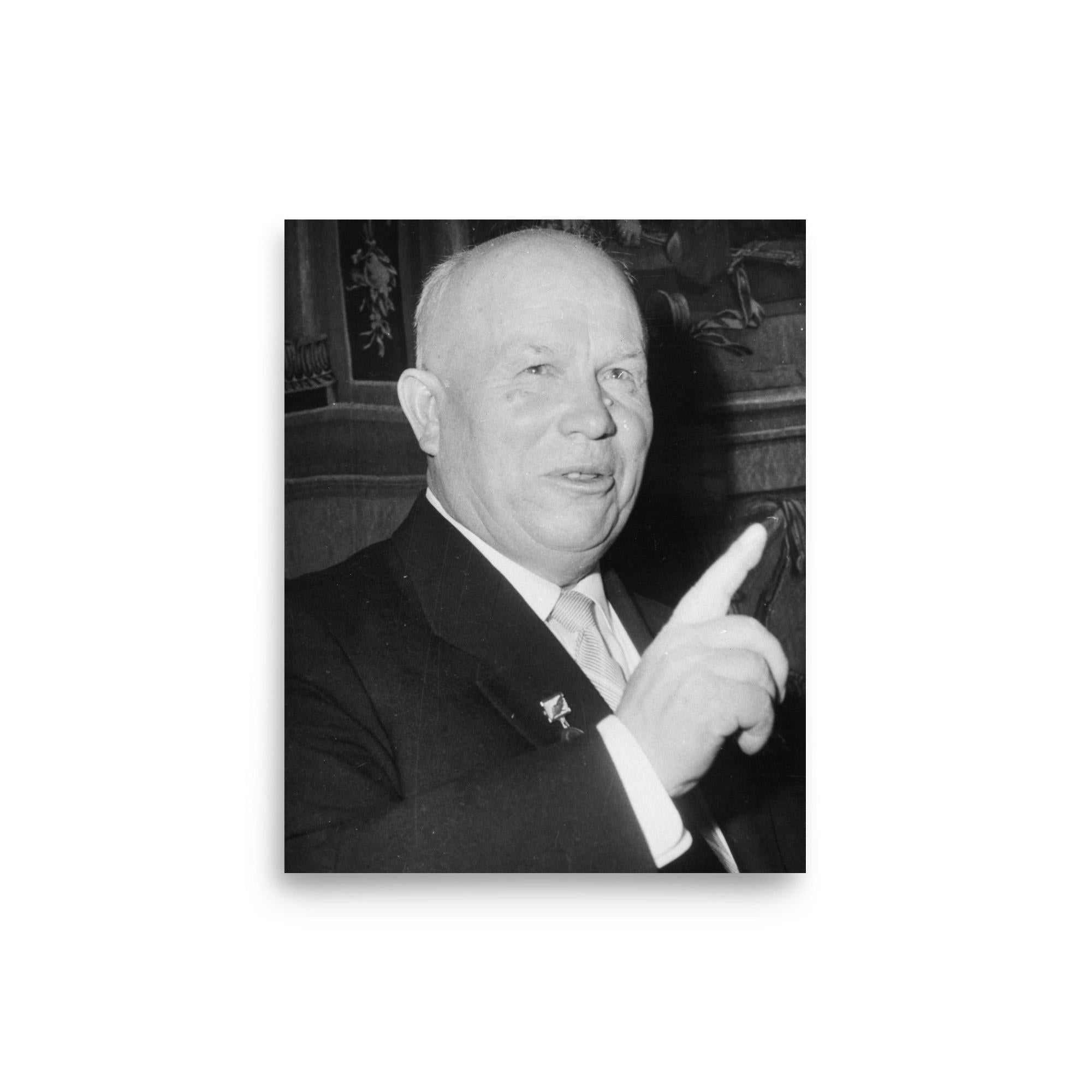 Introduce a piece of history into your space with this captivating poster of Nikita Khrushchev, a prominent figure who helped shape global events during the 20th century. Whether you are a history enthusiast or simply appreciate influential leaders, this poster is a timeless reminder of power, perseverance, and political intrigue, perfect for sparking conversations in any room.