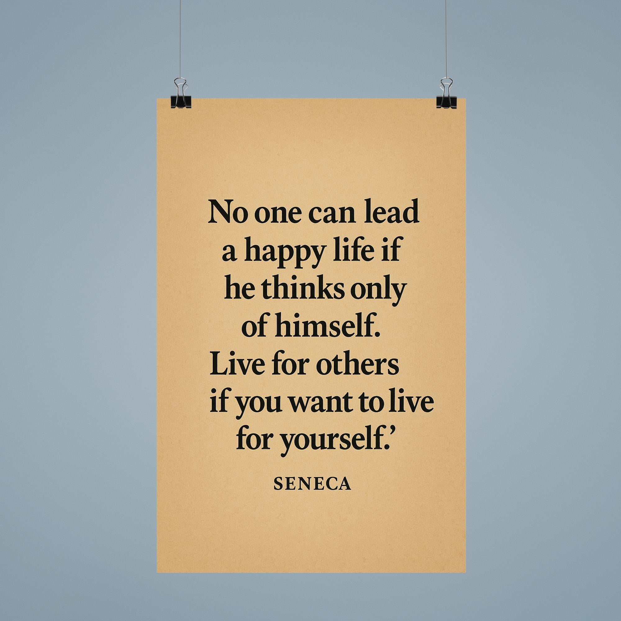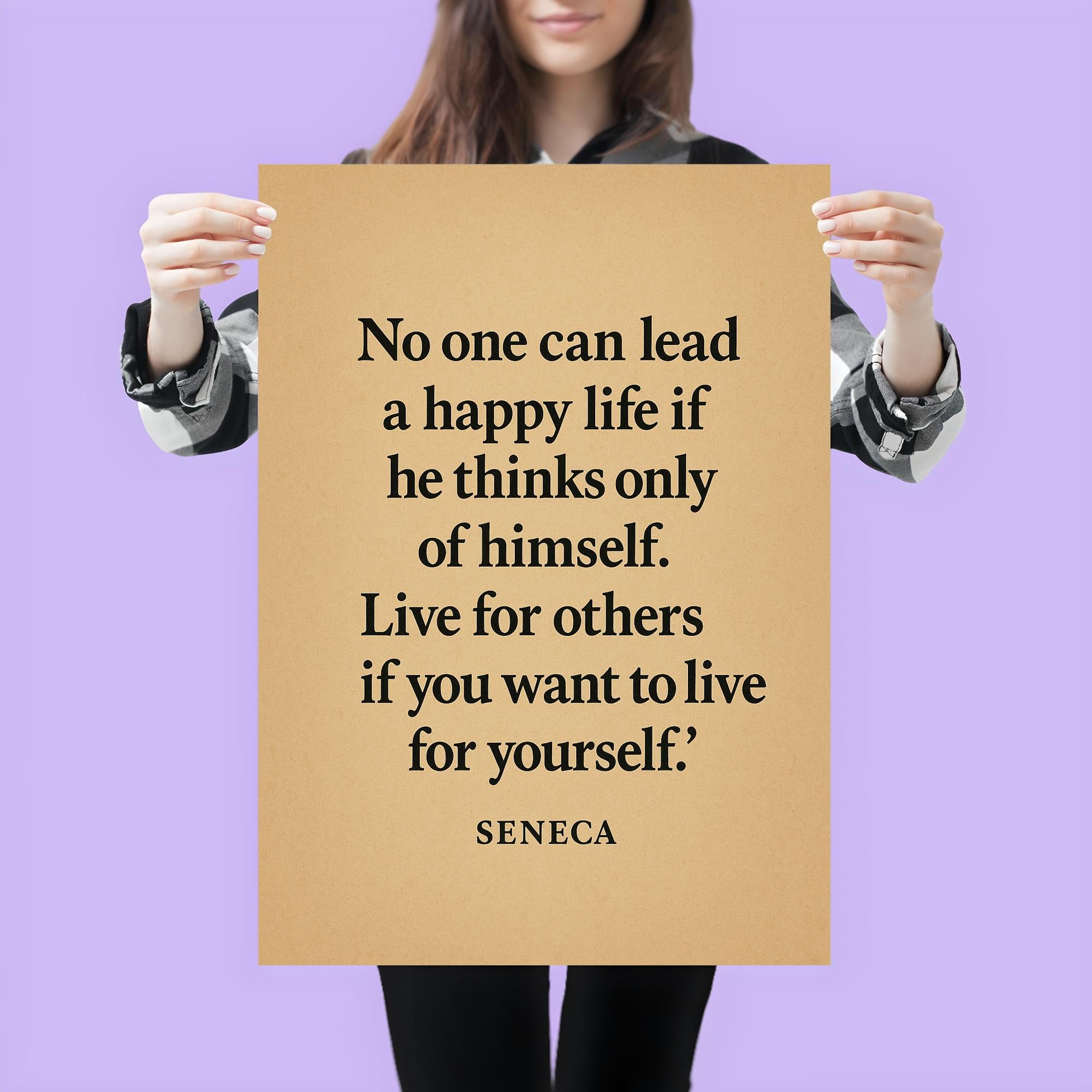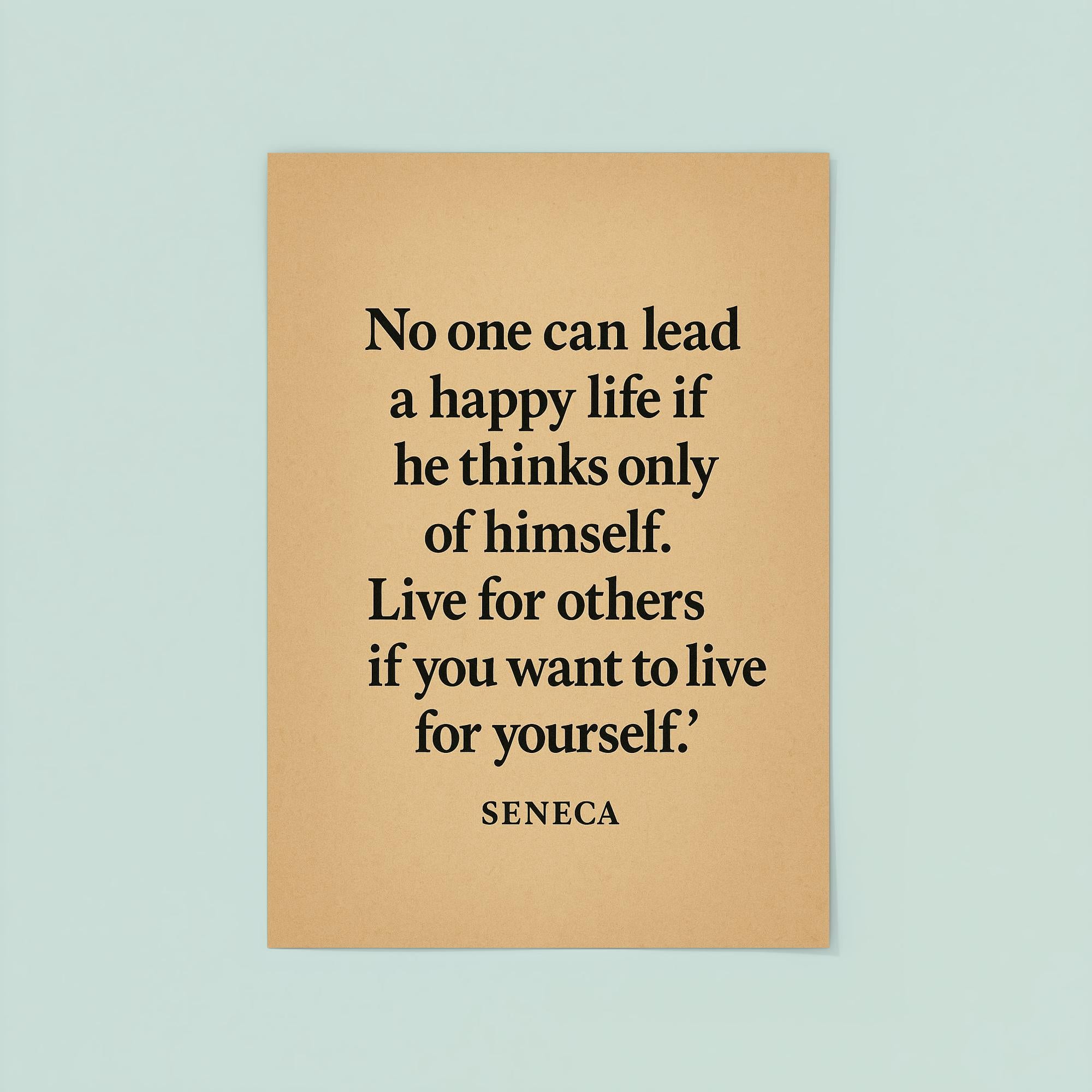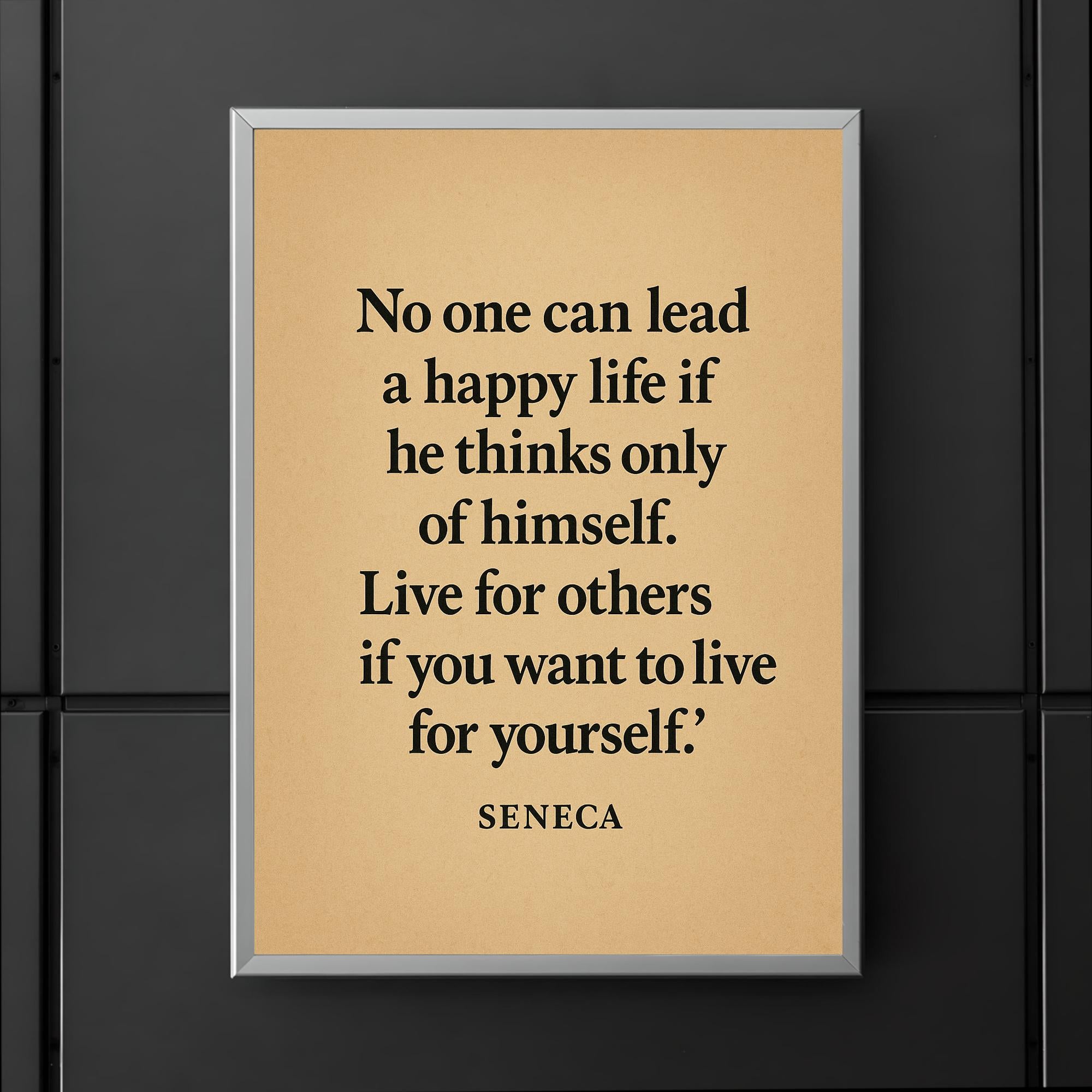 Bring timeless wisdom into your space with Seneca’s powerful reminder: “No one can lead a happy life if he thinks only of himself. Live for others if you want to live for yourself.” This inspiring quote invites reflection, encourages compassion, and serves as a daily motivation to embrace a more meaningful, connected life. Perfect for your home, office, or as a thoughtful gift, let this message become a guiding principle on your journey to true happiness.