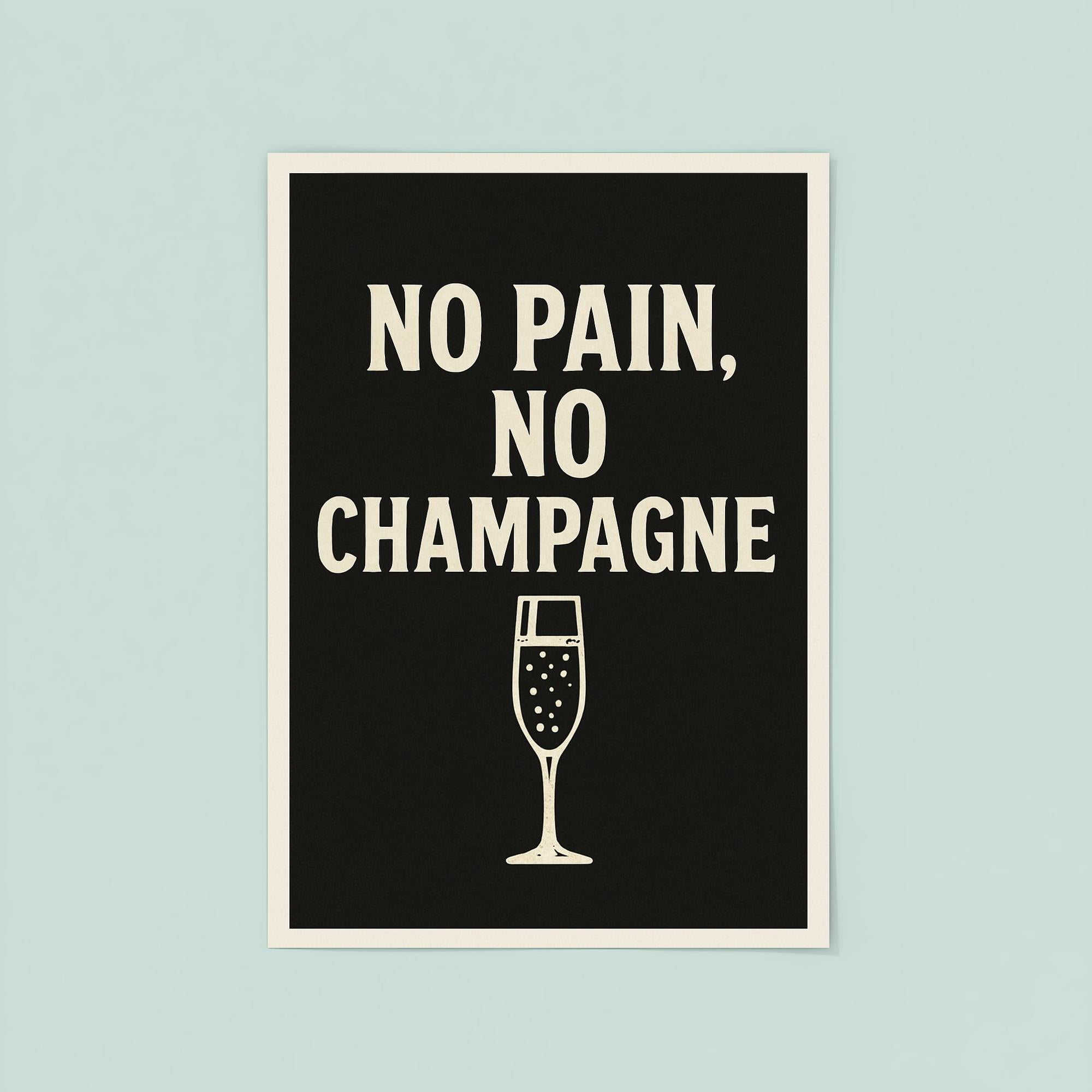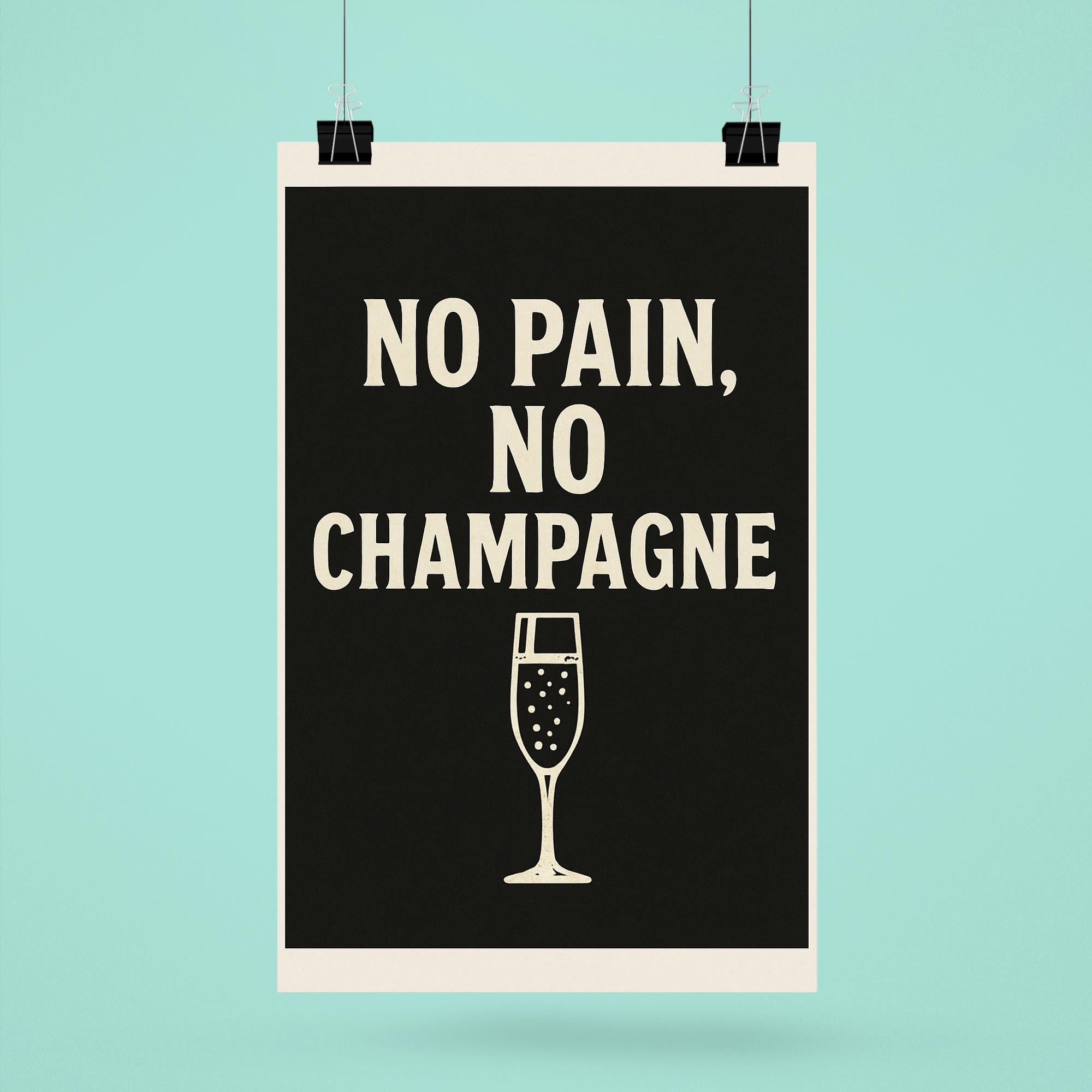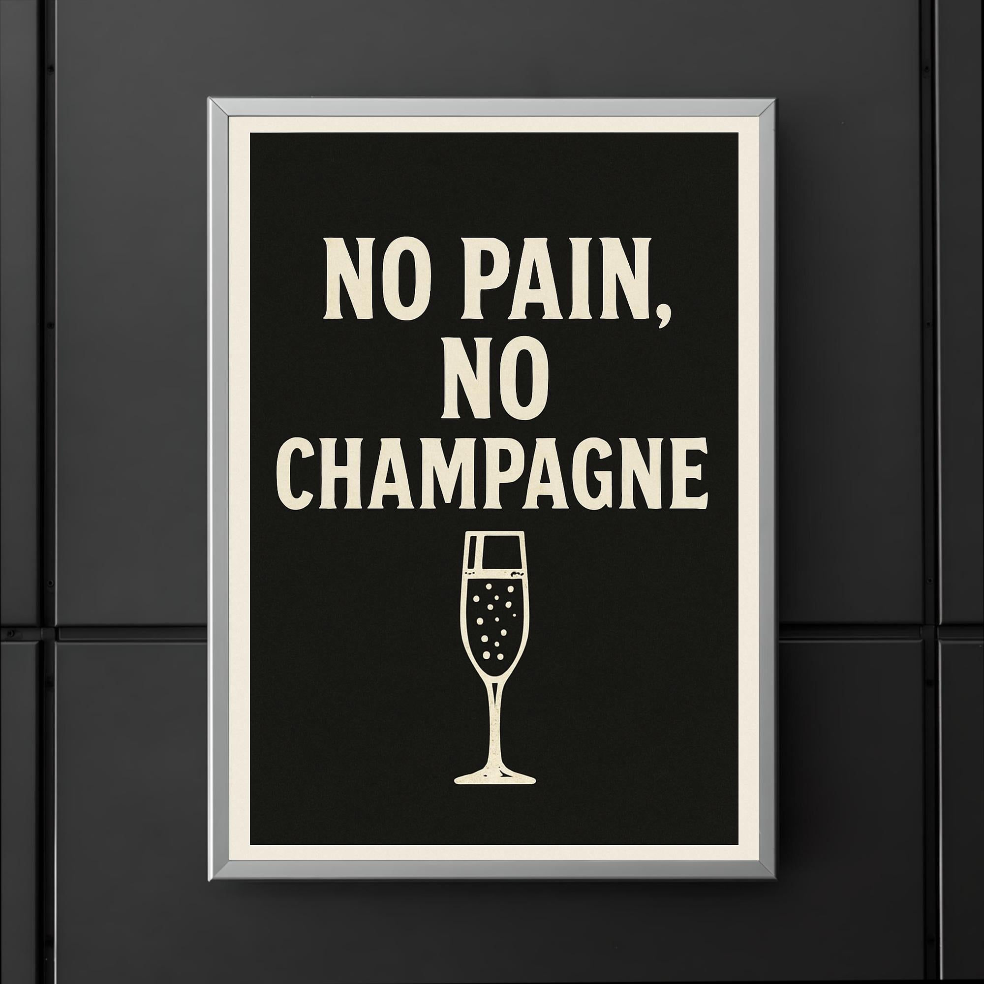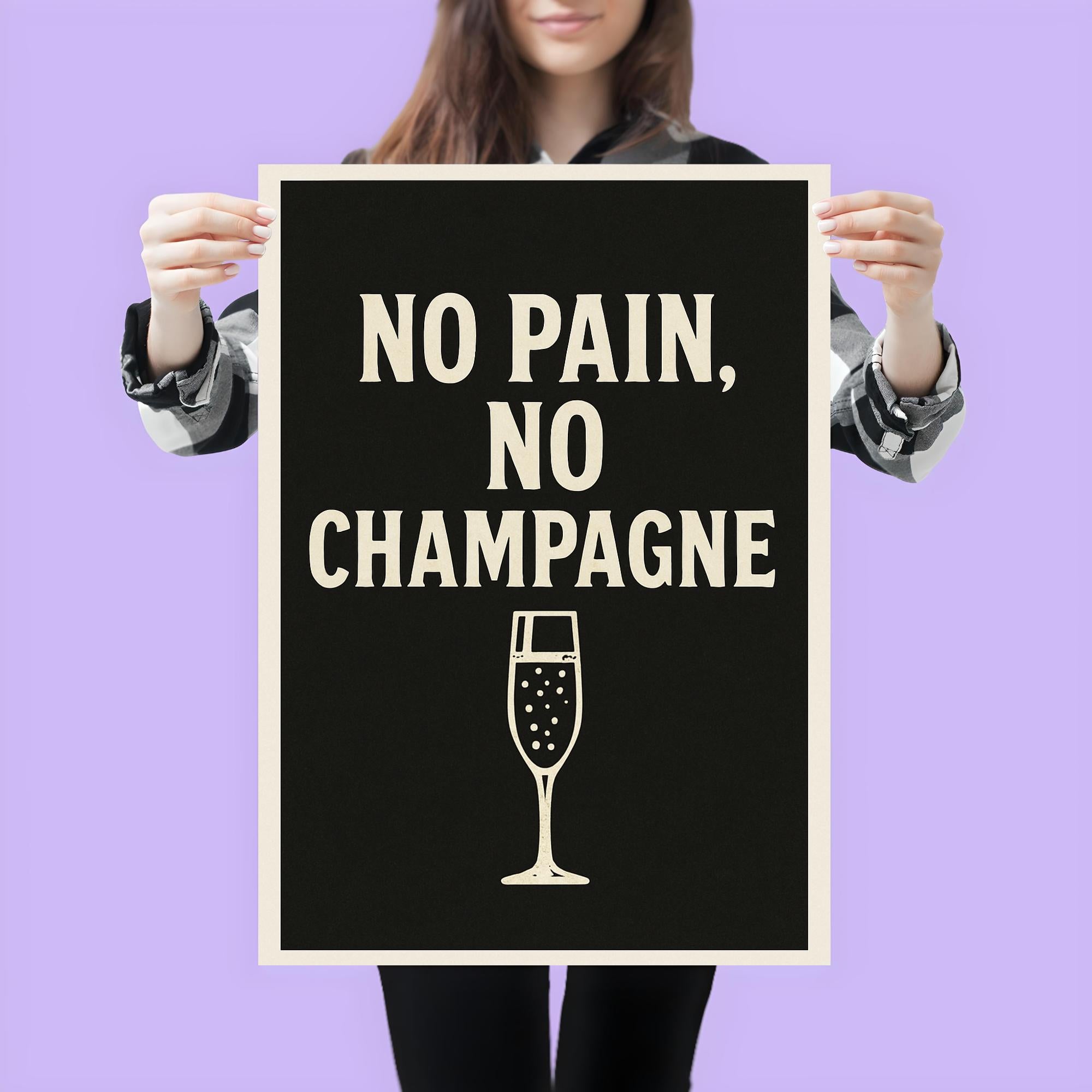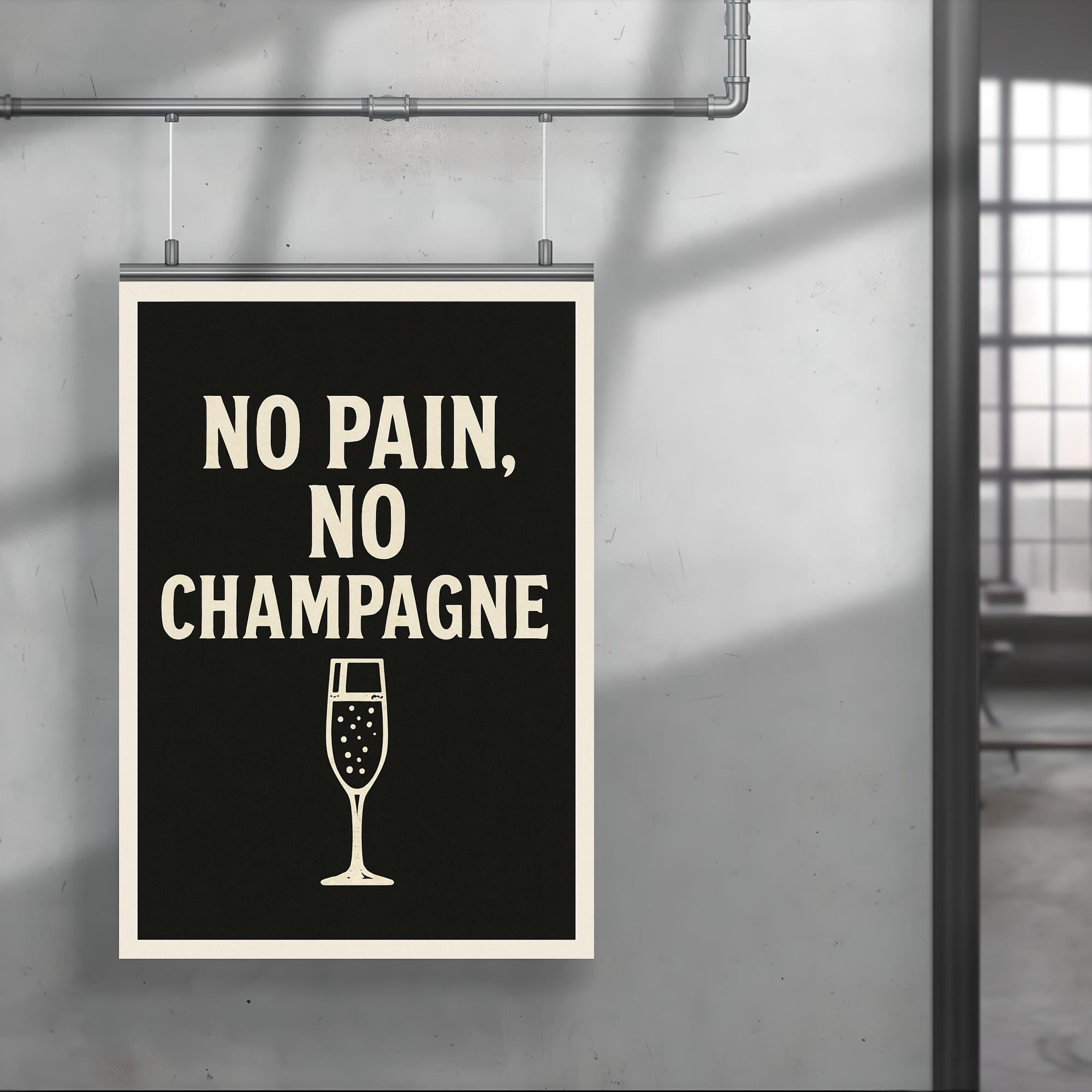 Make every celebration a toast to your hard work. This "No Pain, No Champagne" poster delivers daily motivation with a playful twist—reminding you that rewards are best enjoyed after the hustle. Raise your spirits every time you see it!