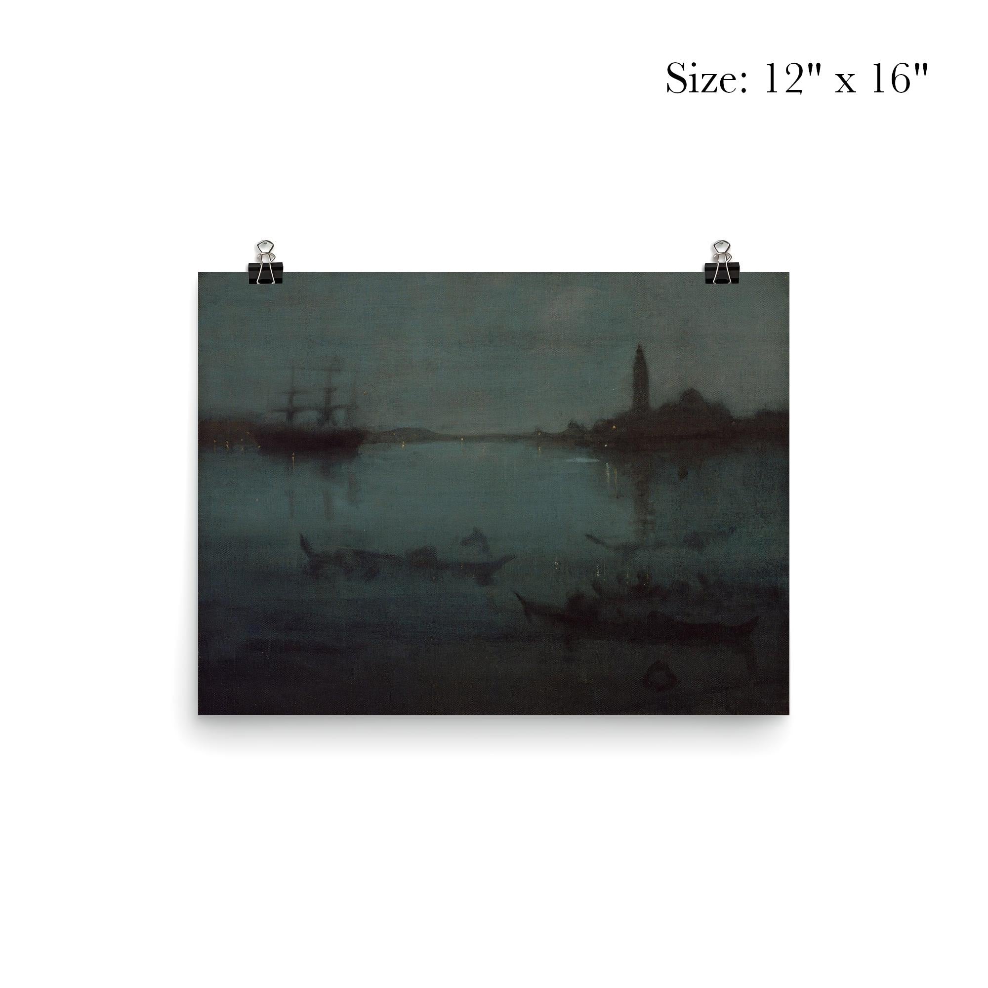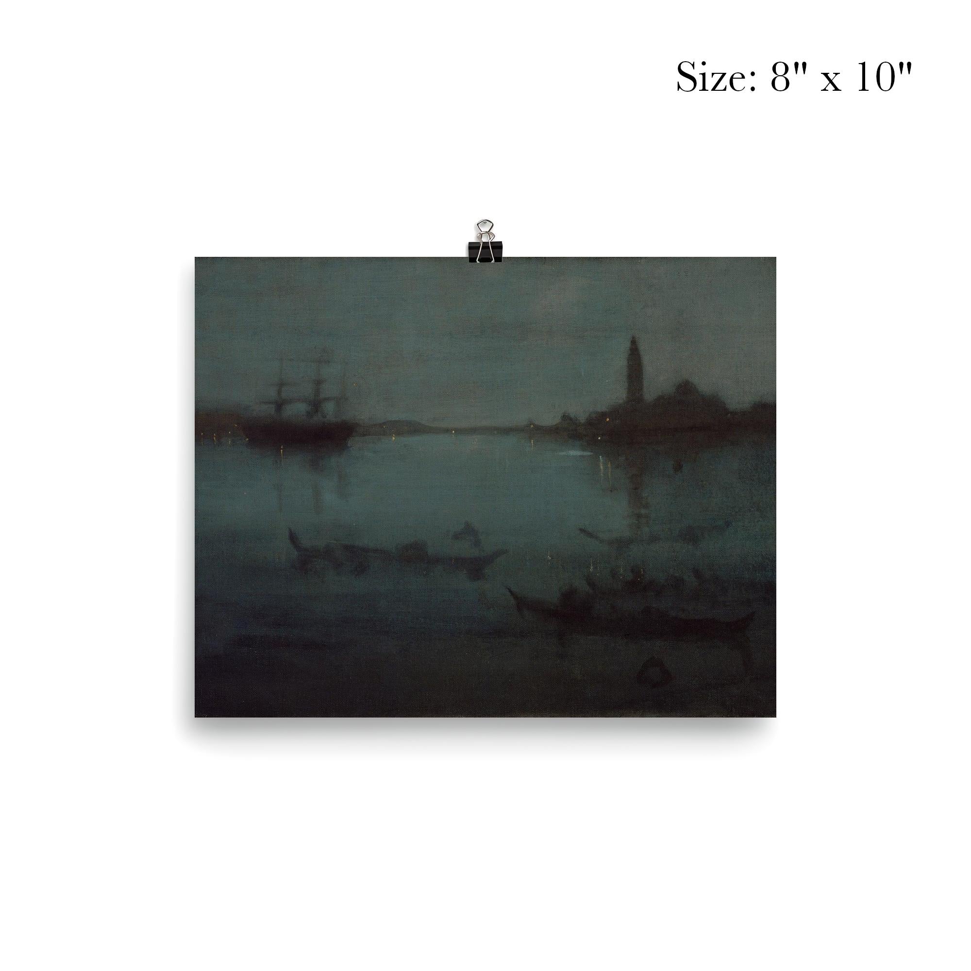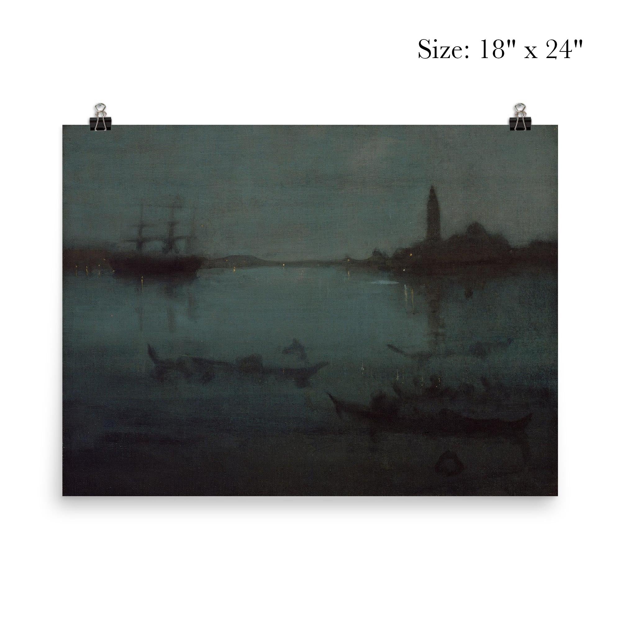 Transform your space with the serene elegance of *Nocturne in Blue and Silver - The Lagoon* by James Abbott McNeill Whistler. This exquisite poster captures the quiet beauty of twilight over the water, inviting calm and contemplation into any room. Perfect for art lovers who appreciate subtlety and timeless sophistication.
