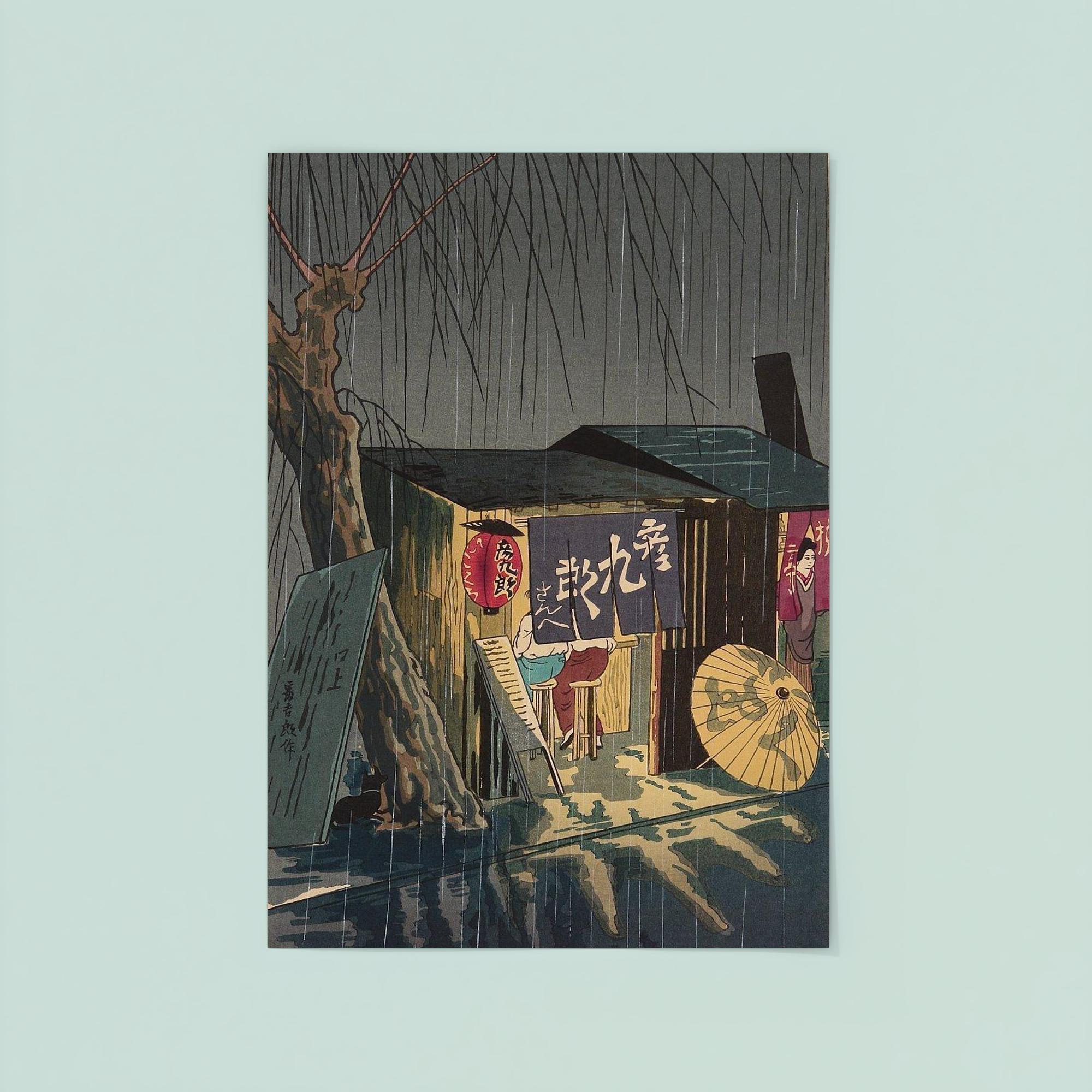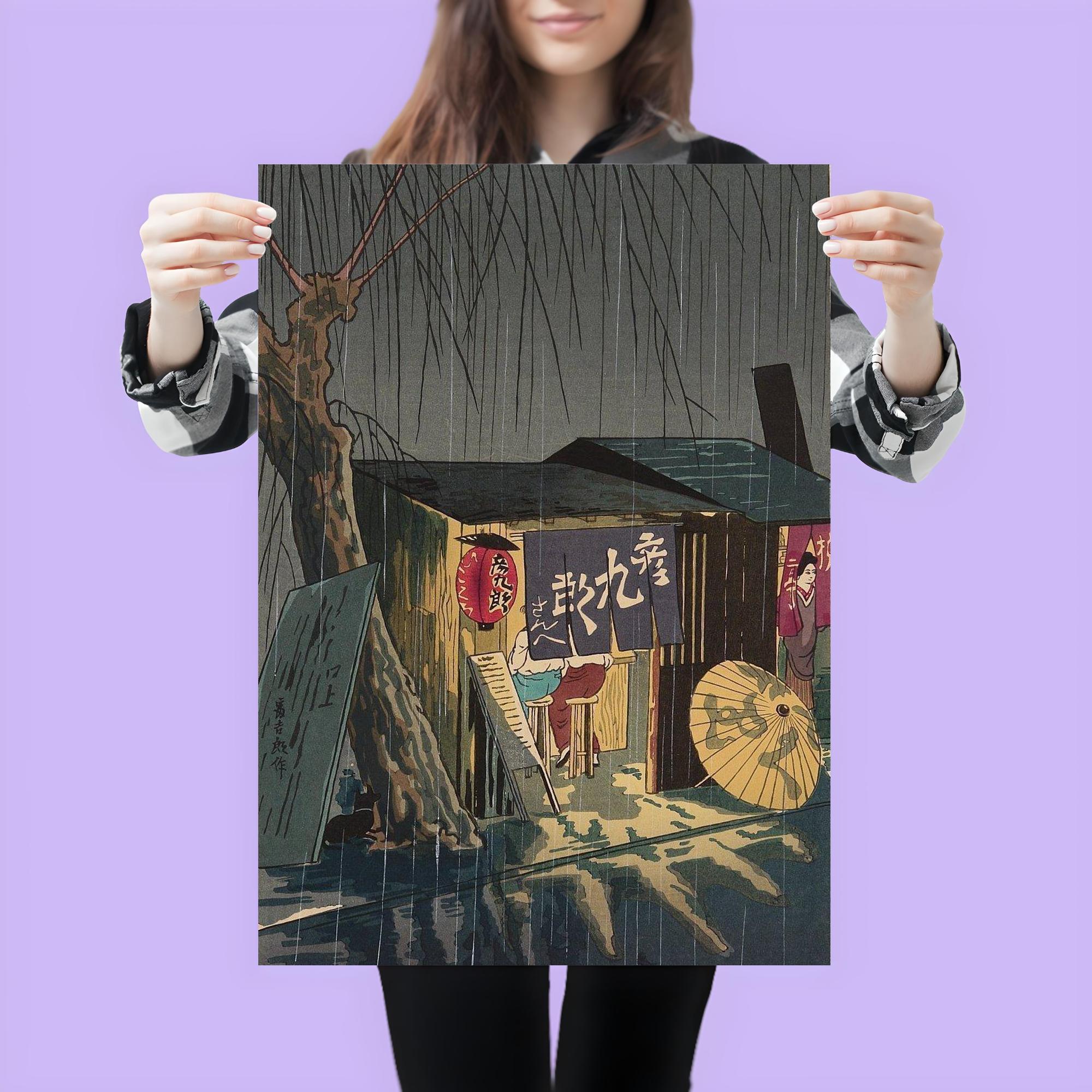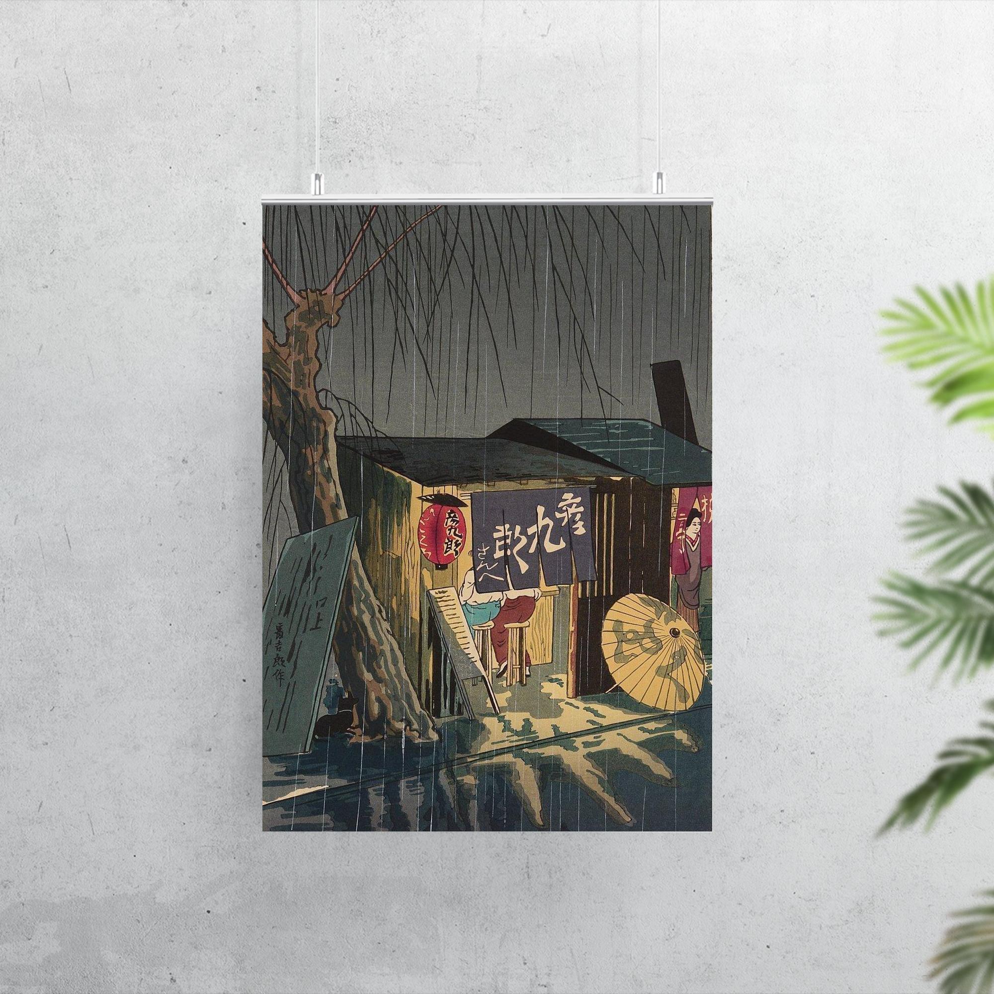 Noodle Restaurant on a Rainy Night Poster Print by Tokuriki Tomikichiro – Japanese Vintage Wall Art Decor