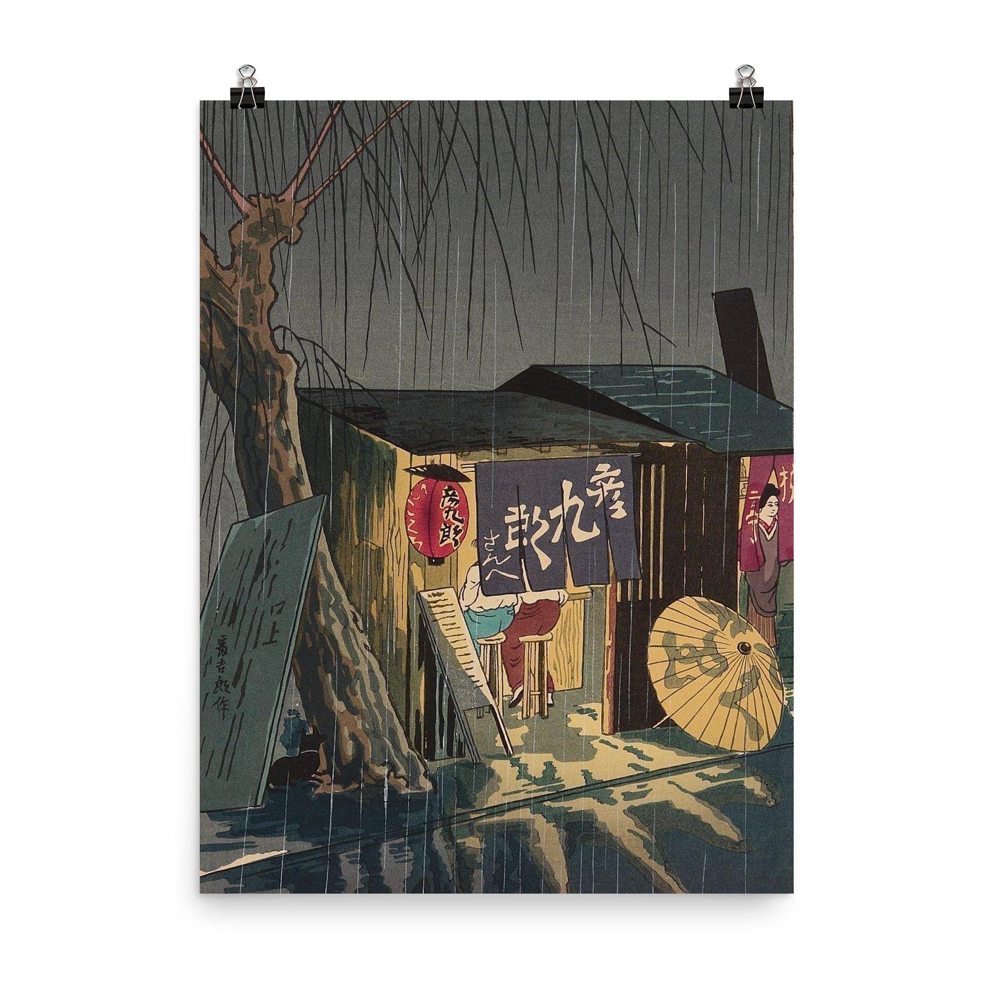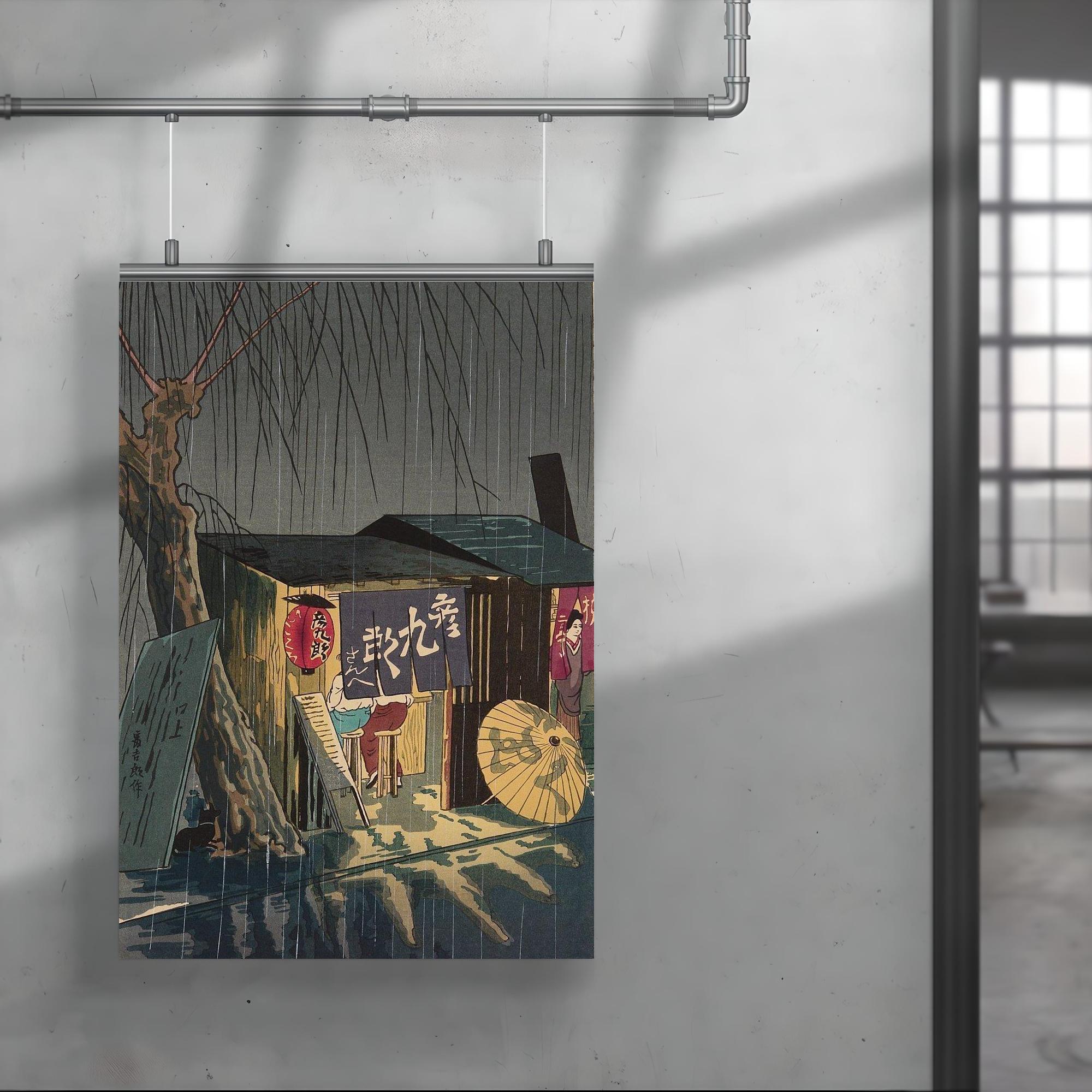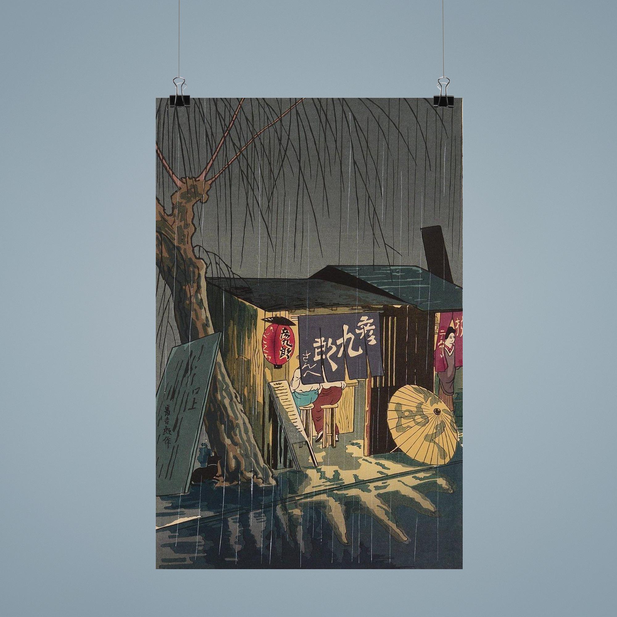 Noodle Restaurant on a Rainy Night Poster Print by Tokuriki Tomikichiro – Japanese Vintage Wall Art Decor