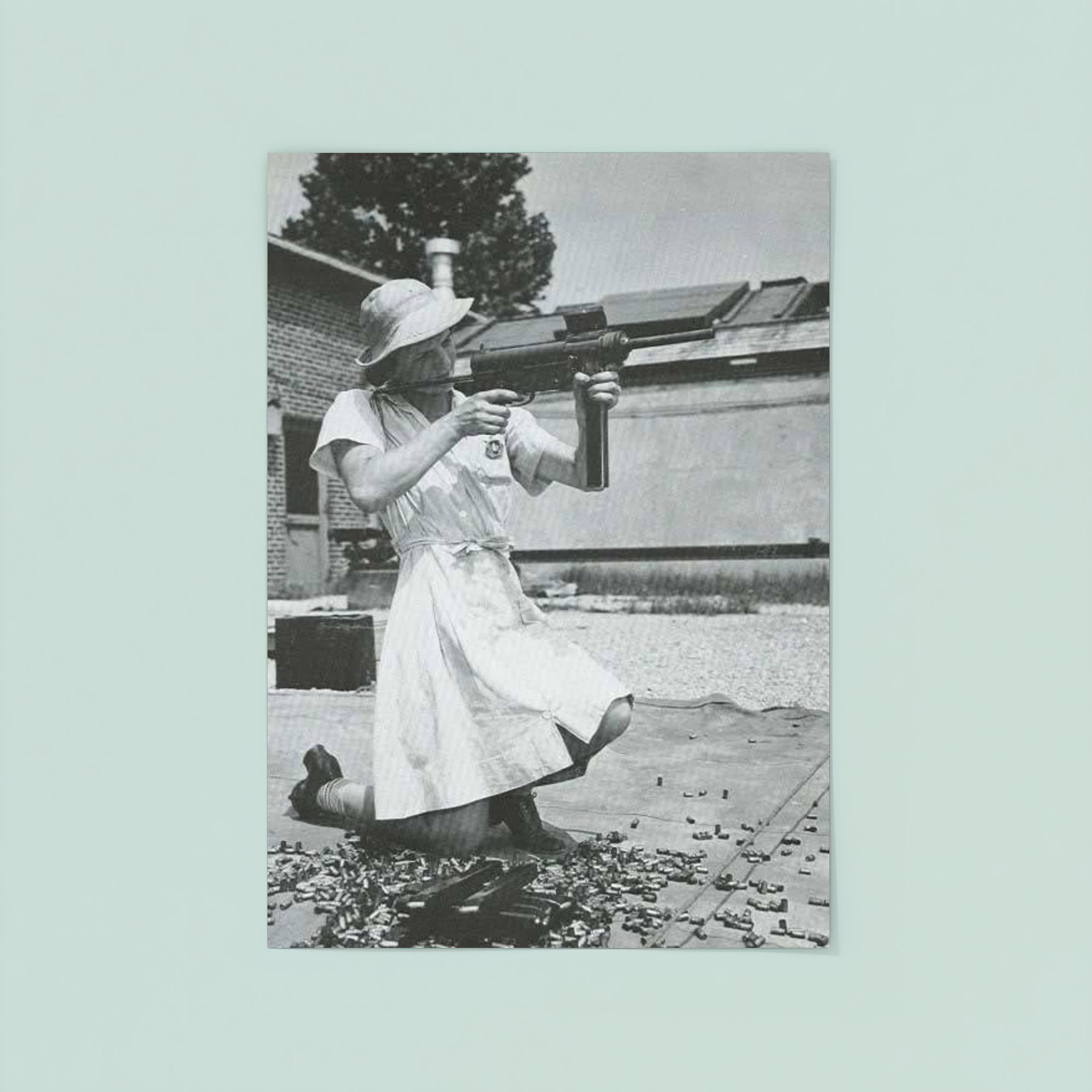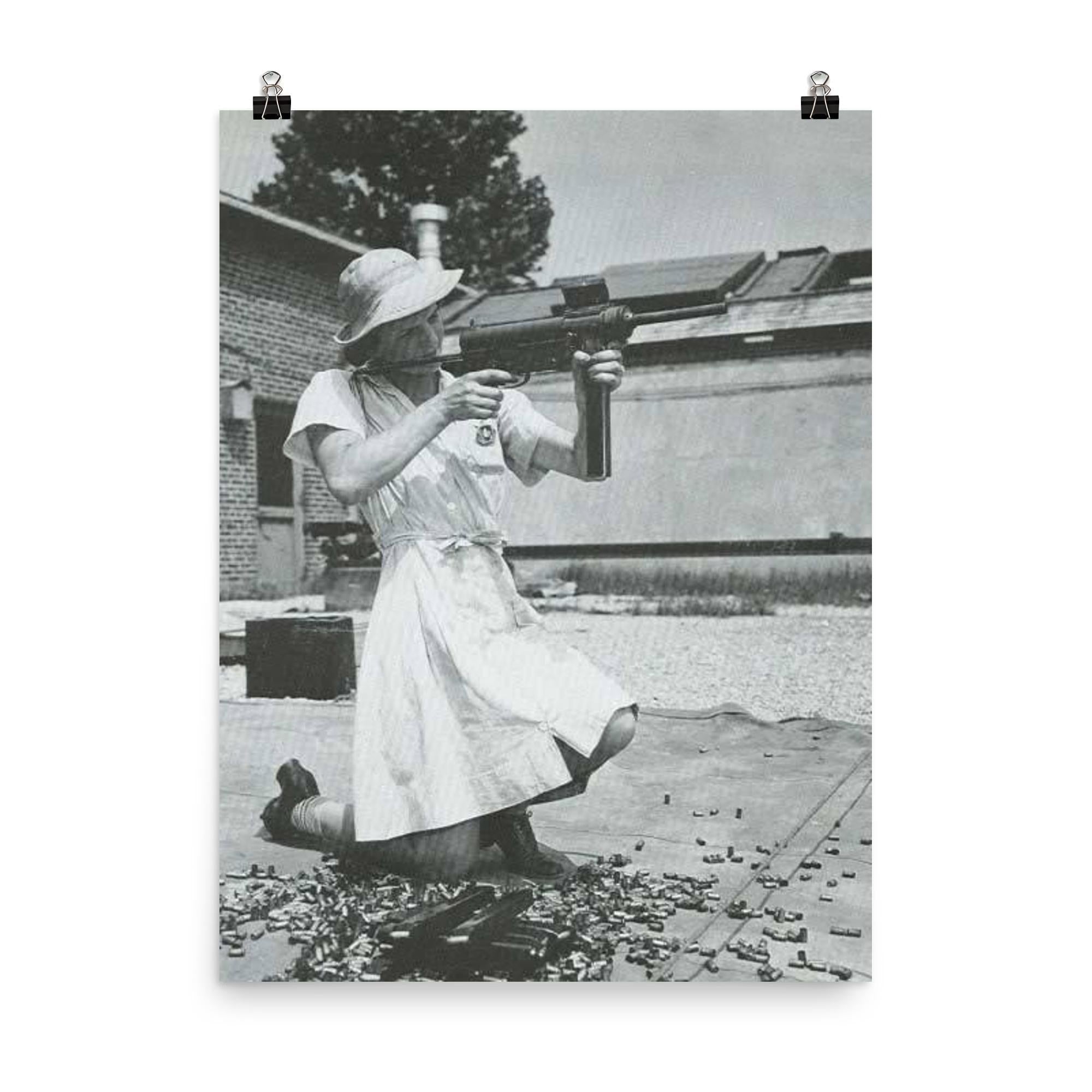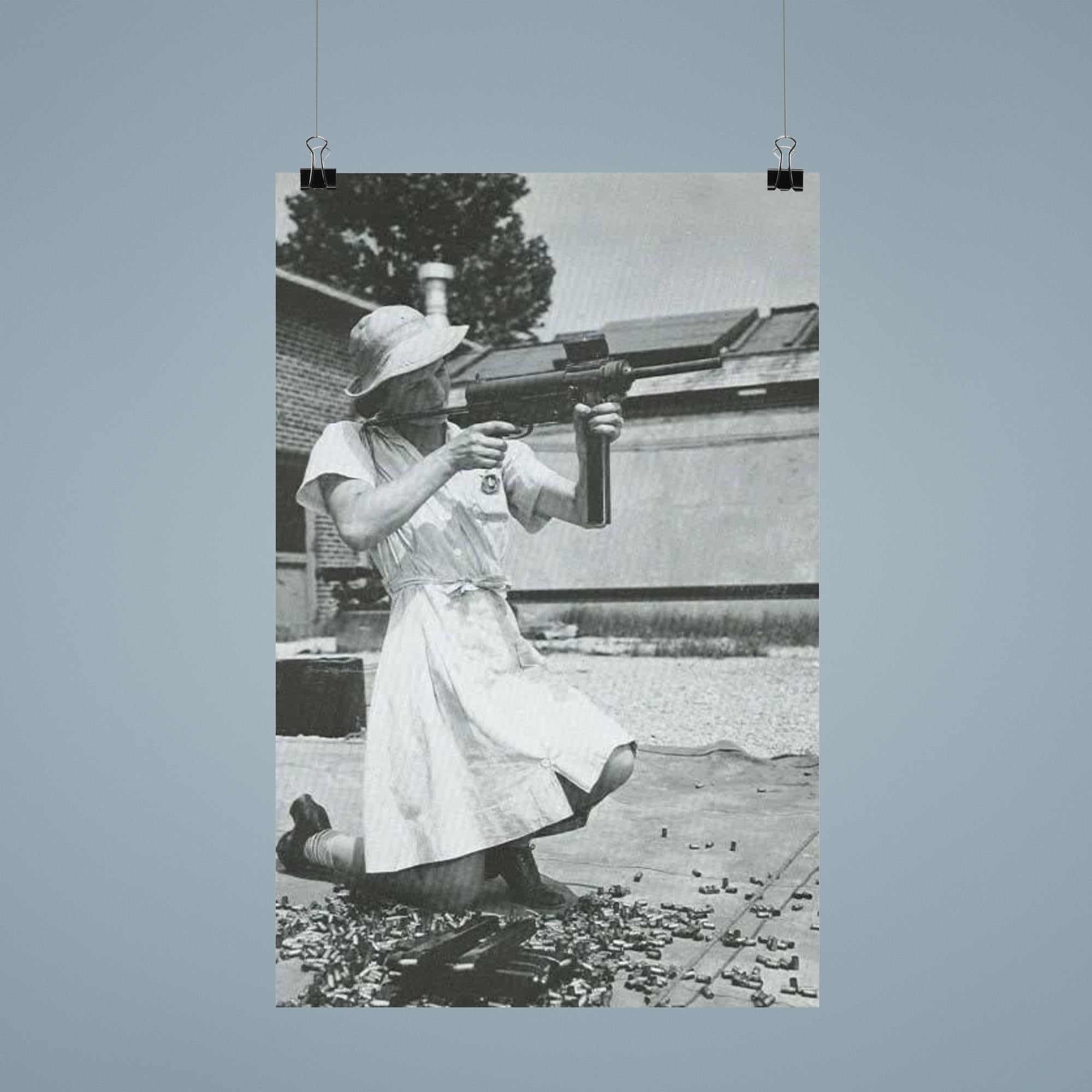 Step back into the resilience and courage of the 1940s with this striking WWII poster featuring a Nurse holding an M-3 Grease Gun. This powerful image captures the unwavering spirit and strength of those who served on the home front and battlefield alike. Perfect for history enthusiasts and collectors, this poster is a vivid tribute to the overlooked heroes of wartime.