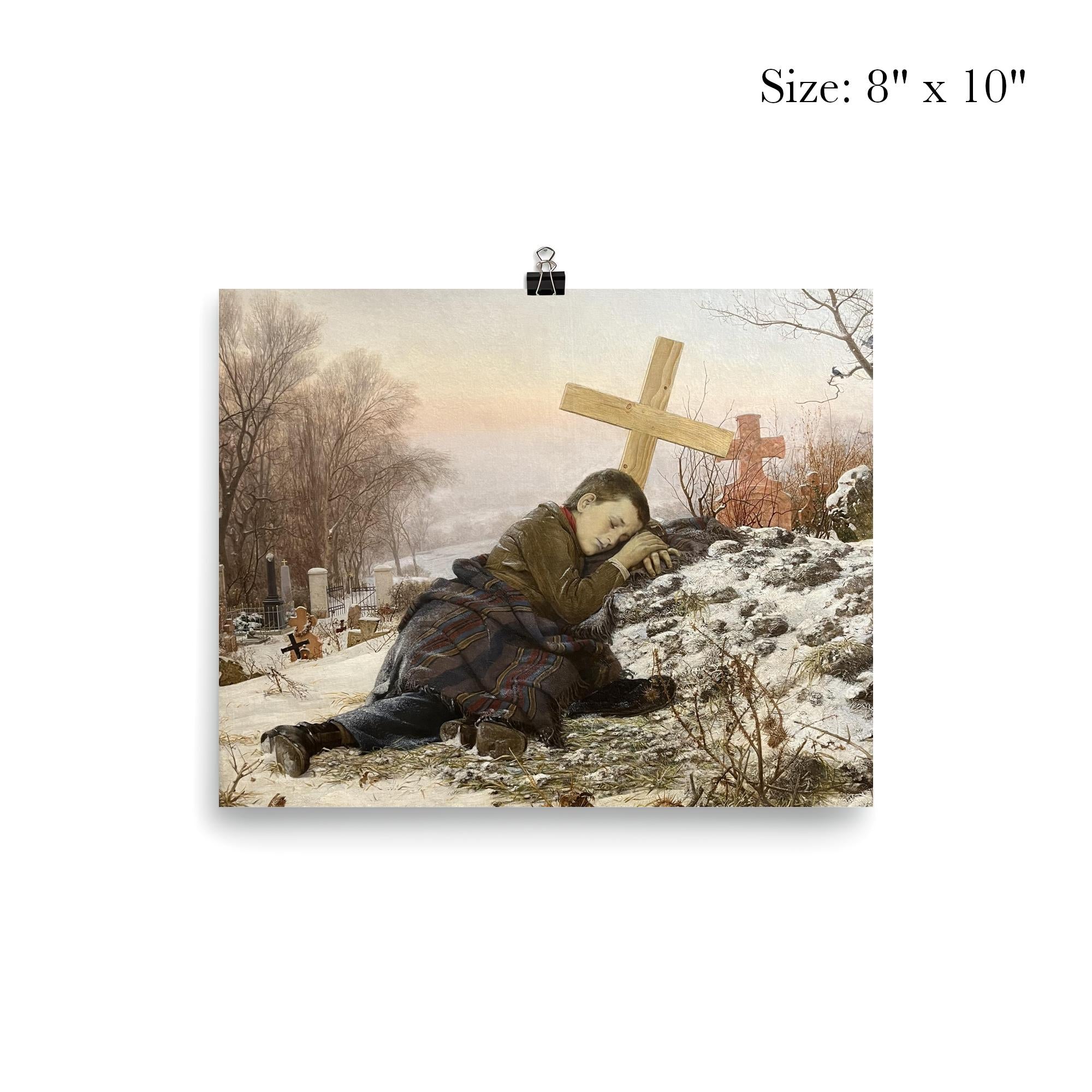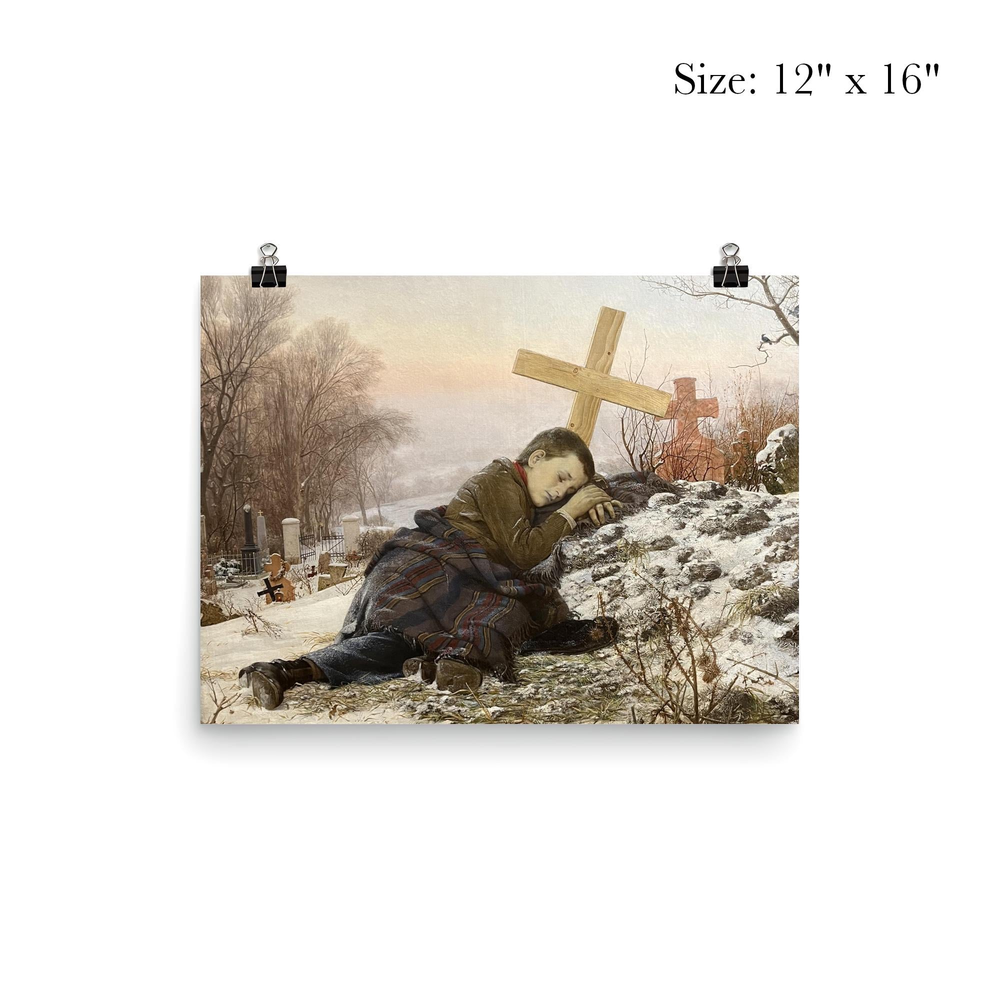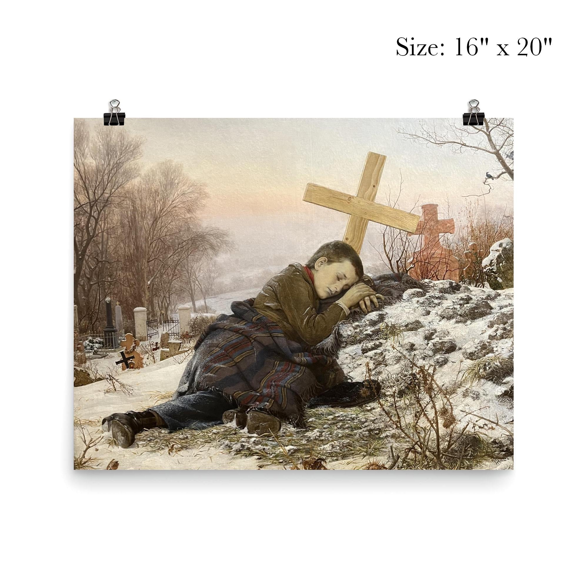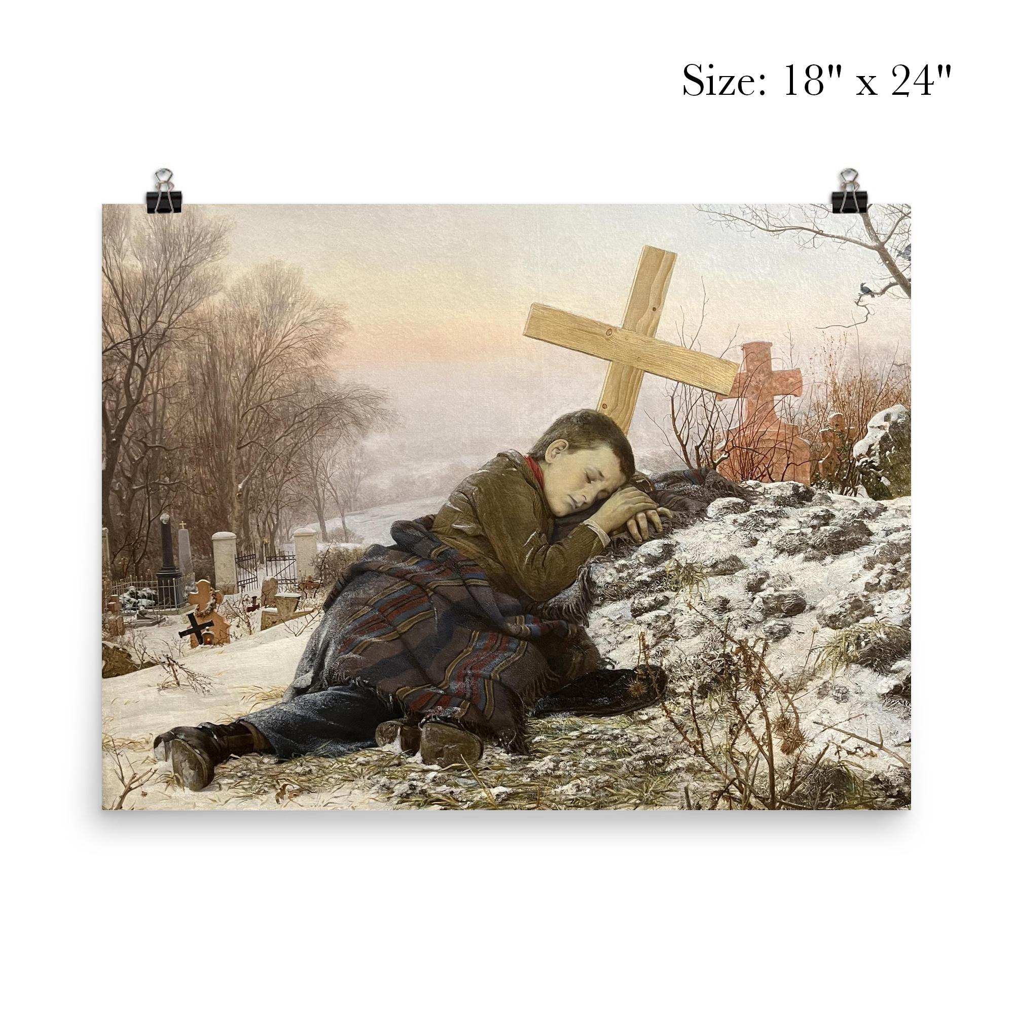 Orphan at Mother's Grave 1888 Uroš Predić Poster Print | Vintage Emotional Wall Art for Living Room Decor