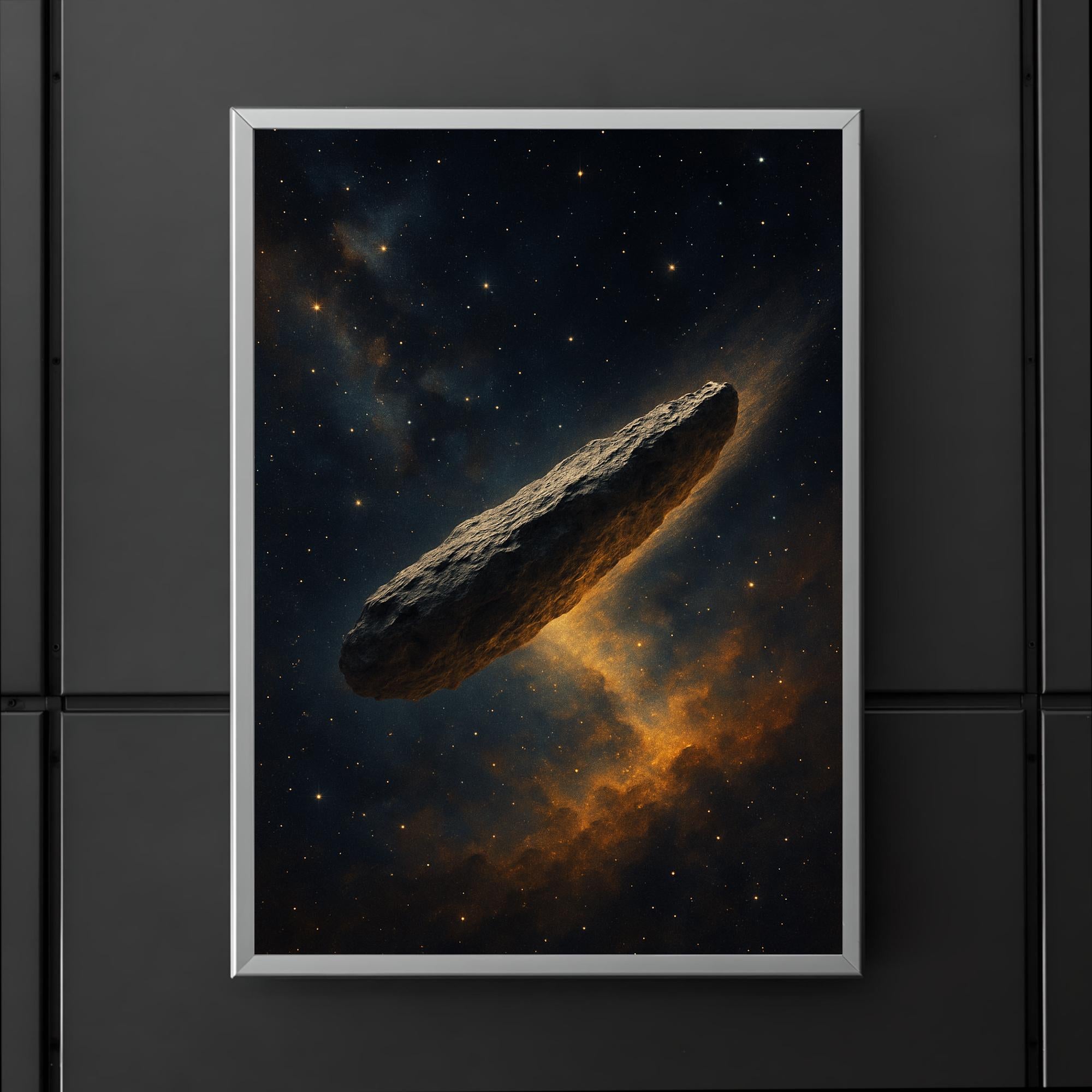 Capture the mystery of the universe with this striking Oumuamua poster, commemorating the first known interstellar object detected passing through our solar system. Perfect for stargazers and science enthusiasts alike, this poster invites you to celebrate a cosmic visitor that sparked curiosity and wonder around the world. Elevate your space decor with a piece that embodies the thrill of discovery beyond our own celestial neighborhood.