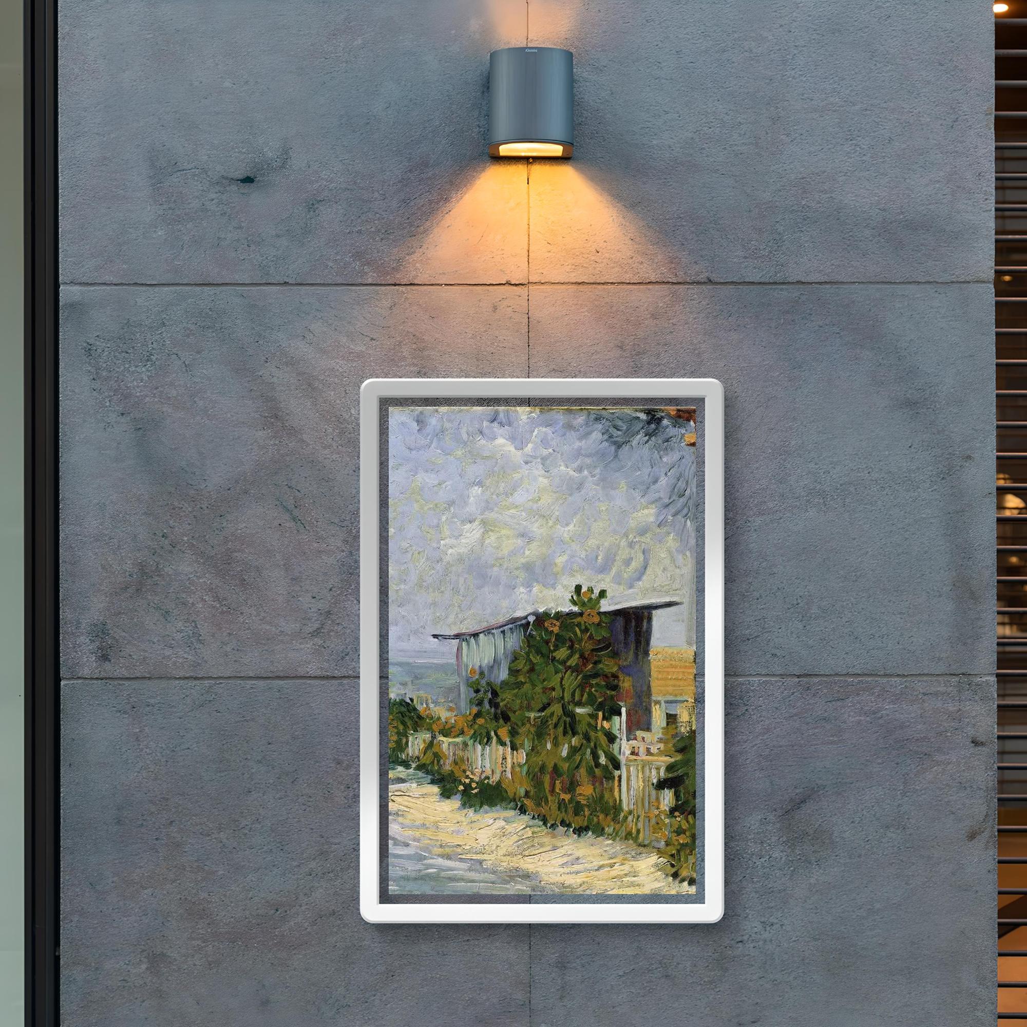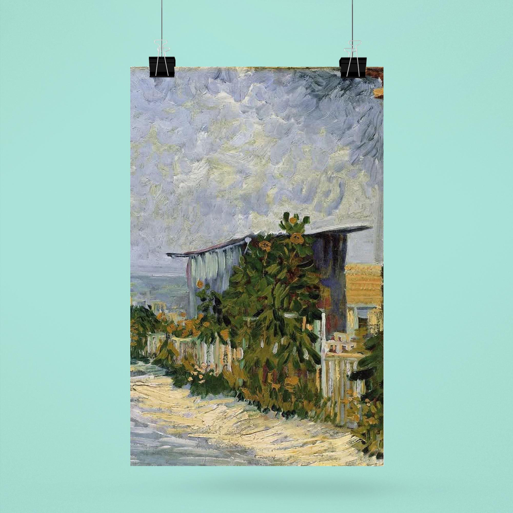Bring the vibrant spirit of Impressionism into your space with this stunning poster of Vincent van Gogh’s "Path in Montmartre with Sunflowers," painted in 1887. The dynamic brushstrokes and vivid colors capture a charming glimpse of Montmartre bathed in sunlight, where sunflowers bloom alongside the winding path. This artwork radiates warmth and movement, making it a timeless centerpiece that breathes life and energy into any room.